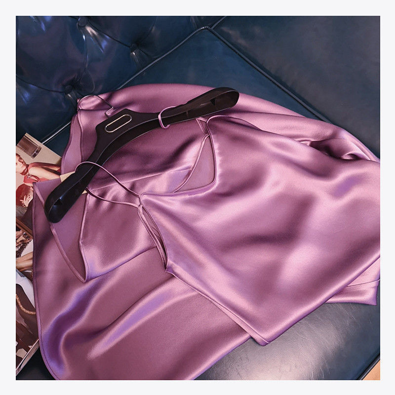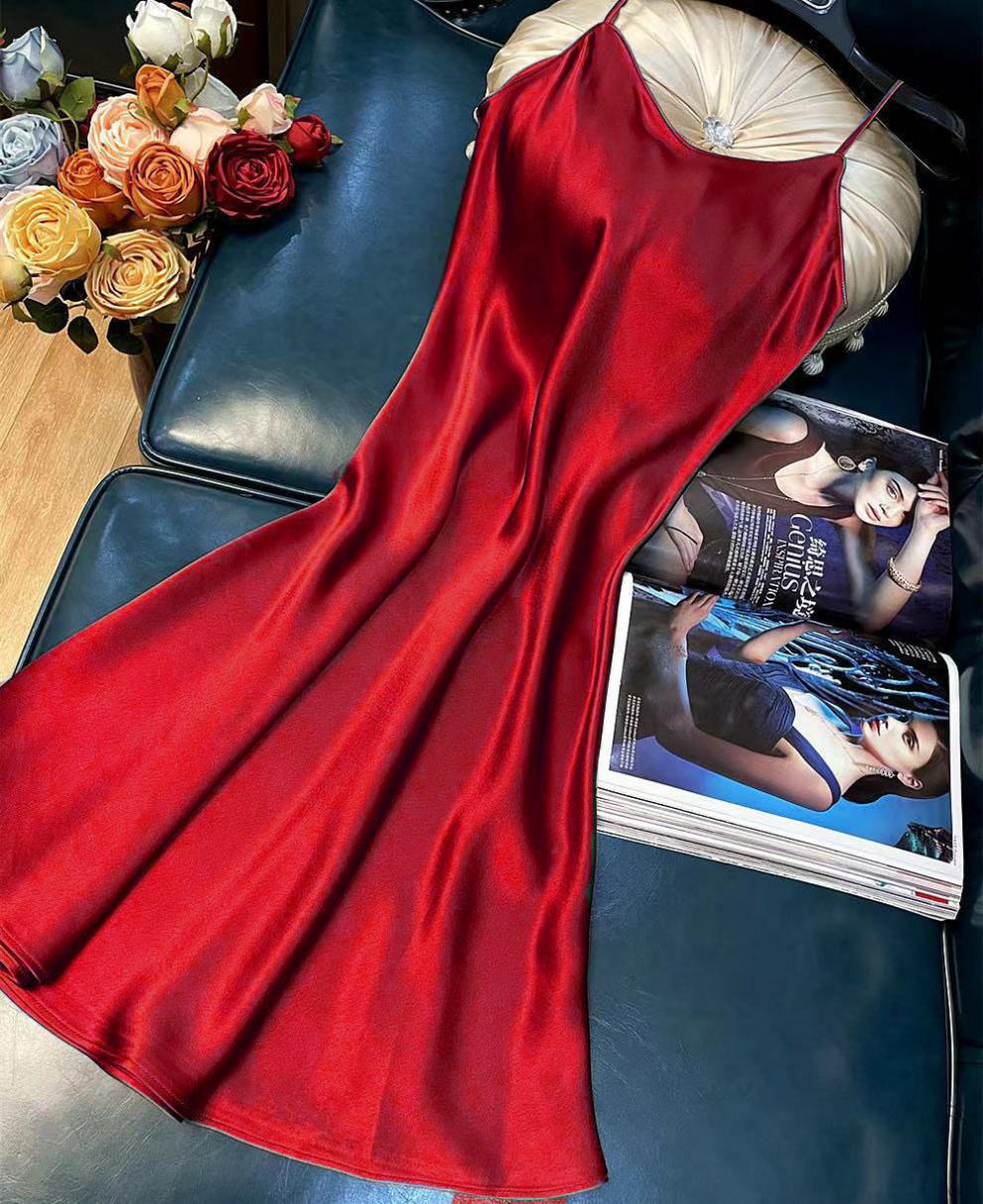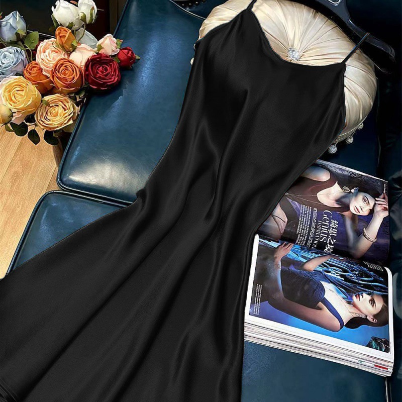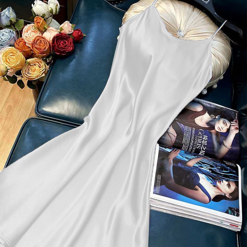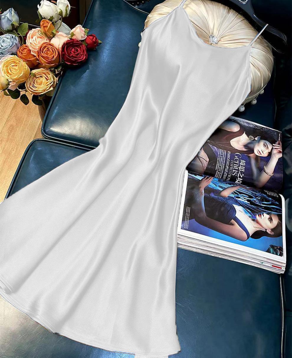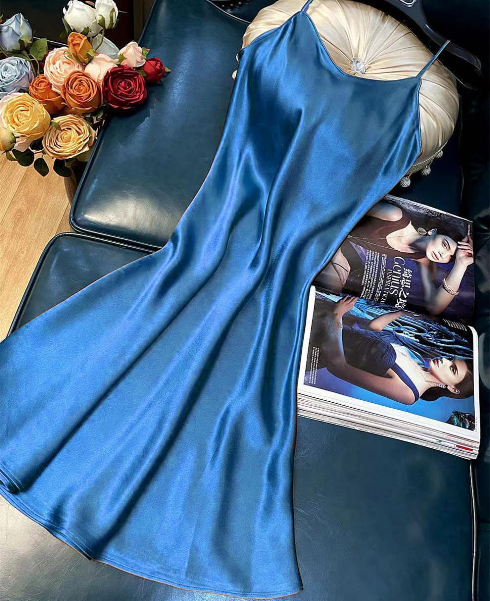 항저우 새틴 원피스 2021 인기 여름 새로운 모조 새틴 트라이아세트산 중장 서스펜더 A 라인 스커트 트렌드스토어 가기