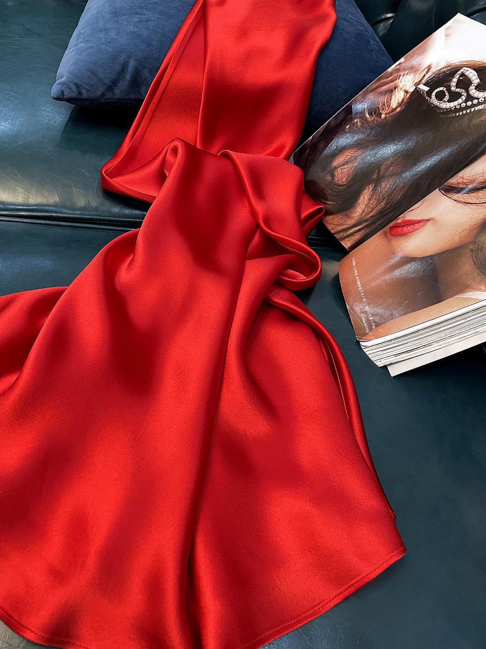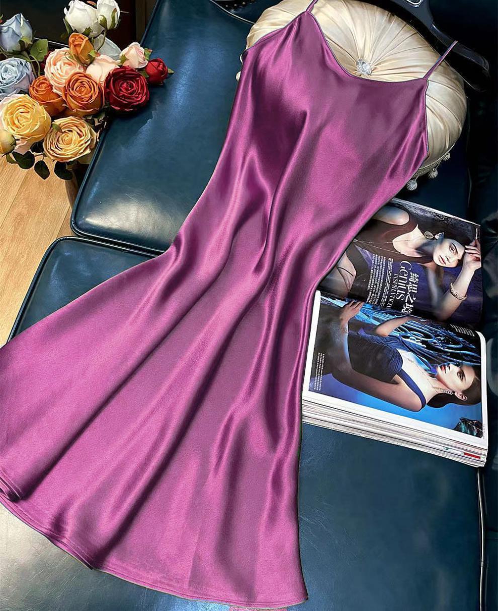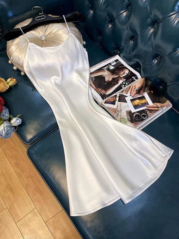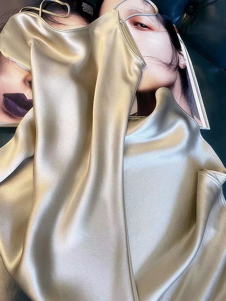항저우 새틴 원피스 2021 인기 여름 새로운 모조 새틴 트라이아세트산 중장 서스펜더 A 라인 스커트 트렌드