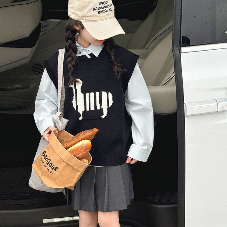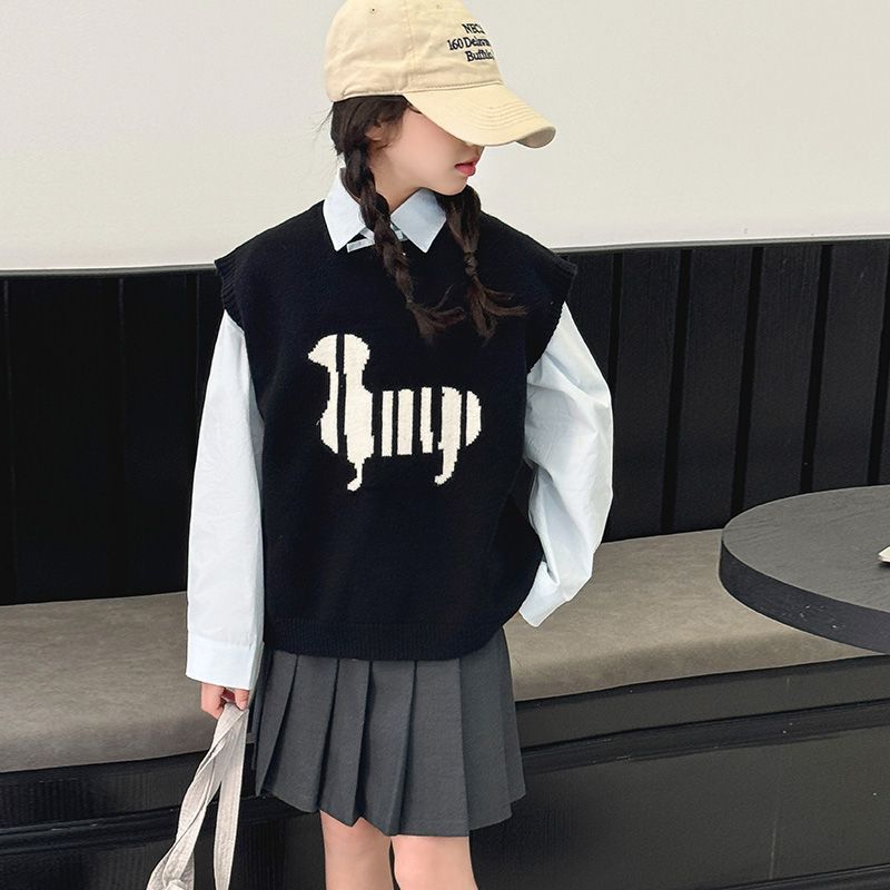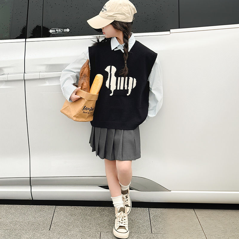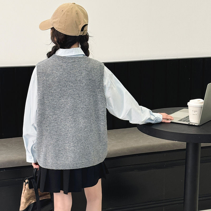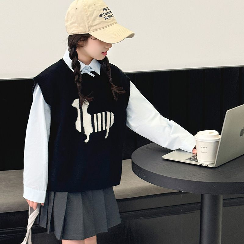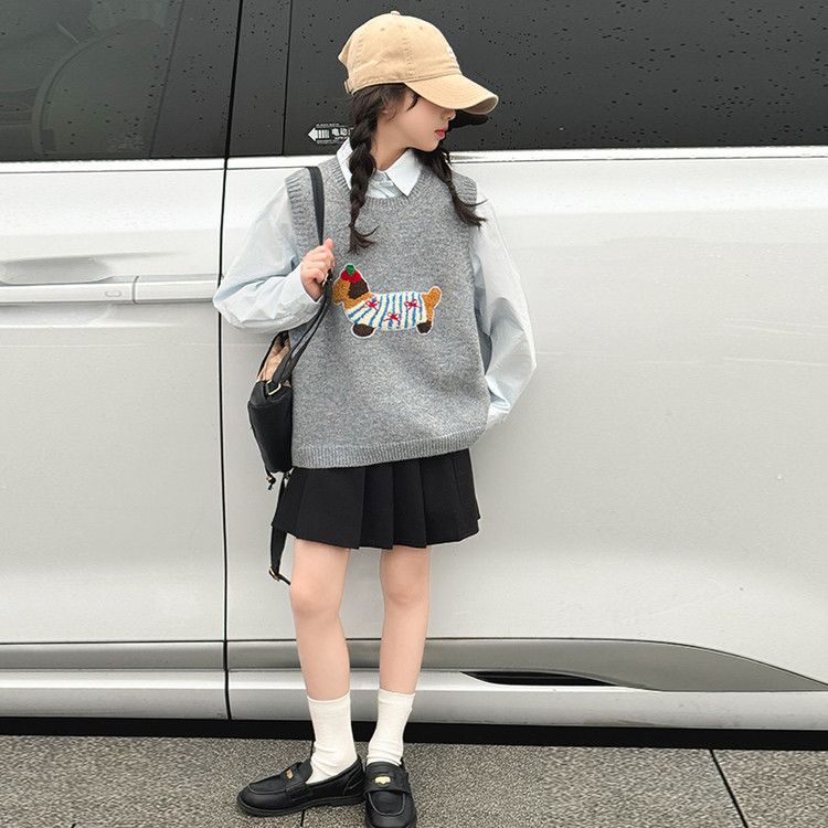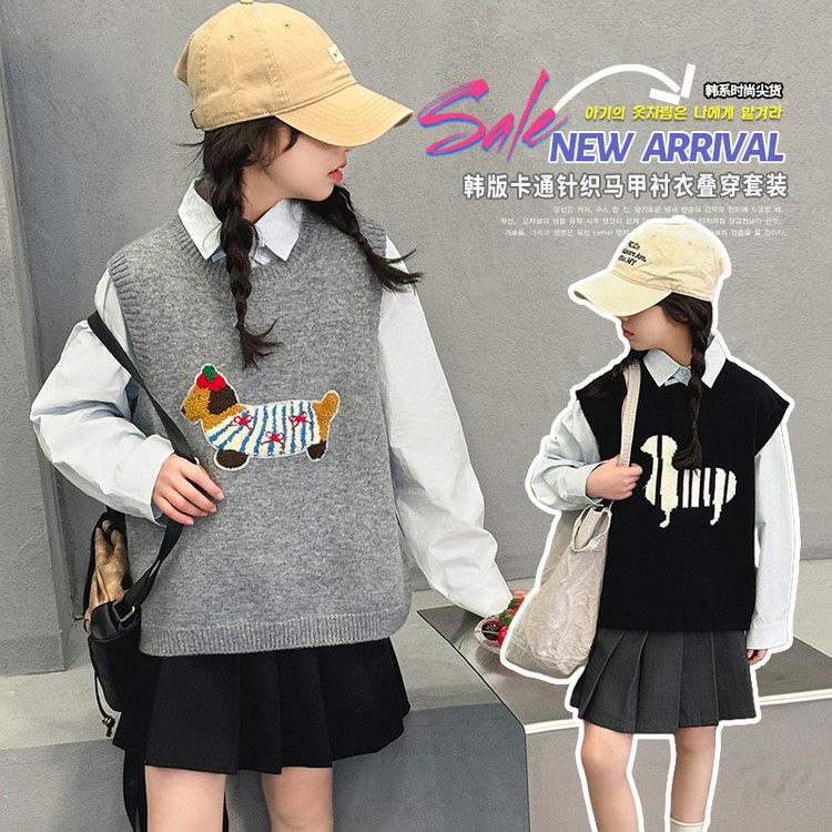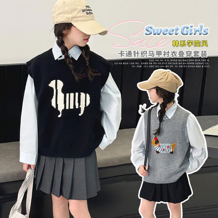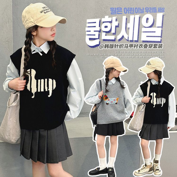 여자 인터넷 인기있는 조끼 2024 새로운 봄과 가을 한국 스타일 유행 조끼 귀여운 니트 탑 셔츠 세트 트렌디스토어 가기