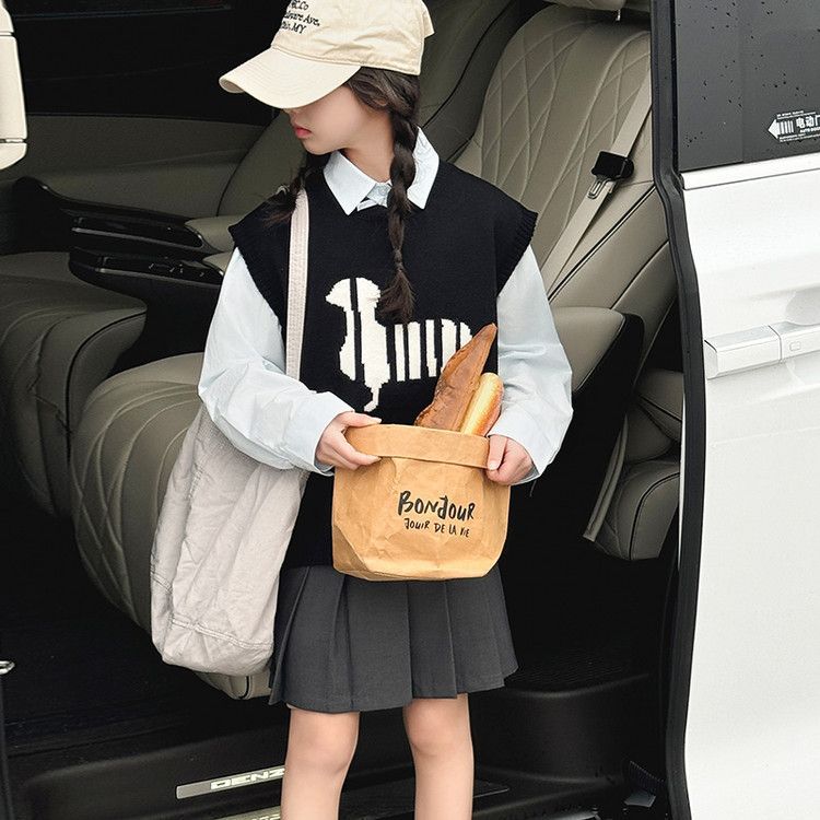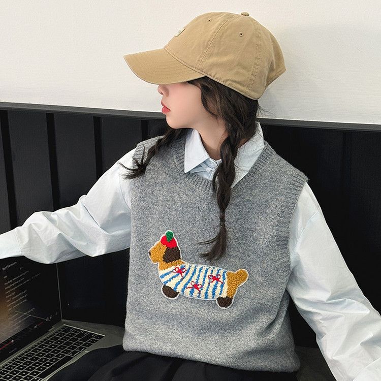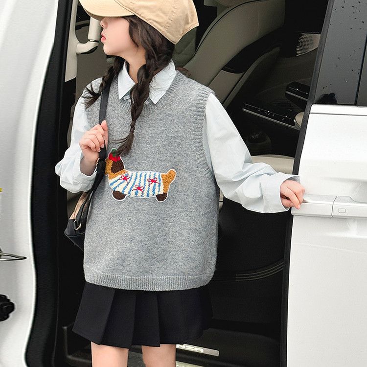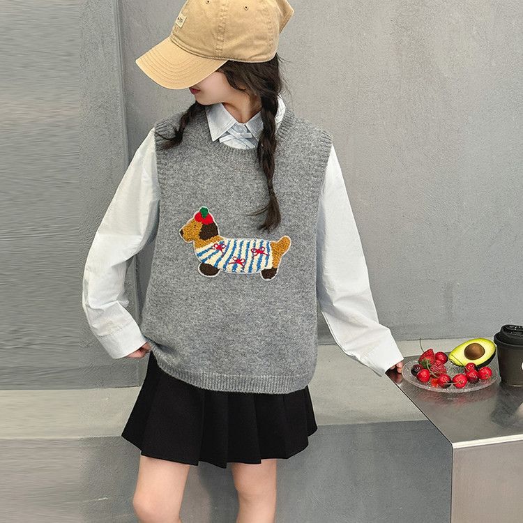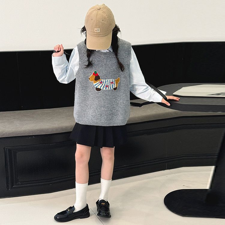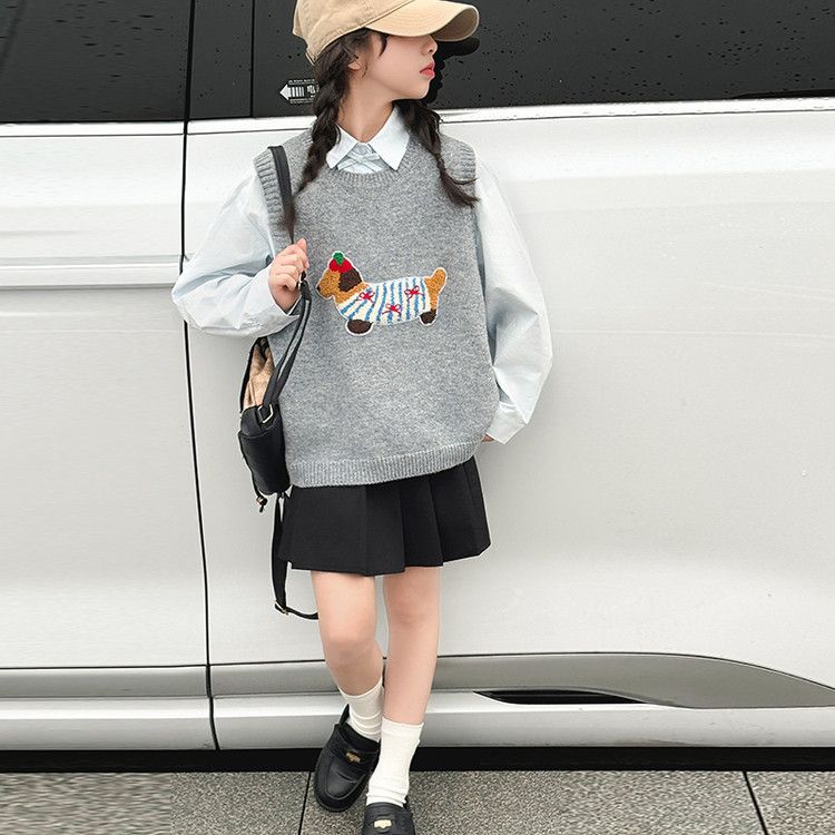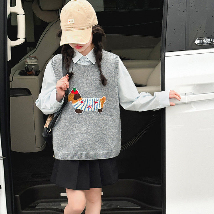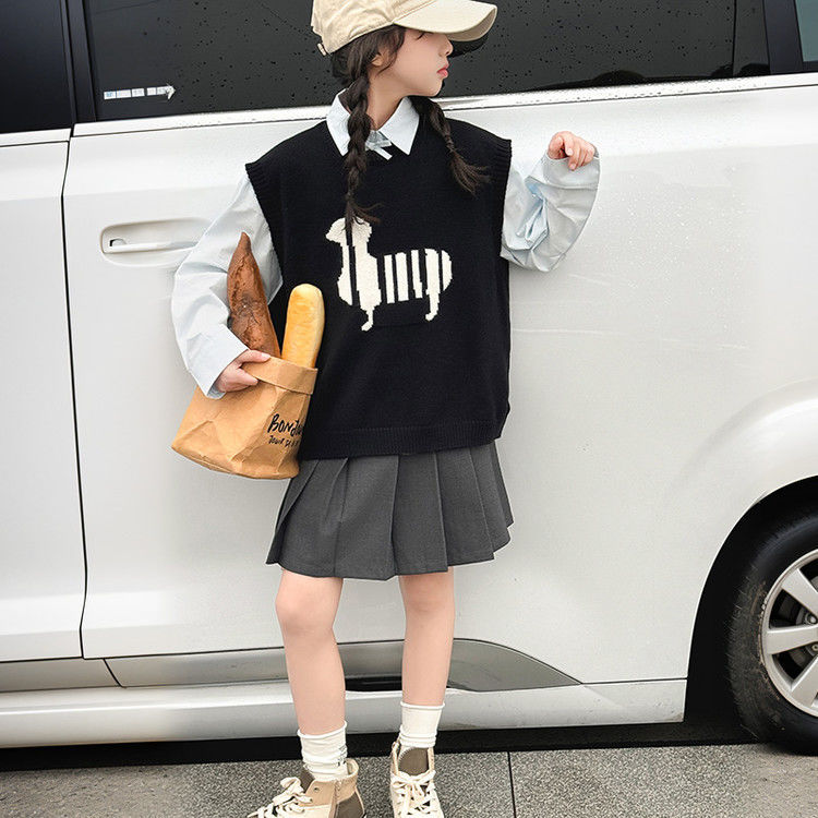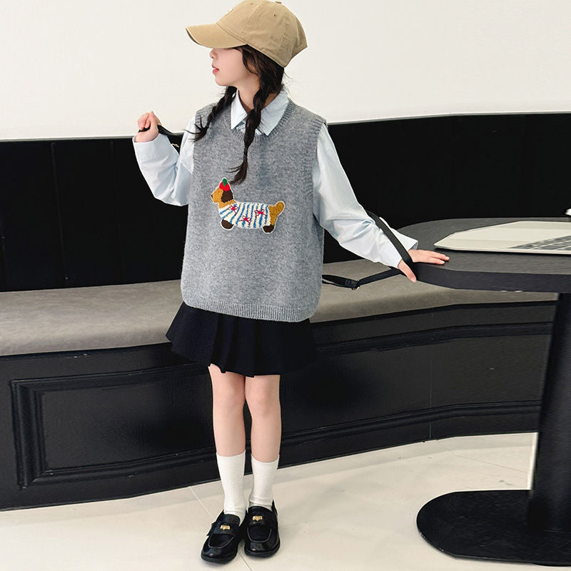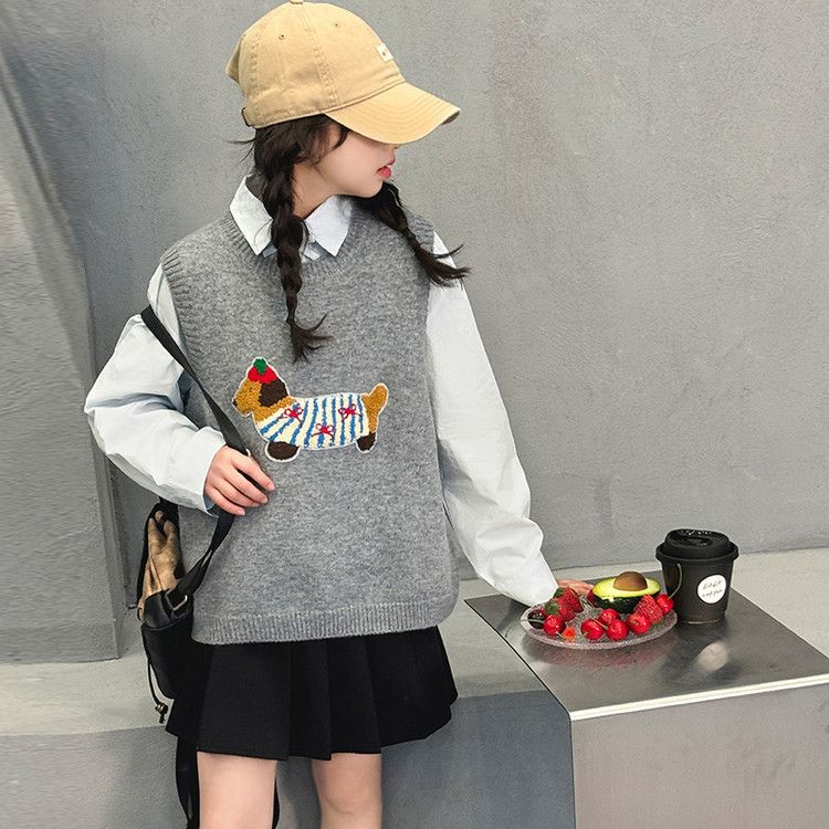 여자 인터넷 인기있는 조끼 2024 새로운 봄과 가을 한국 스타일 유행 조끼 귀여운 니트 탑 셔츠 세트 트렌디스토어 가기