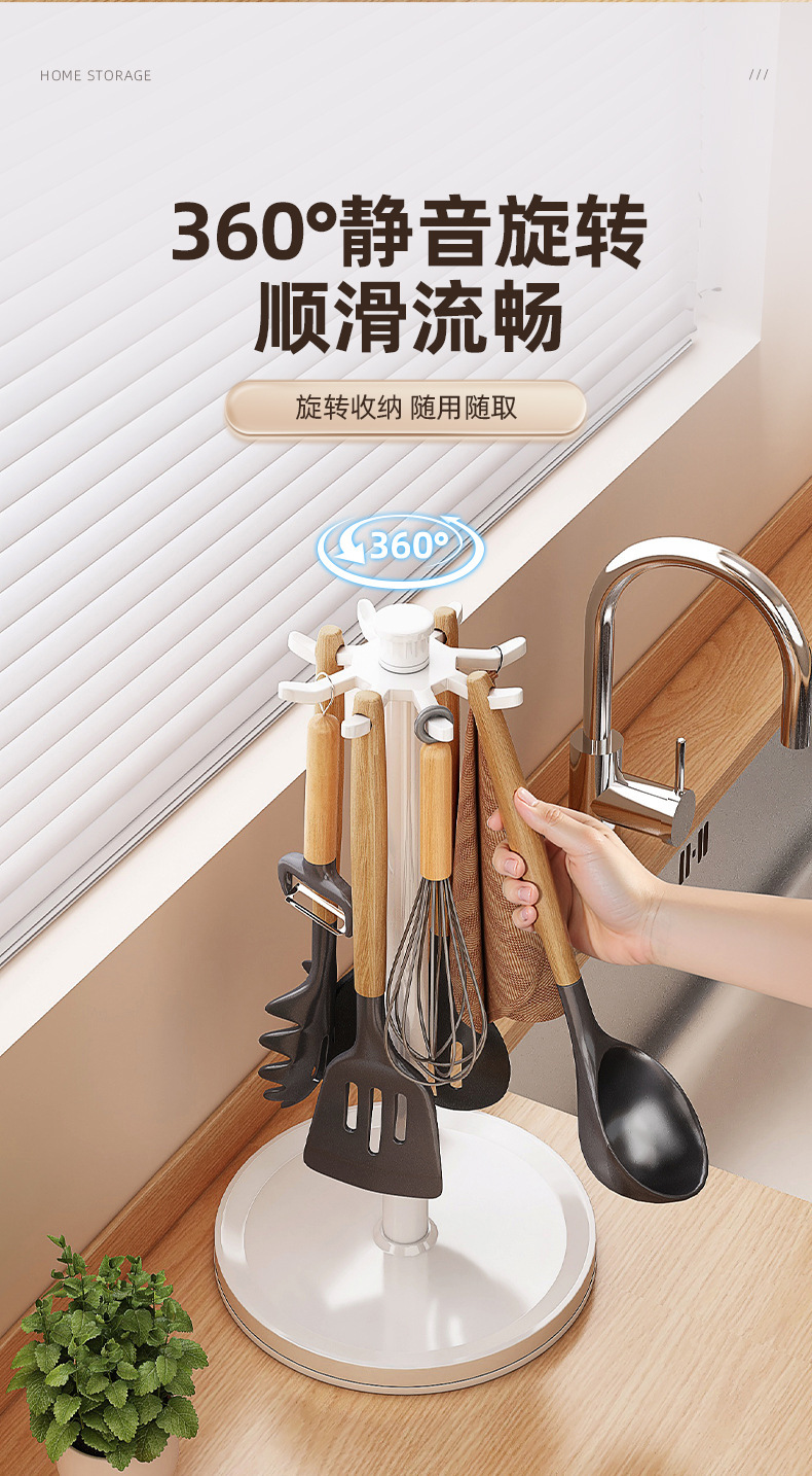 • 크림화이트_스페이스 알루미늄 회전 8후크 주걱 홀더 [물받이 포함 대용량]