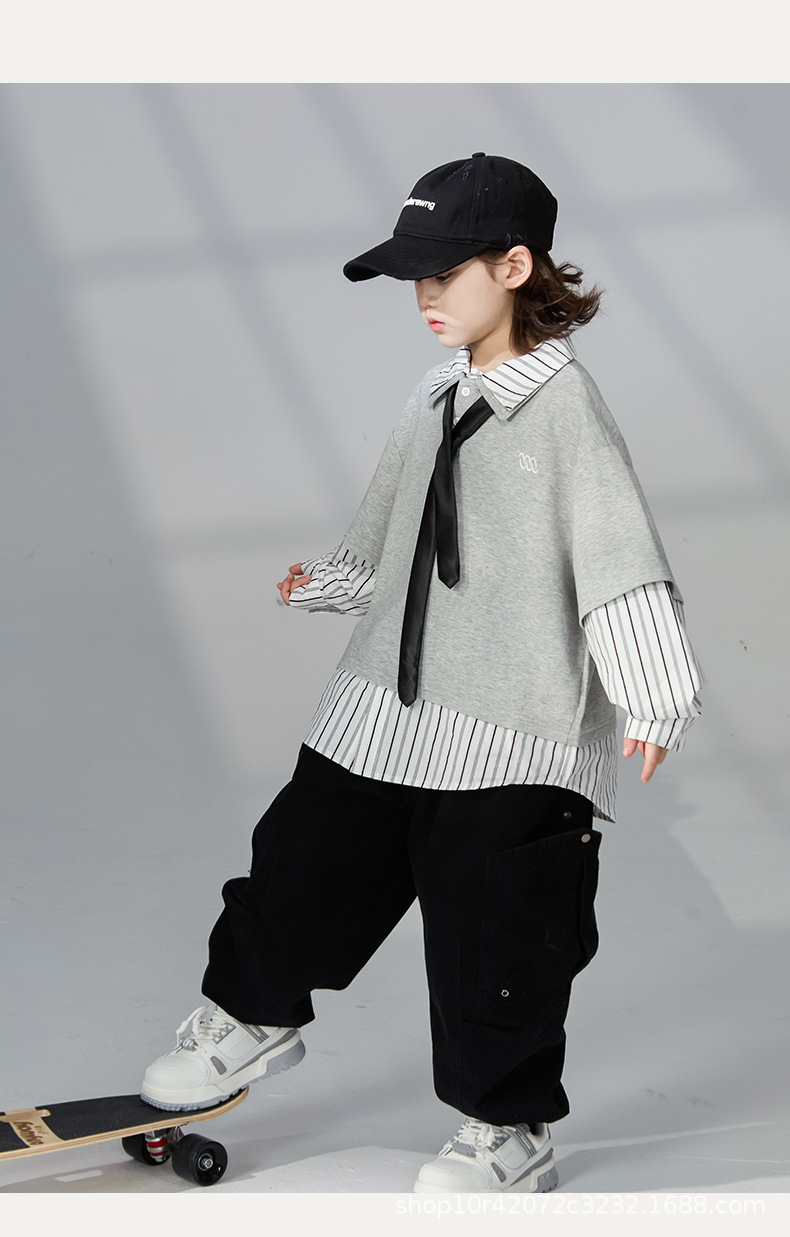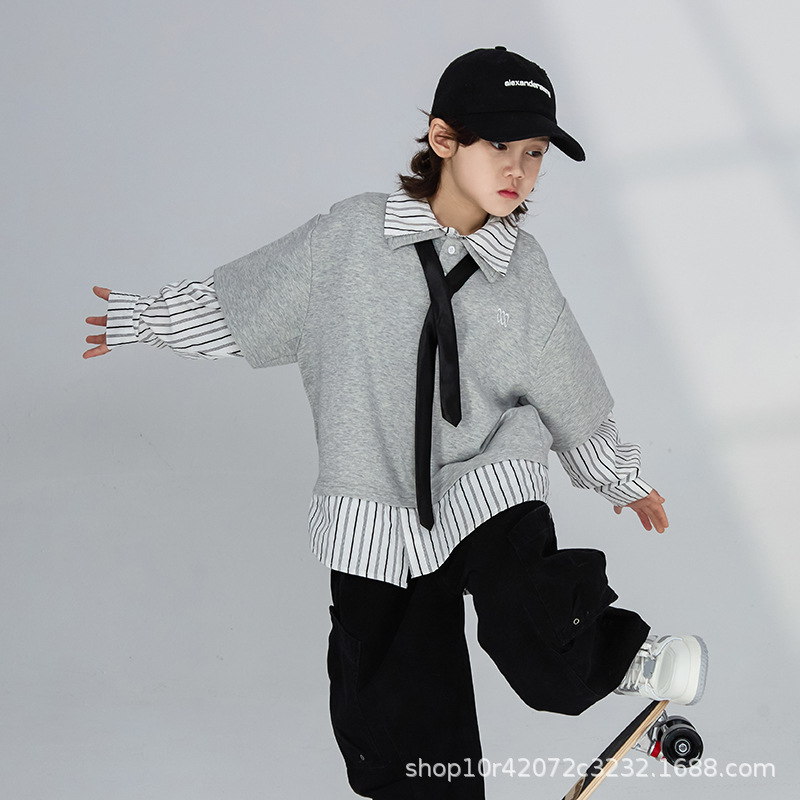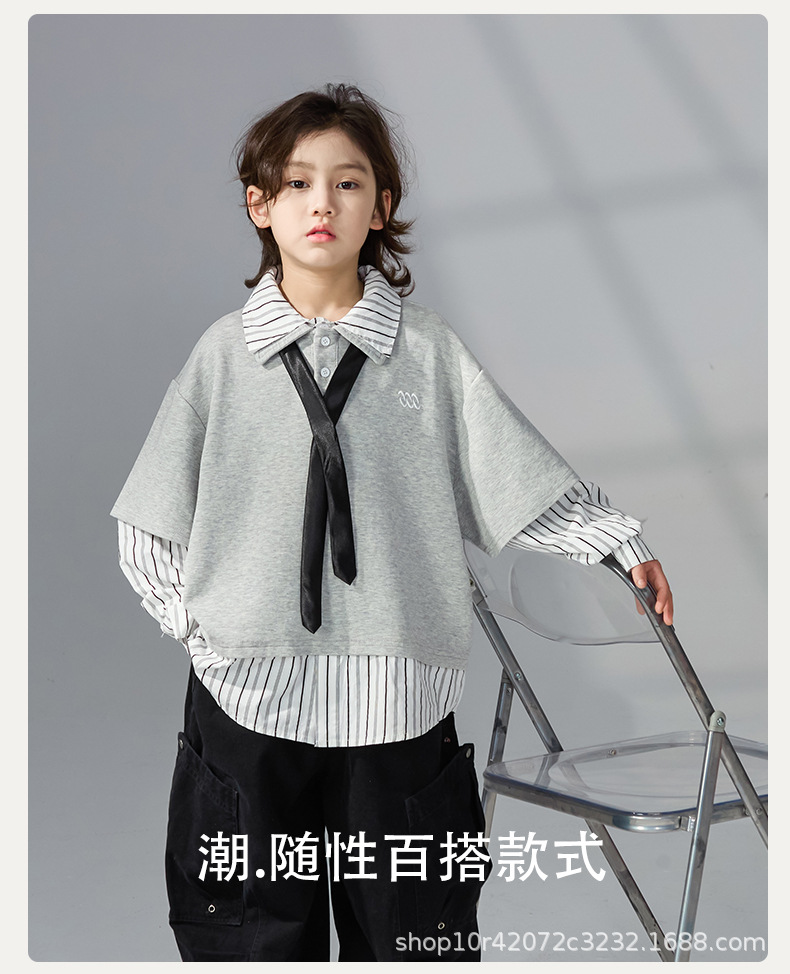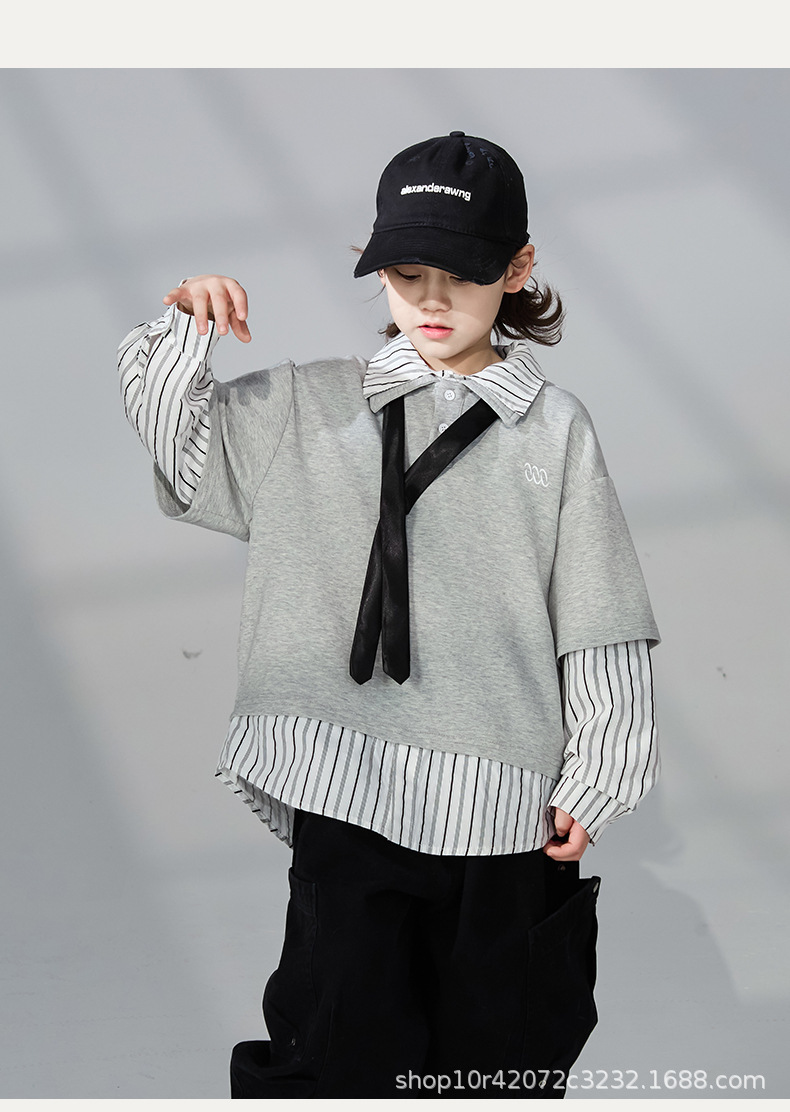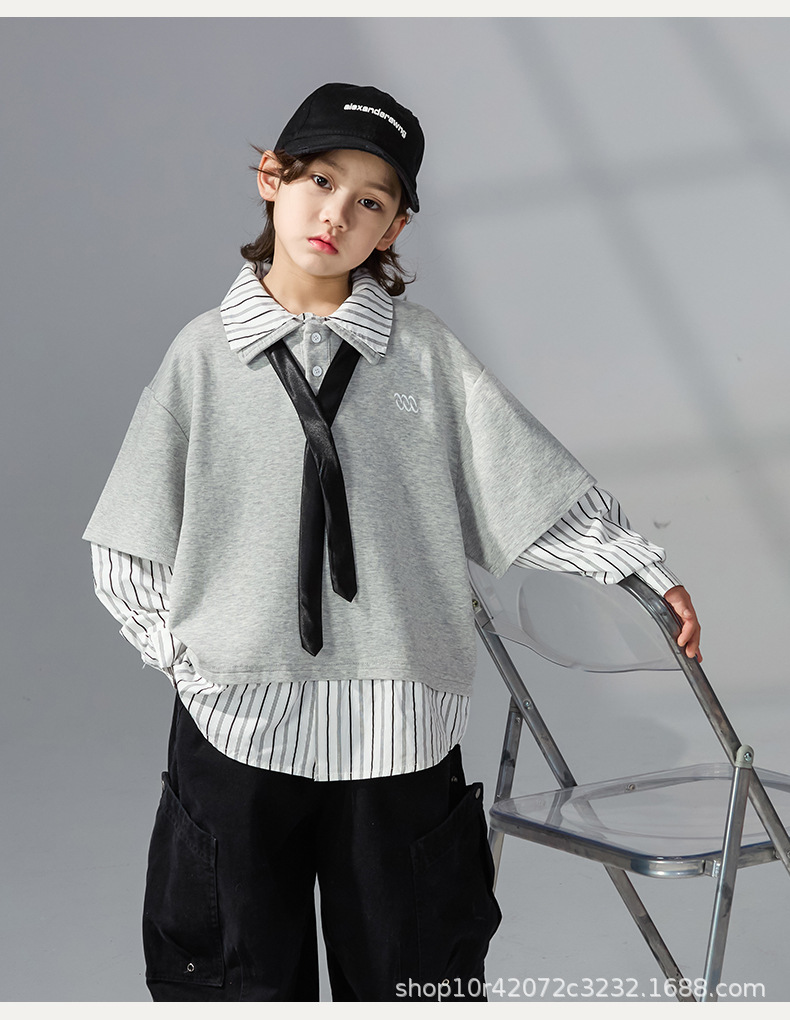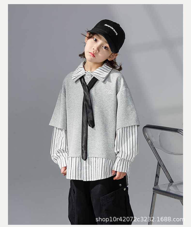 어린이 넥타이 셔츠 2025 봄 새 소년 한국 루즈 셔츠 어린이 유행 봄 탑스토어 가기