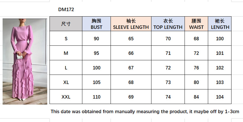 2025년 봄 유럽 및 미국 해외 무역 고급 드레스 세트 입체적인 러플 디테일 슬림핏 롱스커트 투피스 세트스토어 가기