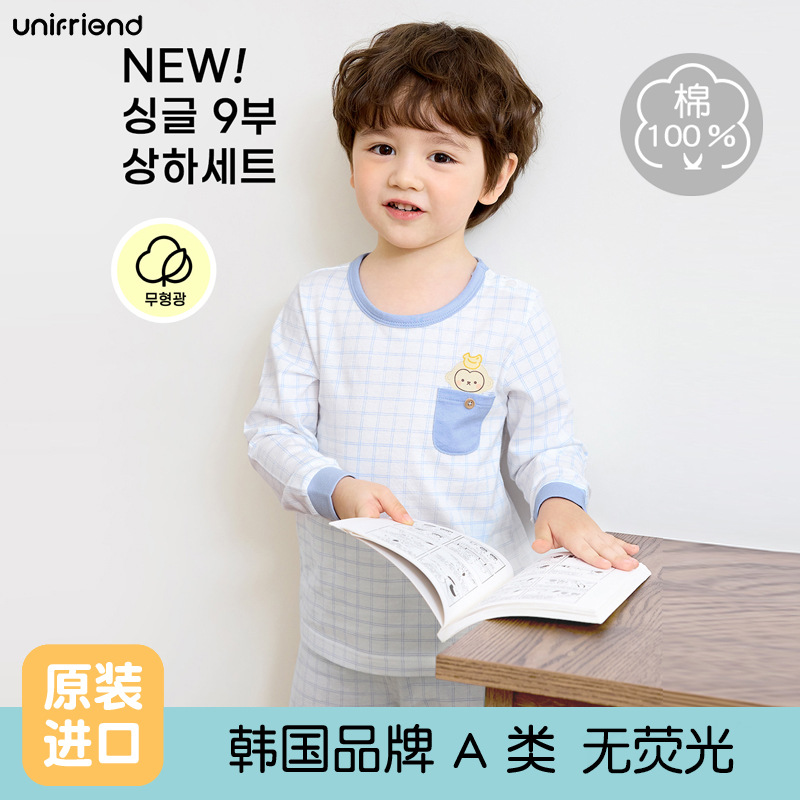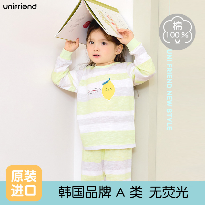 봄 및 여름 새로운 어린이 홈 의류 세트 아기 소년의 잠옷 소녀의 긴 소매 에어컨 순수한 면화스토어 가기