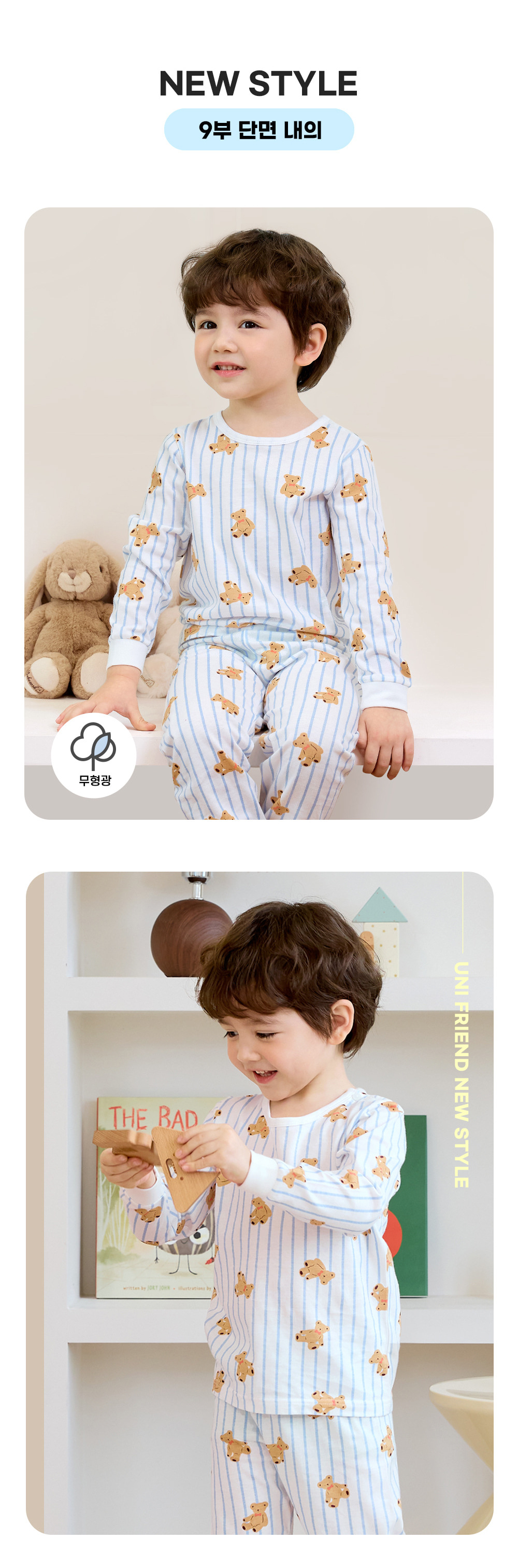 • 블루 스트라이프 베어(긴팔 에어컨 슈트/얇은 면)