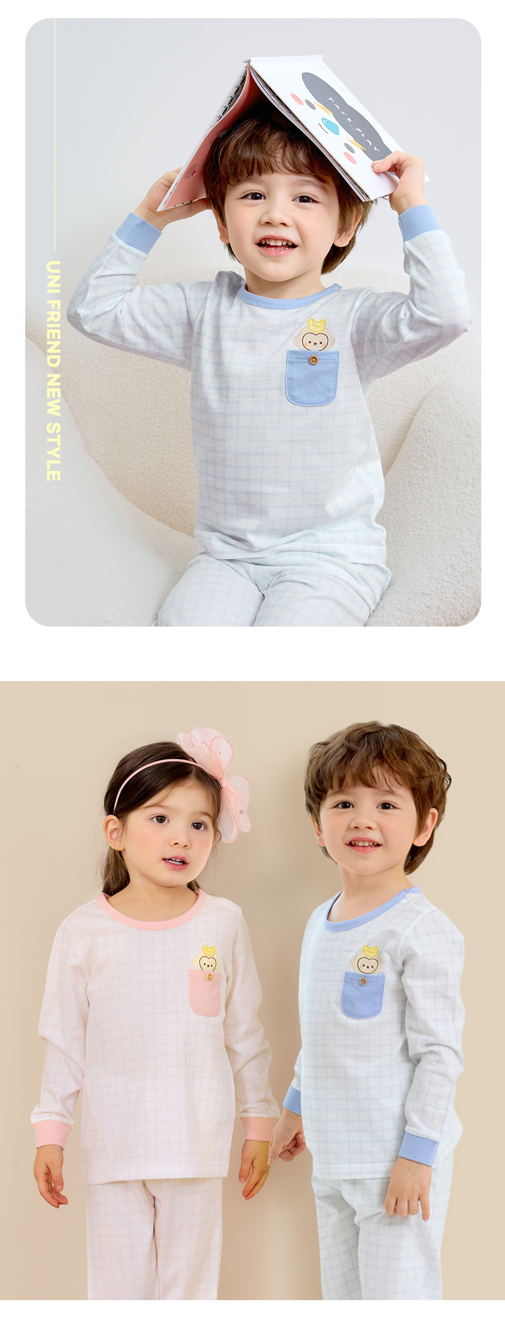 • 핑크 체크무늬(긴팔 에어컨 슈트/얇은 면)