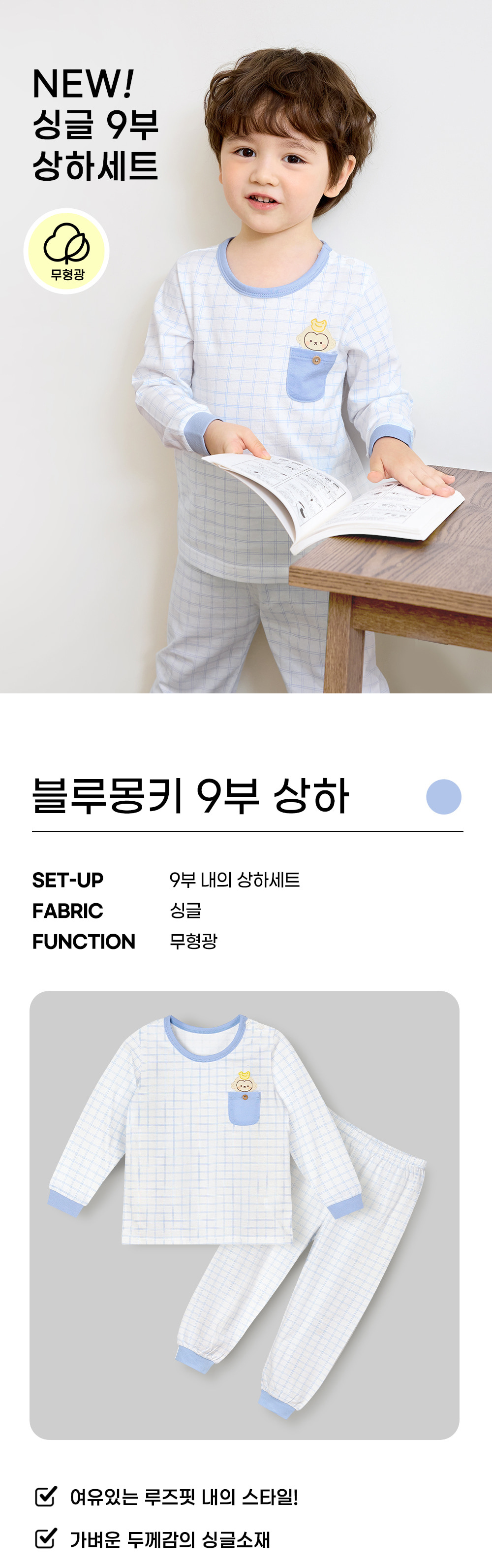 • 블루 체크무늬(긴소매 에어컨 슈트/얇은 면)