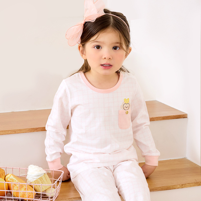 봄 및 여름 새로운 어린이 홈 의류 세트 아기 소년의 잠옷 소녀의 긴 소매 에어컨 순수한 면화