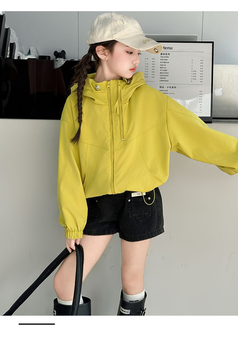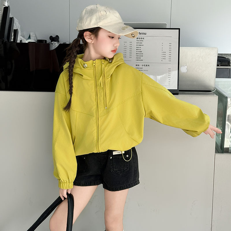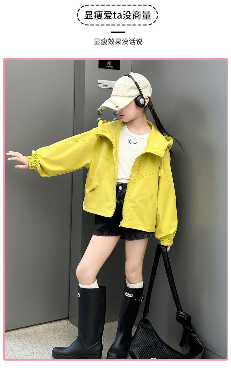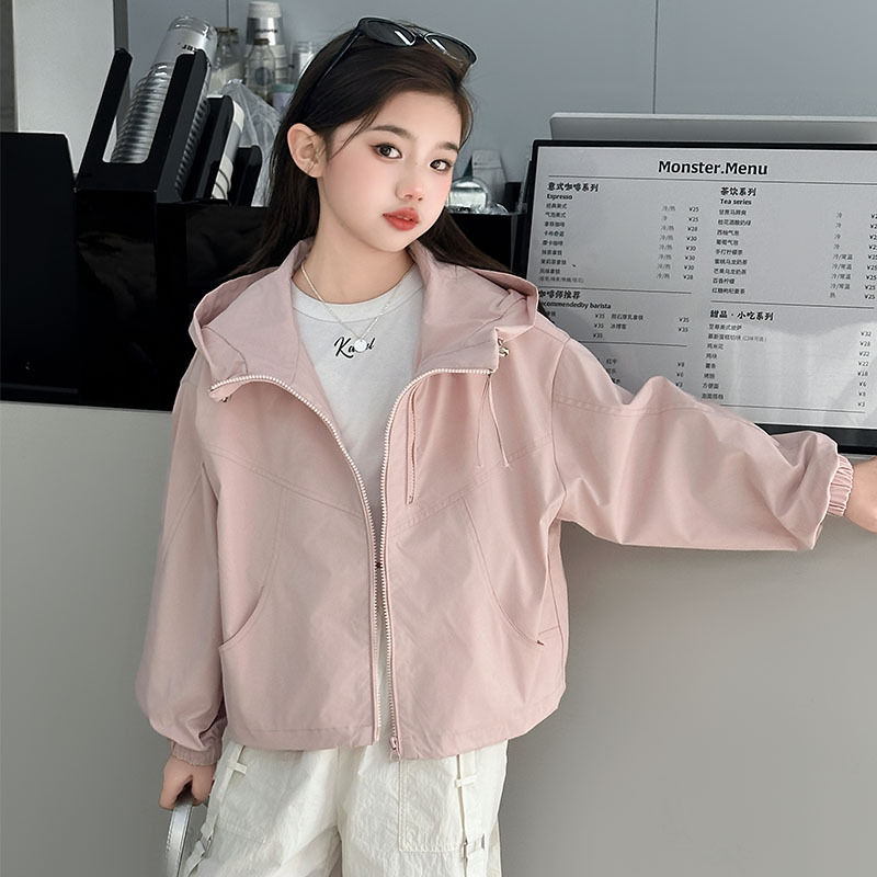 소녀의 봄과 가을 Rusk 옷 2025 새로운 어린이 서양식 단색 후드 자켓 큰 어린이 봄과 가을 야외 재킷 트렌디스토어 가기