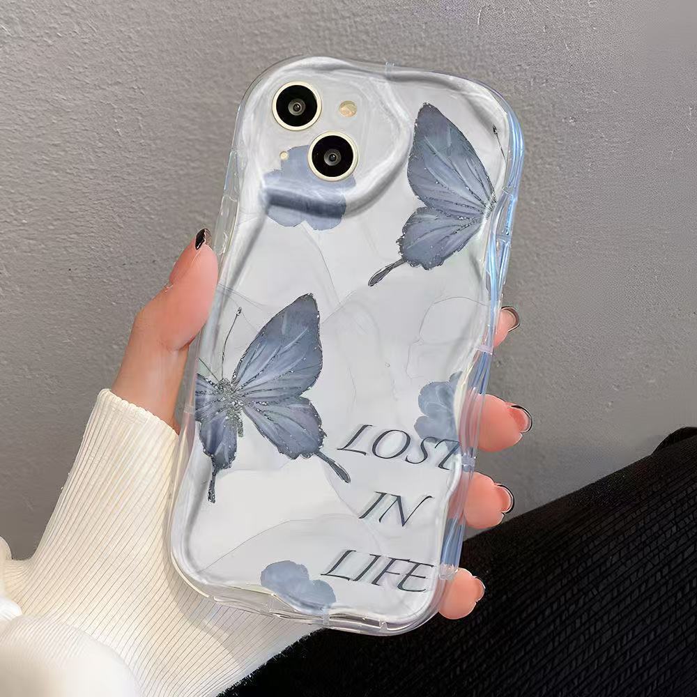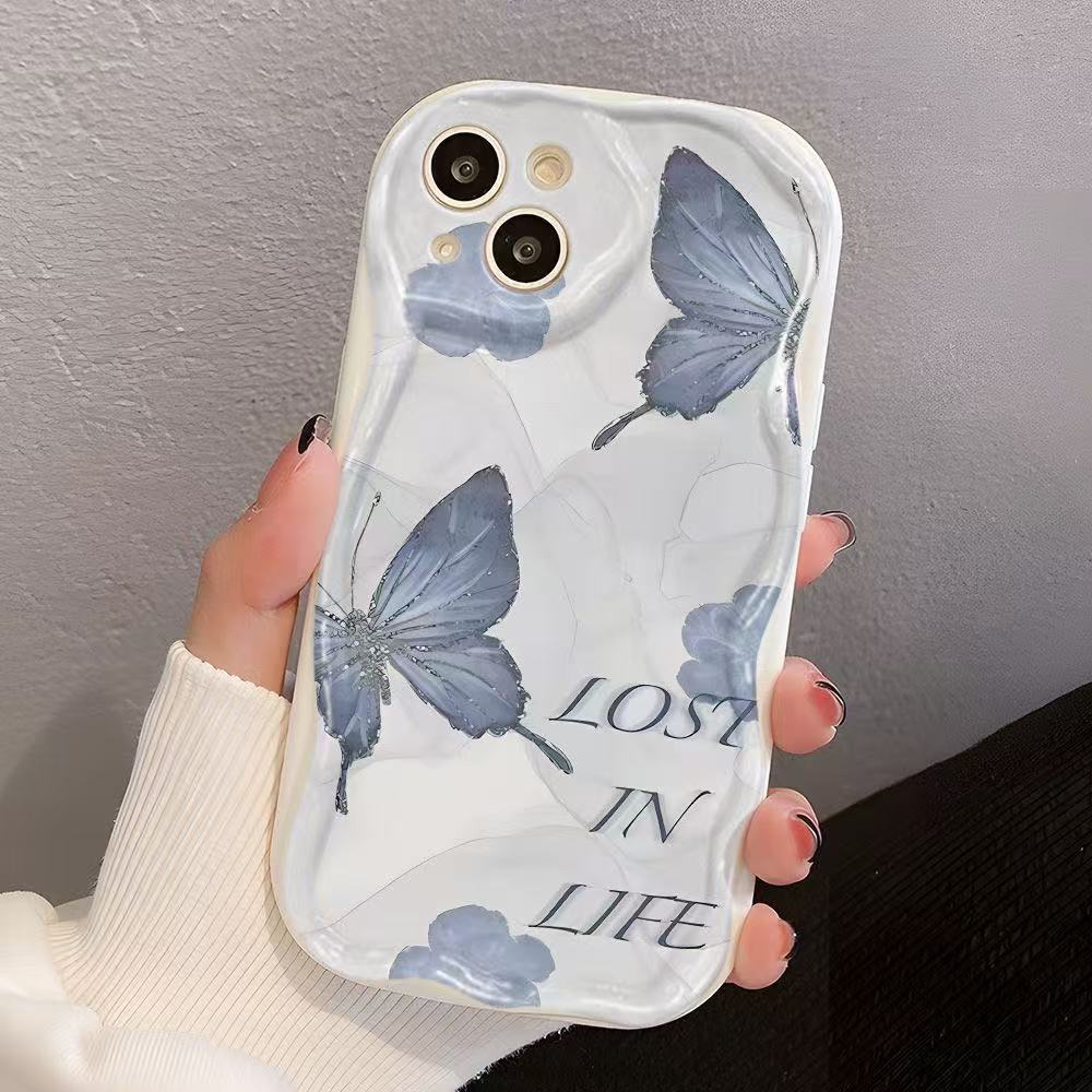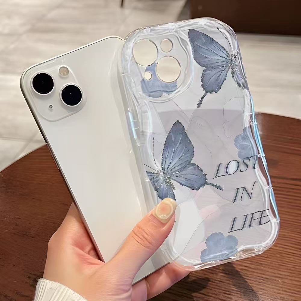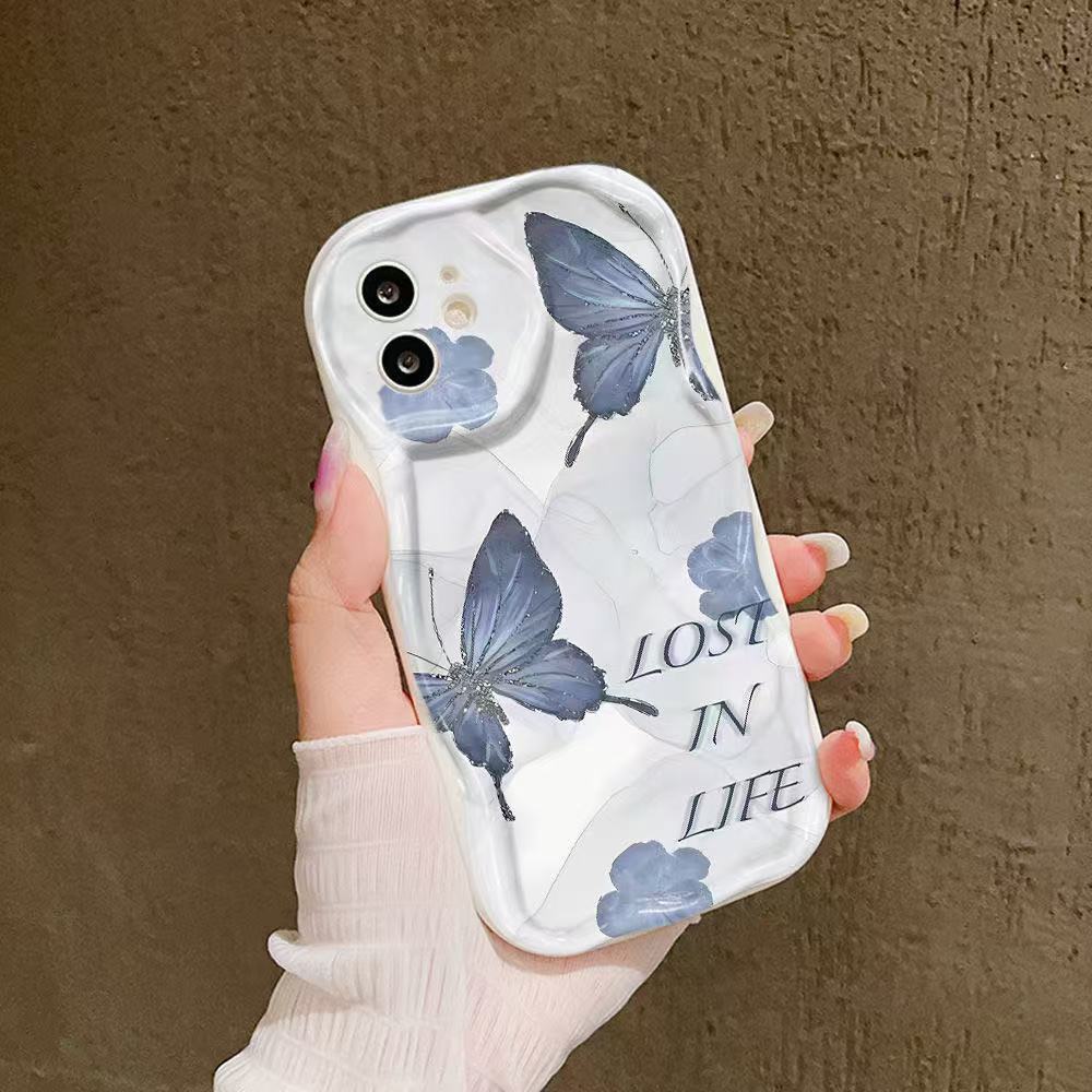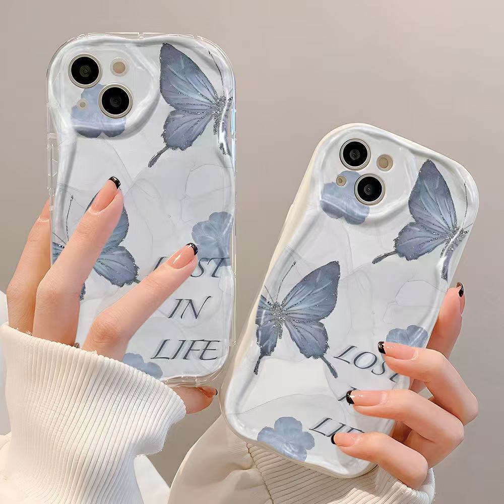 아이폰 15promax 전화 케이스 애플 14 크림 웨이브 12/13 소프트 케이스 11 블루 나비