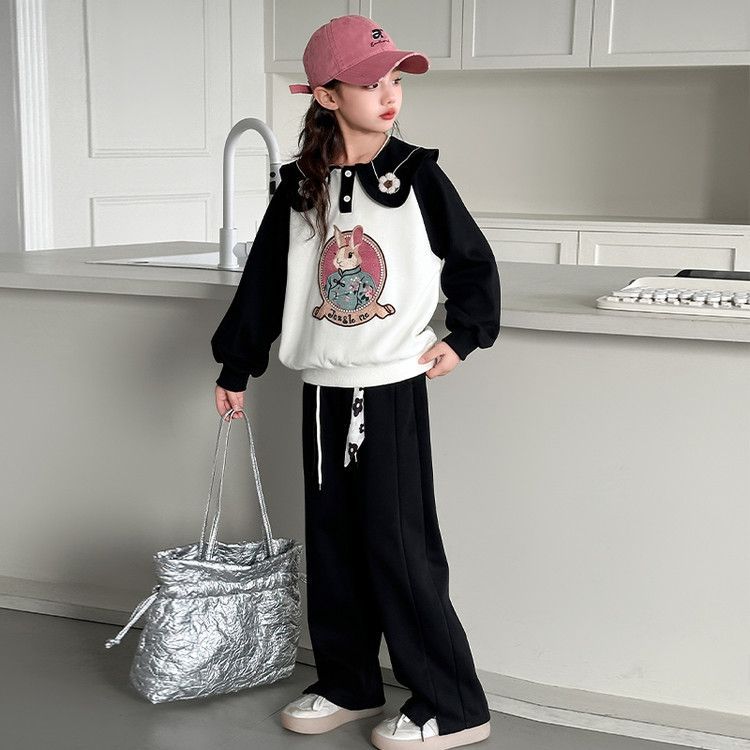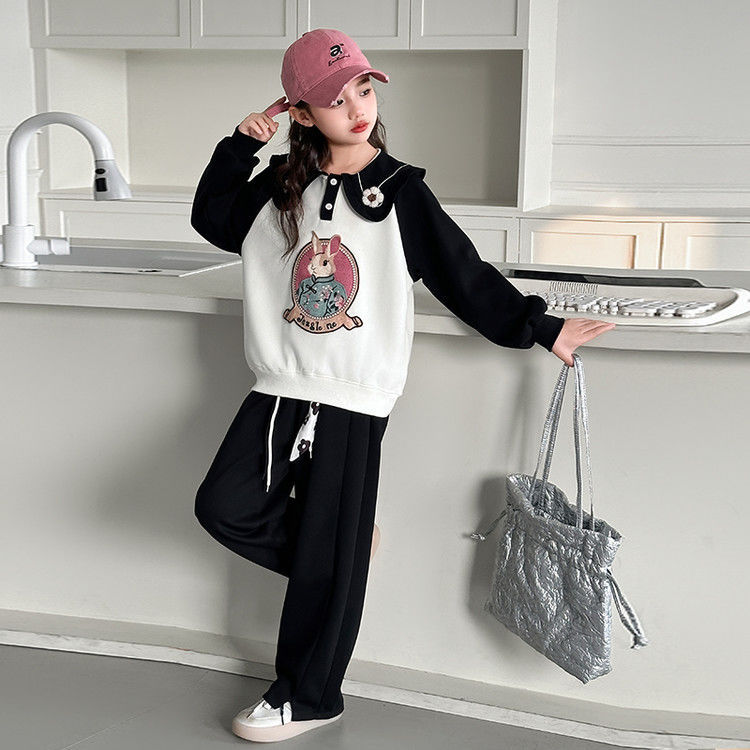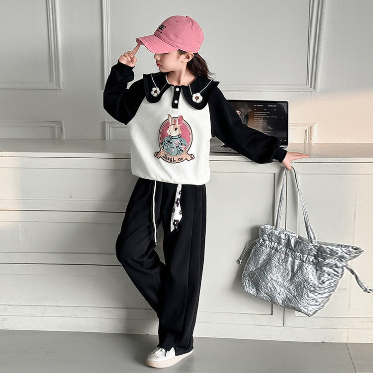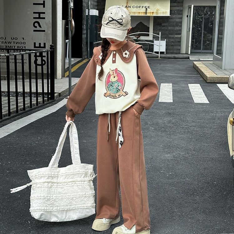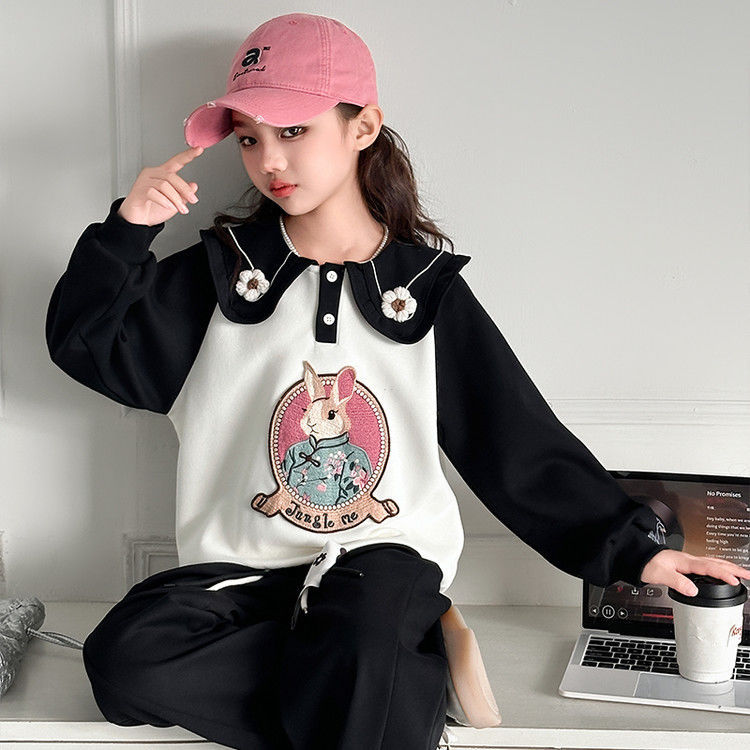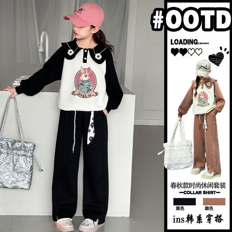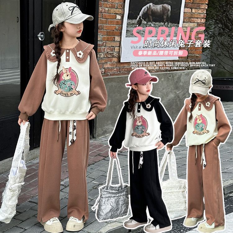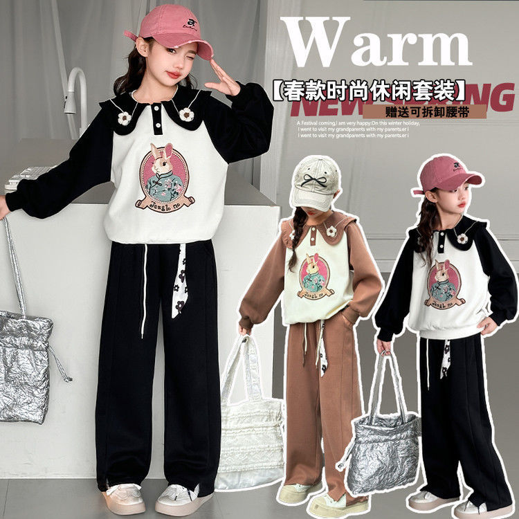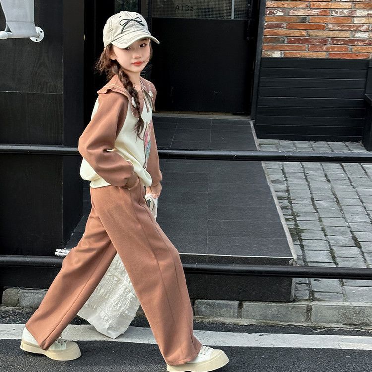 소녀 스웨트 셔츠 봄 2025 새로운 소녀 봄 자켓 어린이 및 소녀 봄 옷 블로우 스트리트 세트 조수