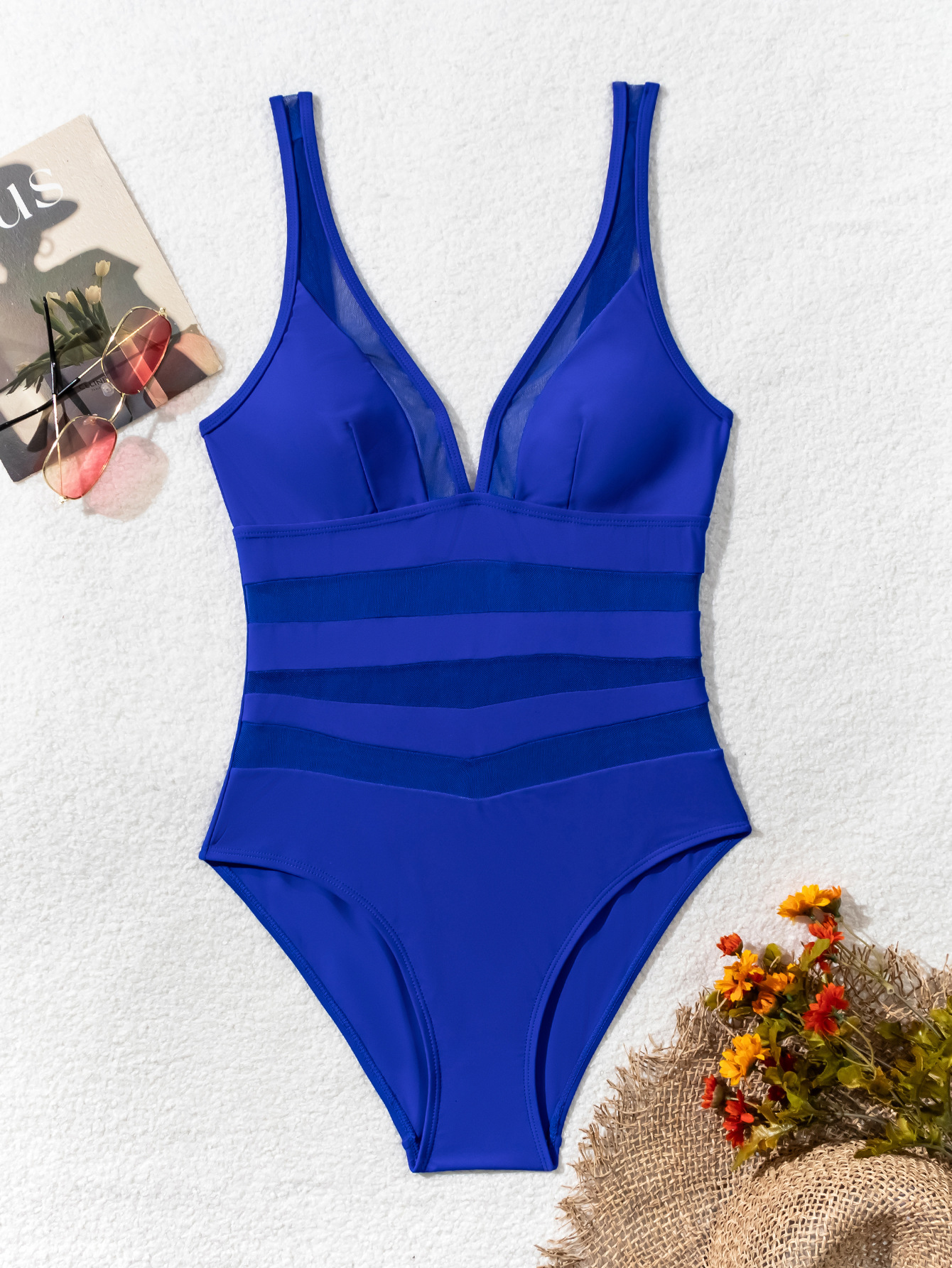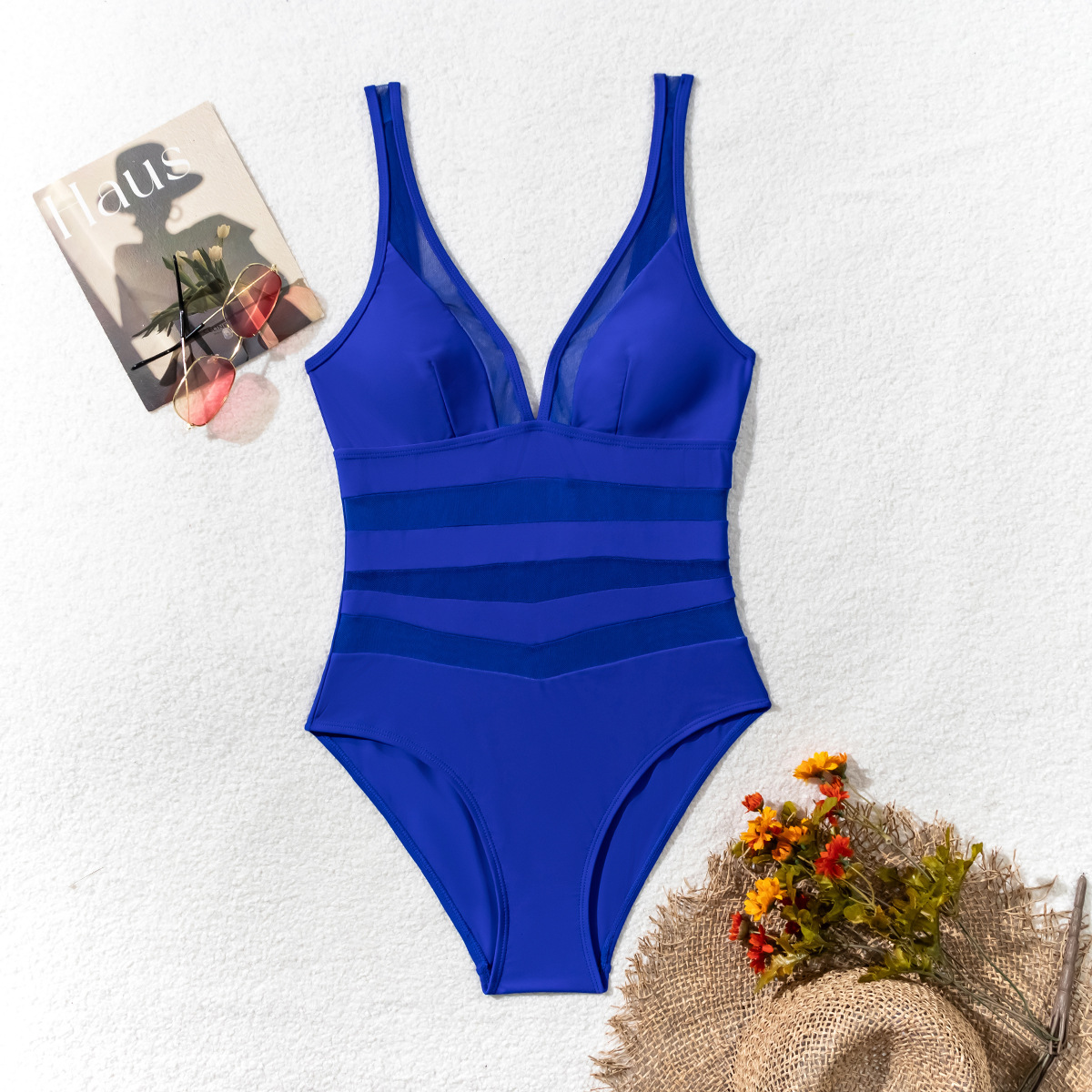 2025 유럽과 미국의 새로운 국경 간 여성 솔리드 컬러 메쉬 스플 라이스 섹시한 타이트 슬링 원피스 슬림 수영복