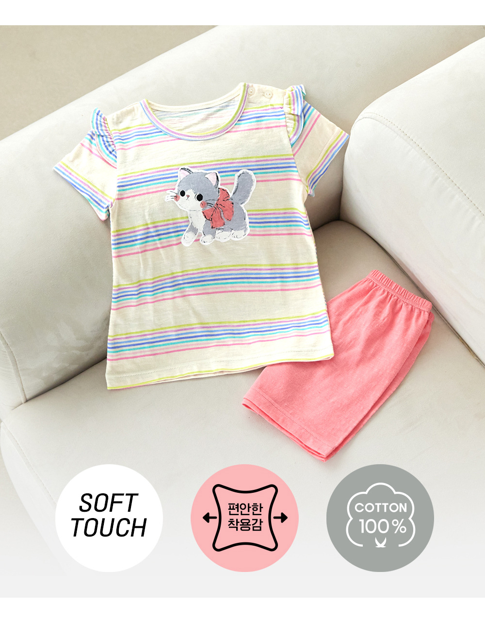 새 여름 어린이 잠옷 세트 여아 집 옷 순면 소년 잠옷 만화 한국 스타일스토어 가기