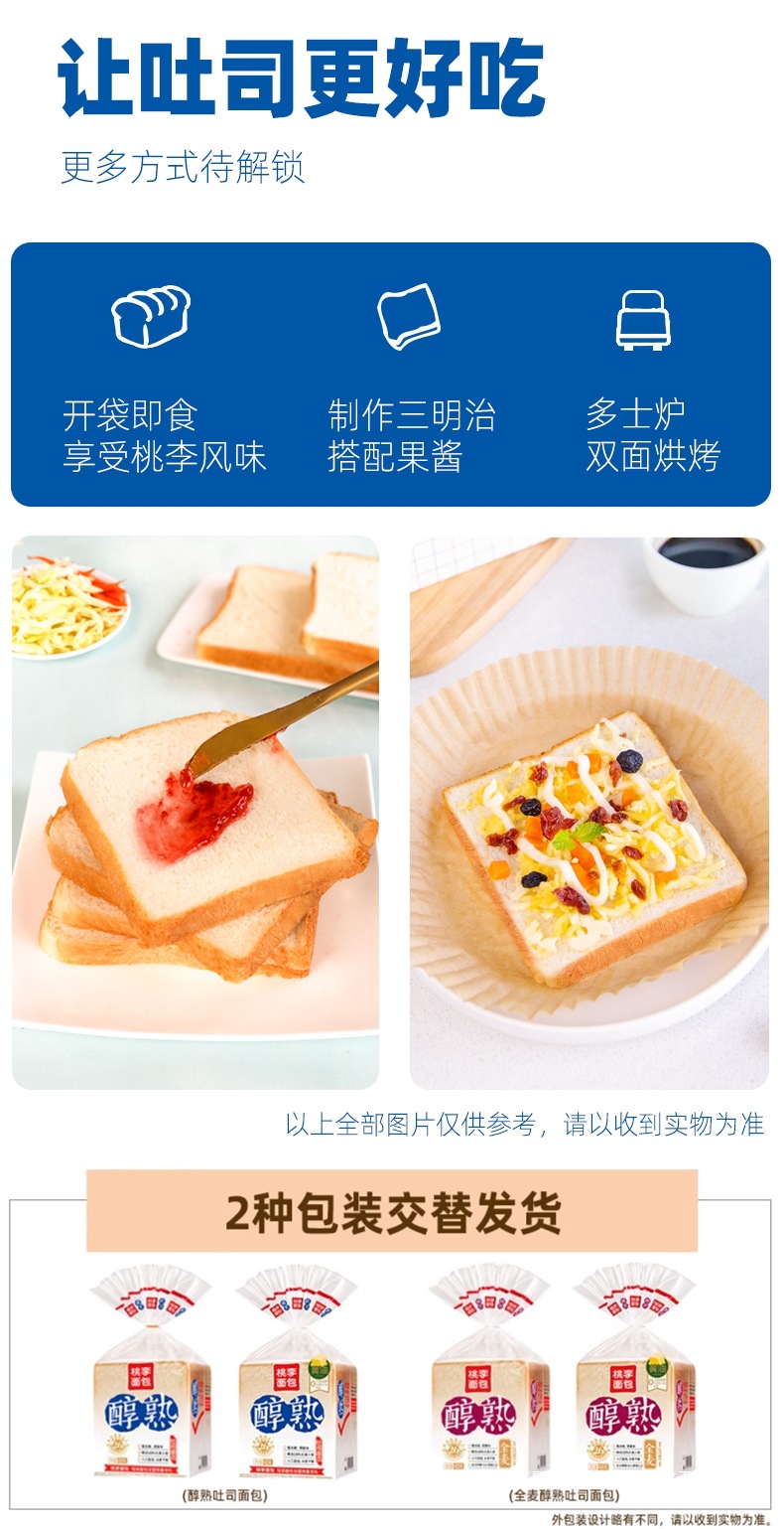 복숭아와 매화 부드러운 토스트 빵 전체 상자 아침 학생 통밀 빵 조각 사무실 간식 간식 y스토어 가기