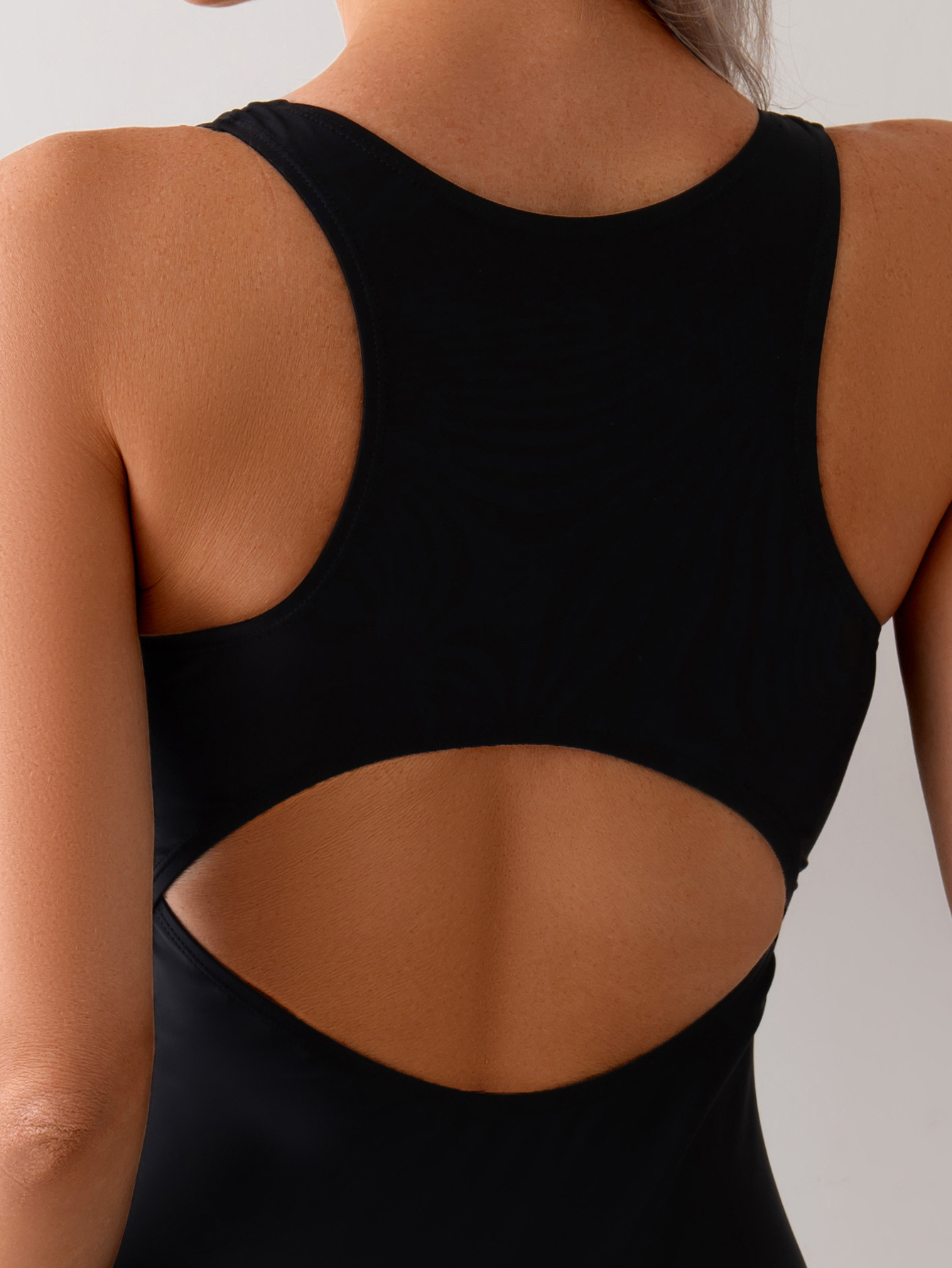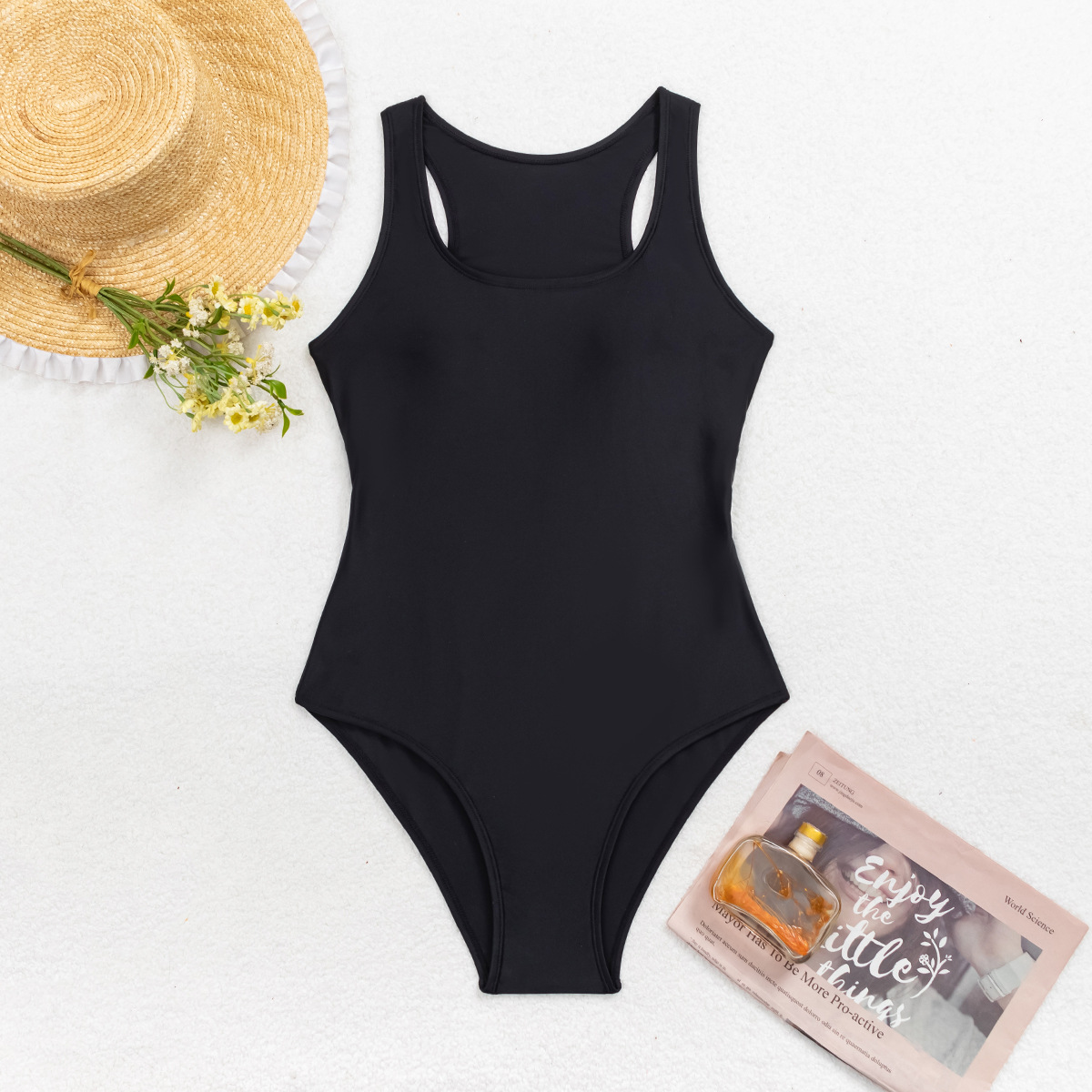 유럽과 미국의 국경을 넘나드는 새로운 여성 패션 단색 섹시한 등이없는 배 커버 민소매 팬티 비키니 원피스 수영복