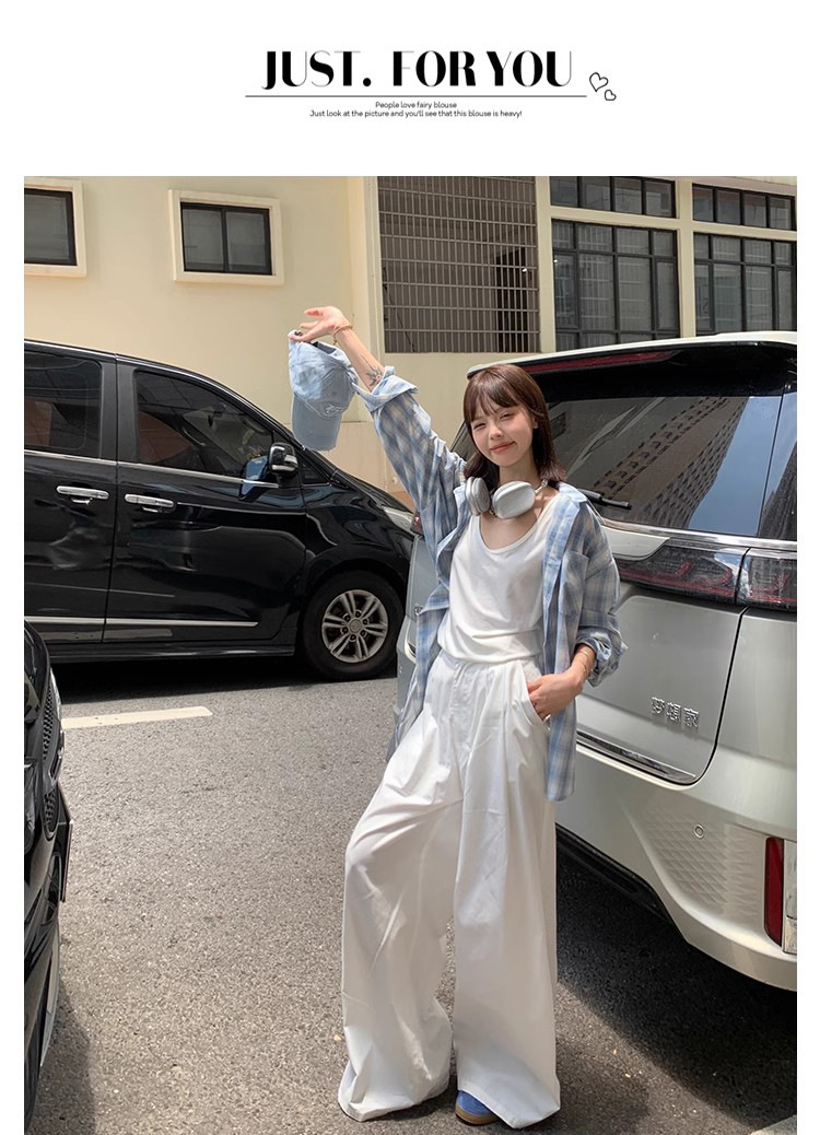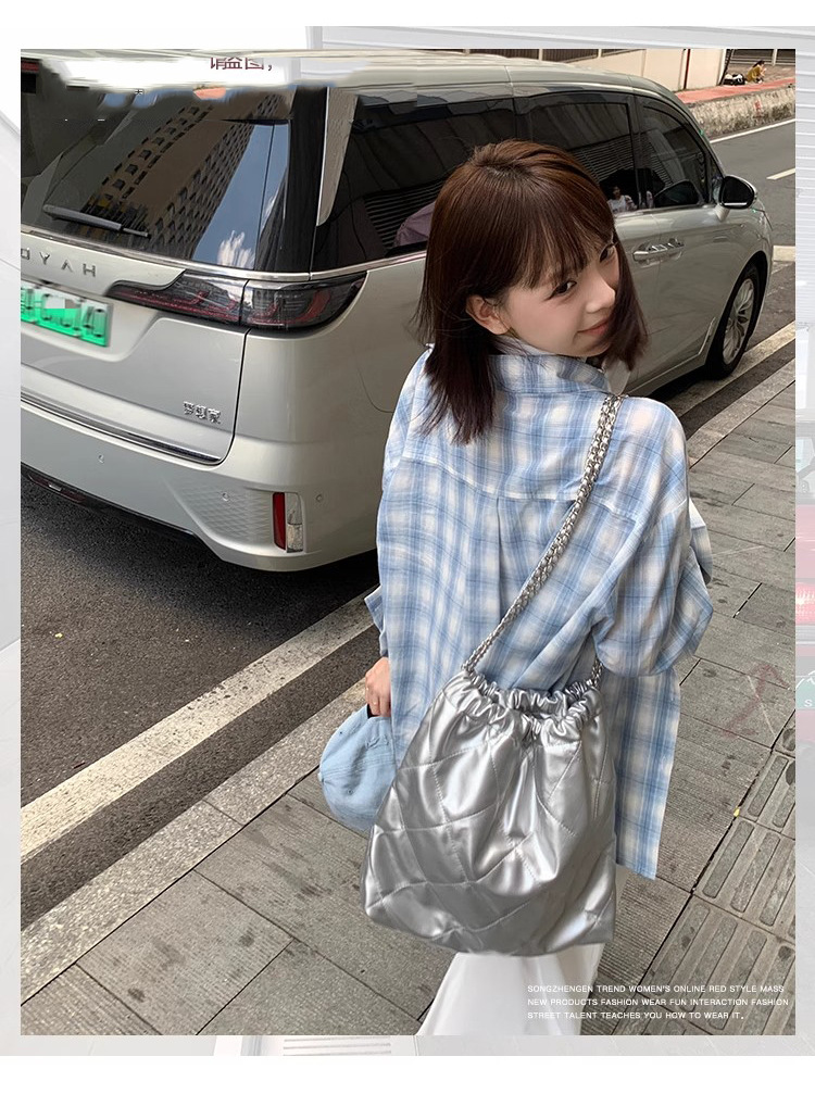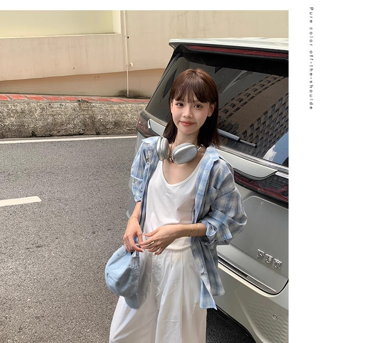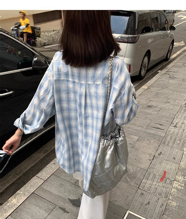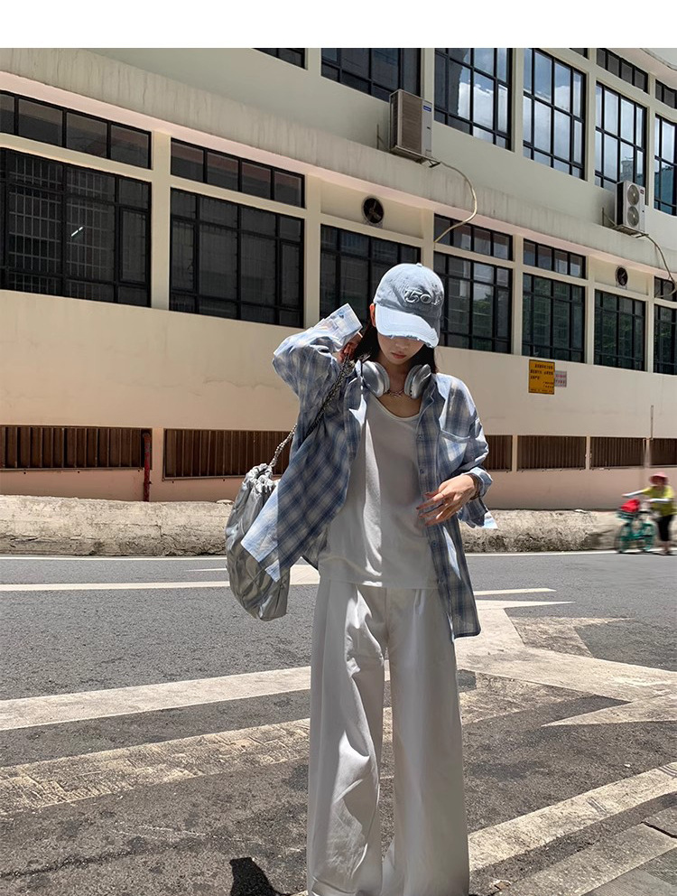 국경 새로운 블루 체크 무늬 셔츠 코트 여성의 봄과 가을 새로운 게으른 스타일 우아한 선 스크린 셔츠 코튼 탑스토어 가기
