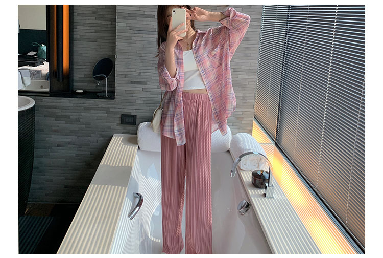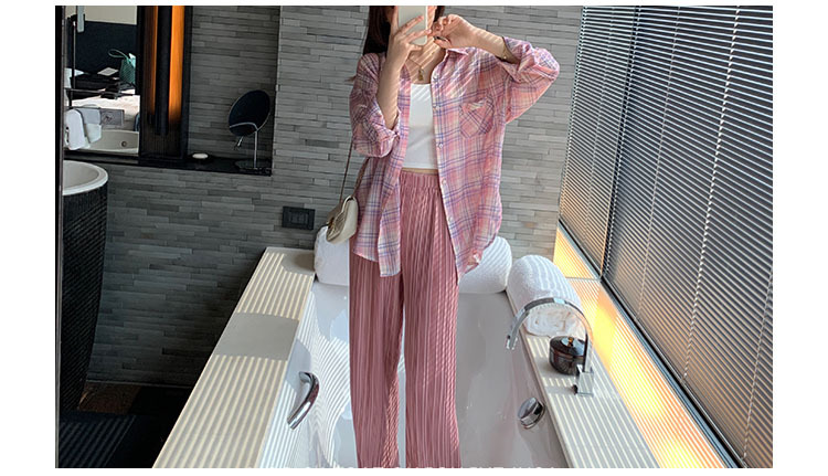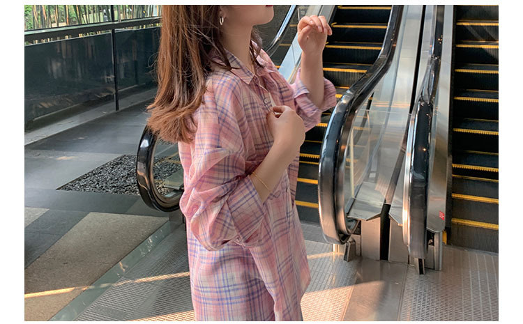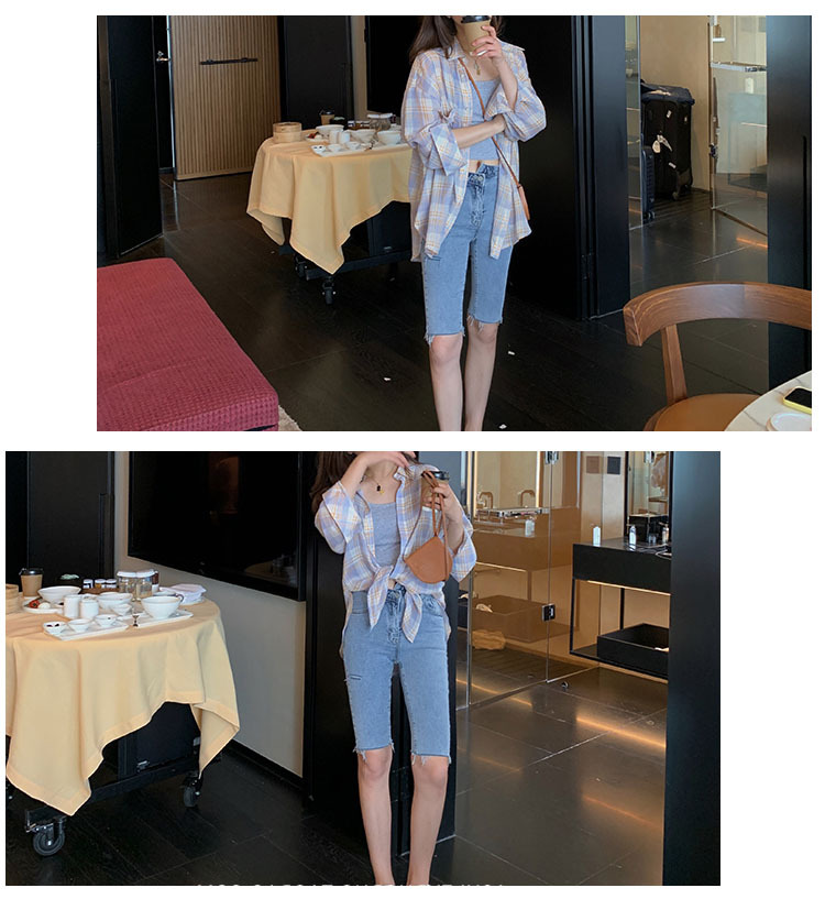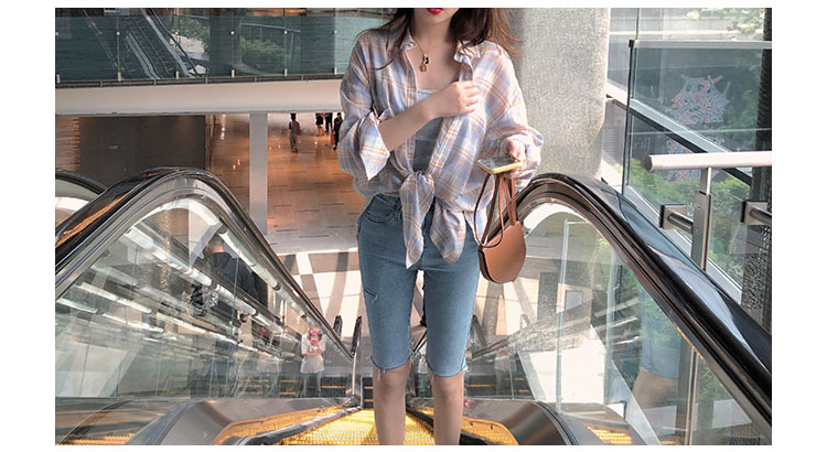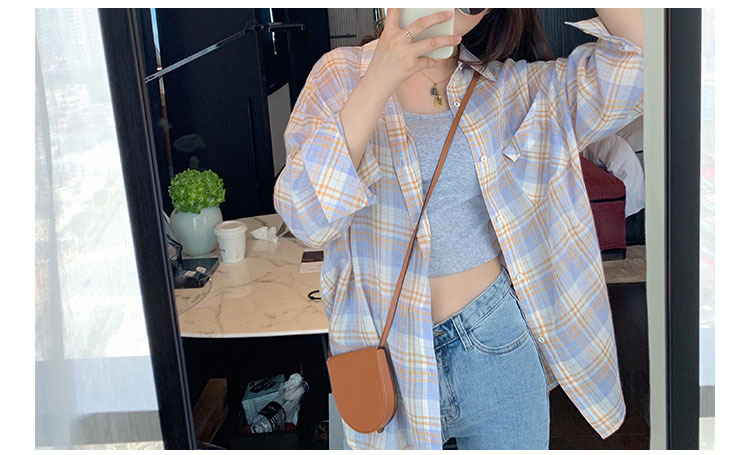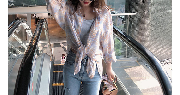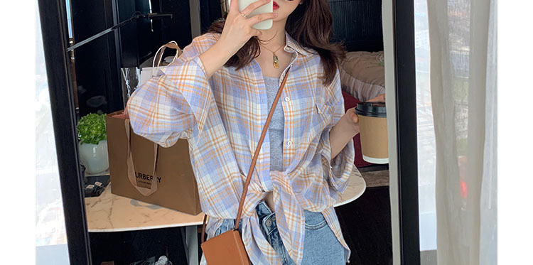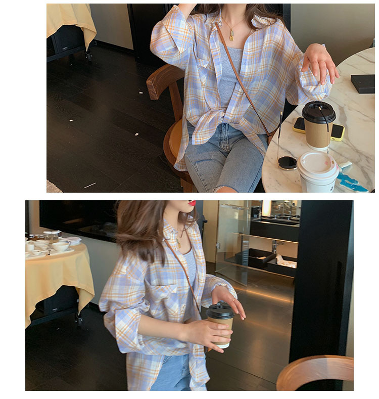 체크무늬 셔츠 재킷 여성 봄 여름 긴팔 상의 얇은 한국식 루즈한 자외선 차단 셔츠 서양식 셔츠 중간 길이스토어 가기