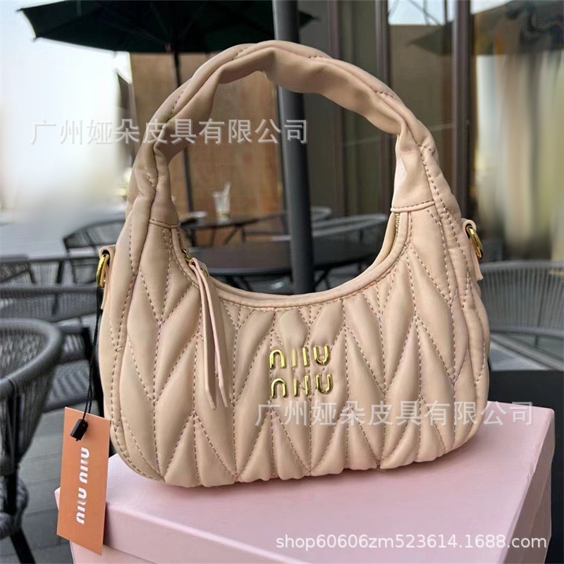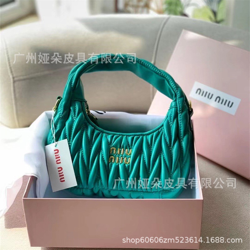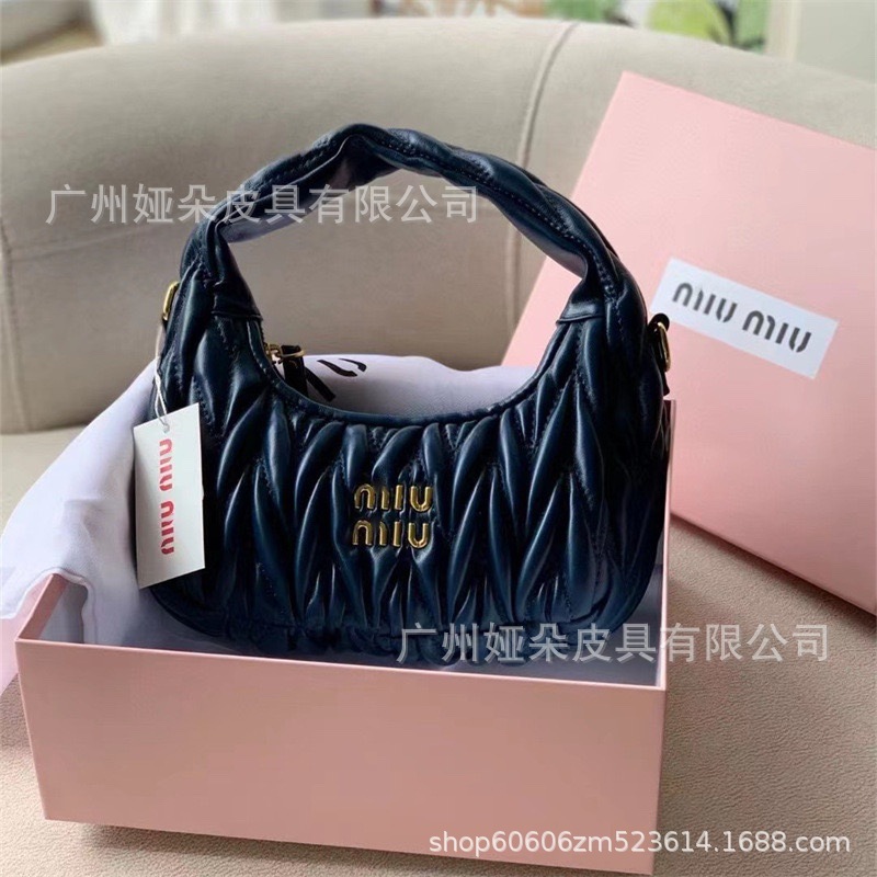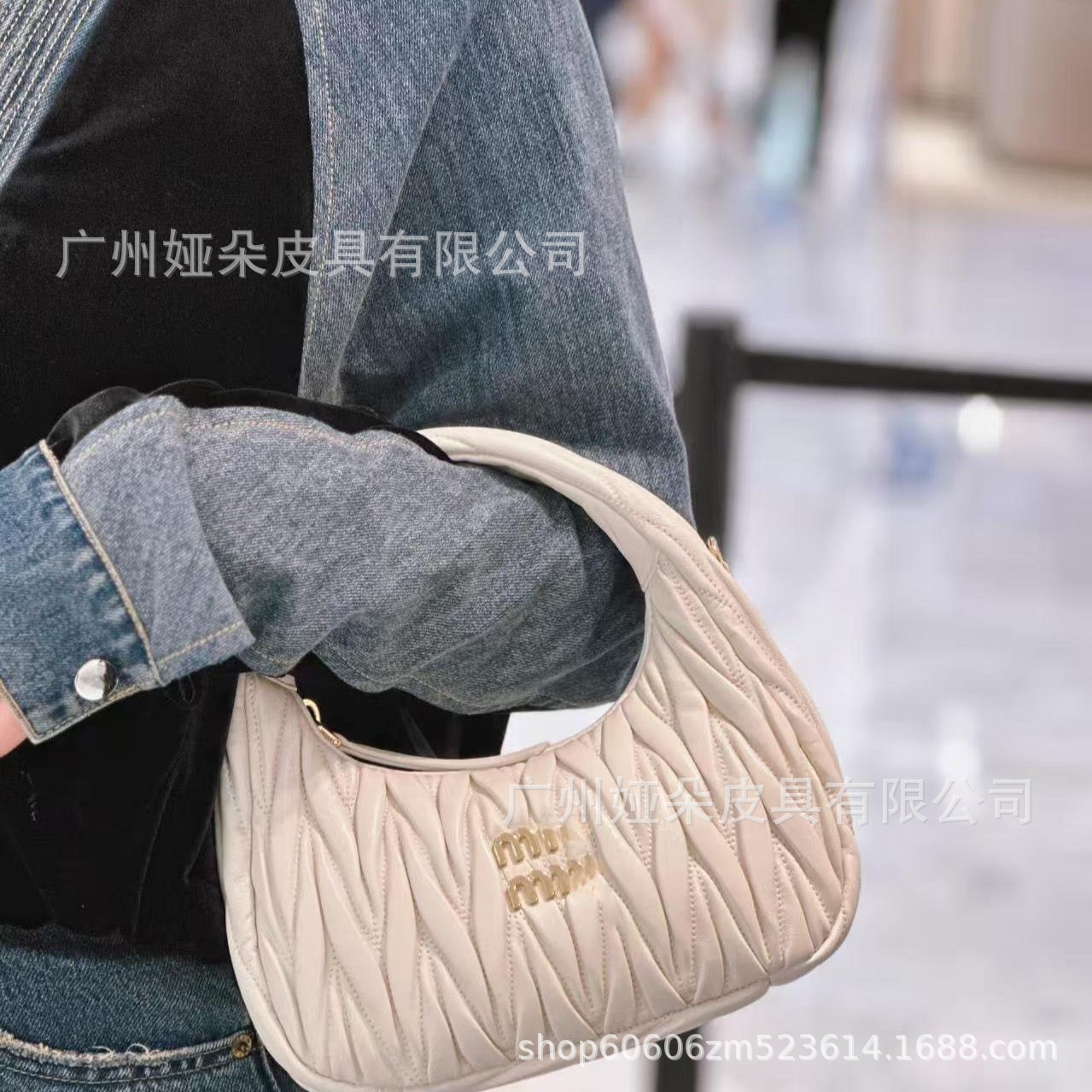 MIU 홈 휴대용 소형 만두 백 P 클라우드 백 크레센트 백 주름 크로스 바디 핸드백 가죽 여성용 가방스토어 가기