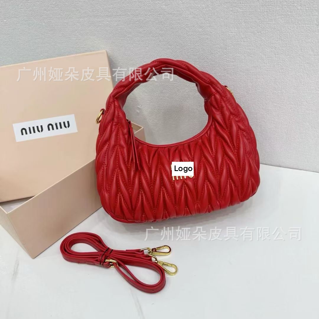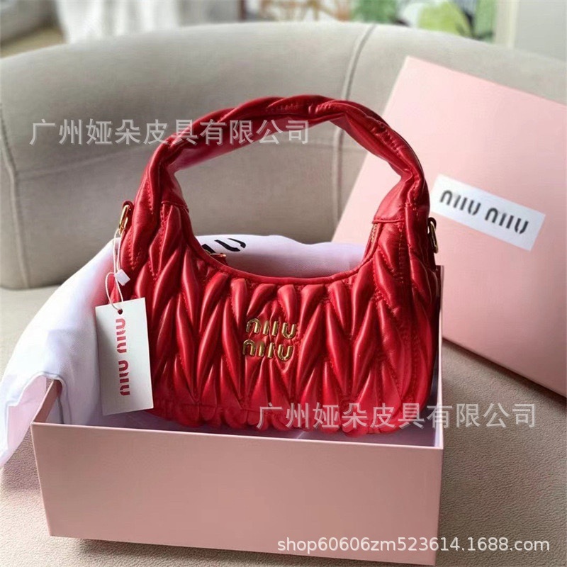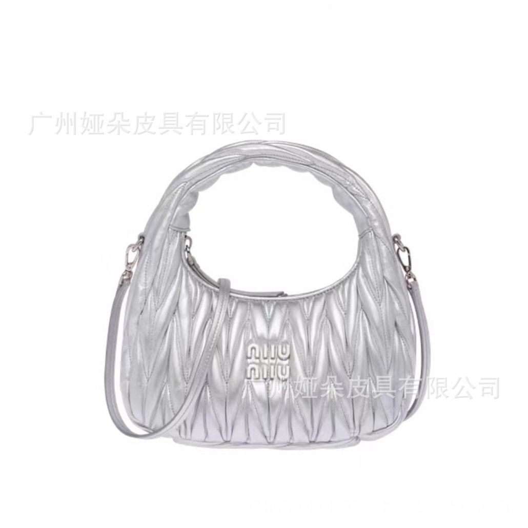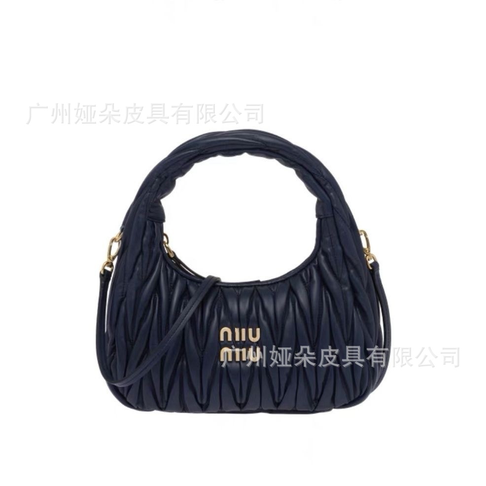 MIU 홈 휴대용 소형 만두 백 P 클라우드 백 크레센트 백 주름 크로스 바디 핸드백 가죽 여성용 가방