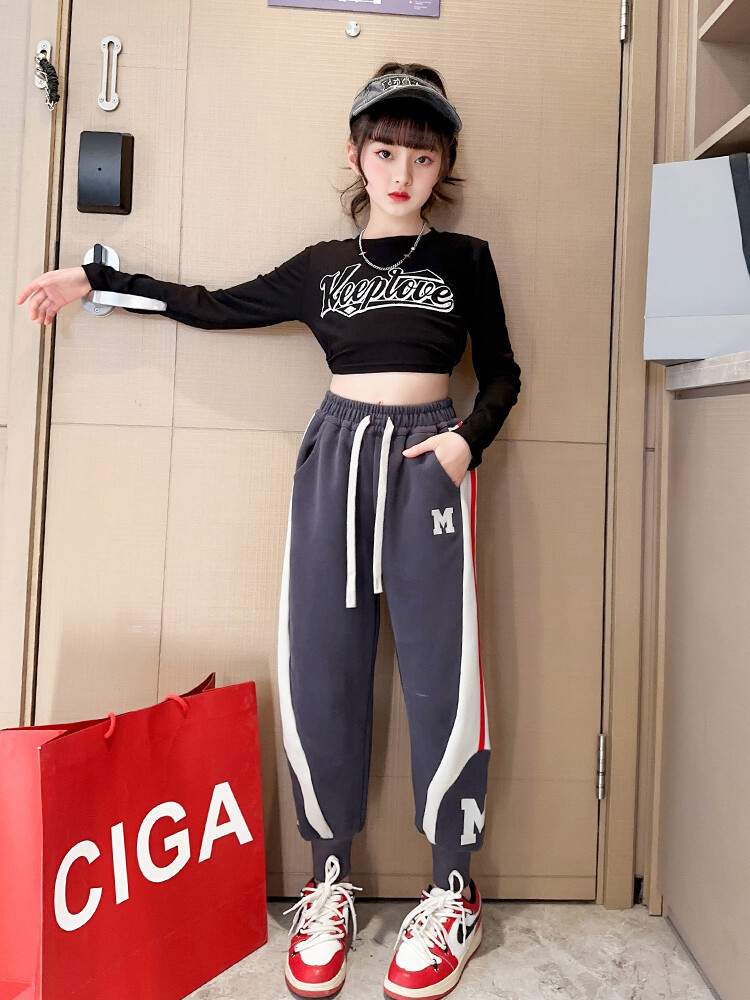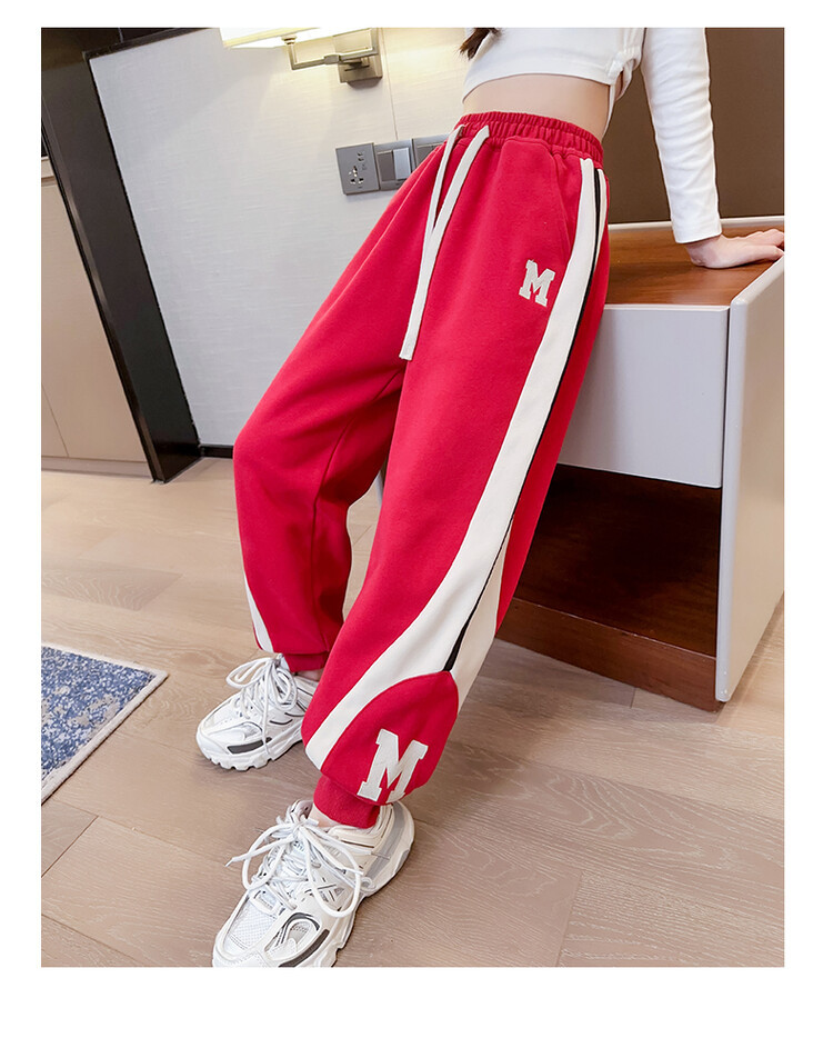 여아 바지 2024 봄 가을 새로운 패션 여아 가을 스타일 아동 가을 의류 느슨한 스포츠 캐주얼 바지