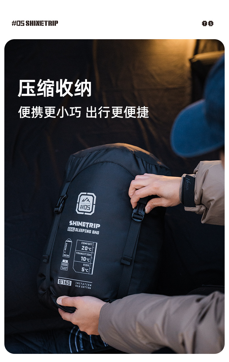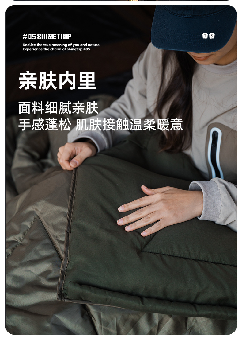 Shanqu ShineTrip 야외 슬리핑 백 부드럽고 편안한 절연 통기성 휴대용 두꺼운 접합 씰 슬리핑 백