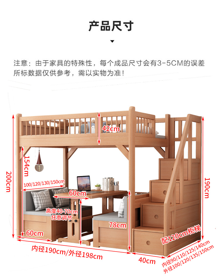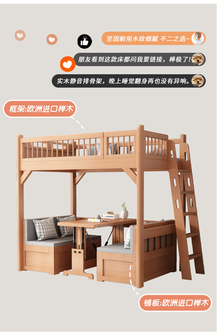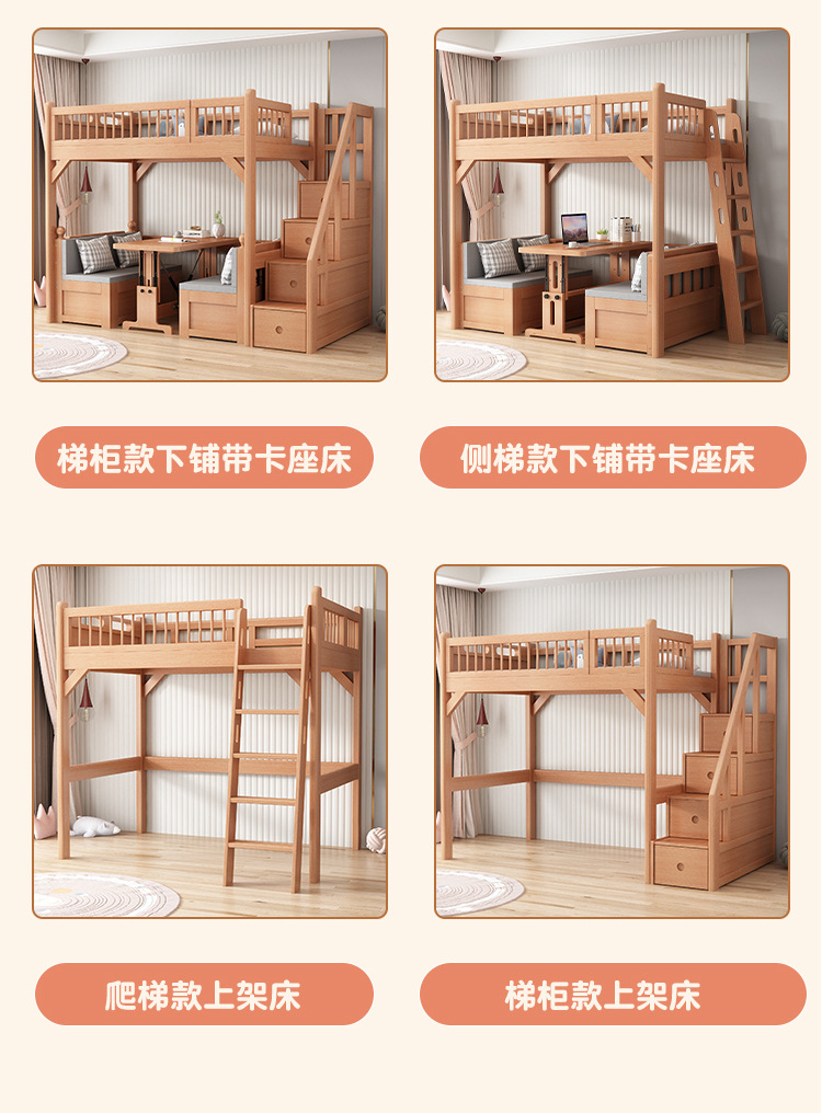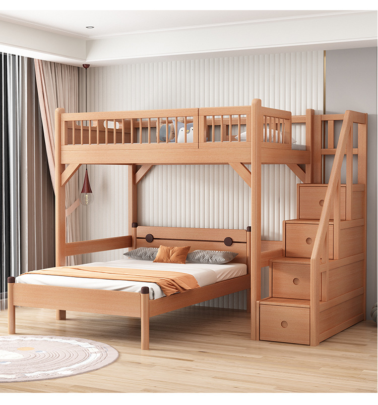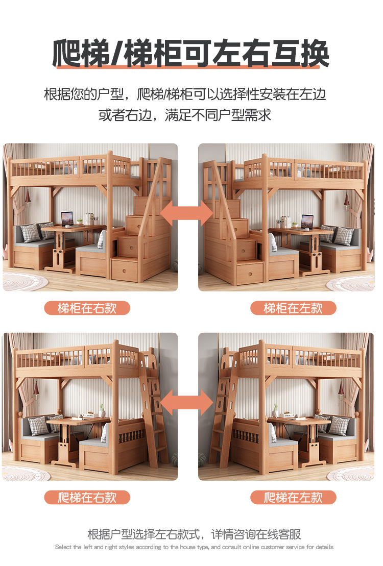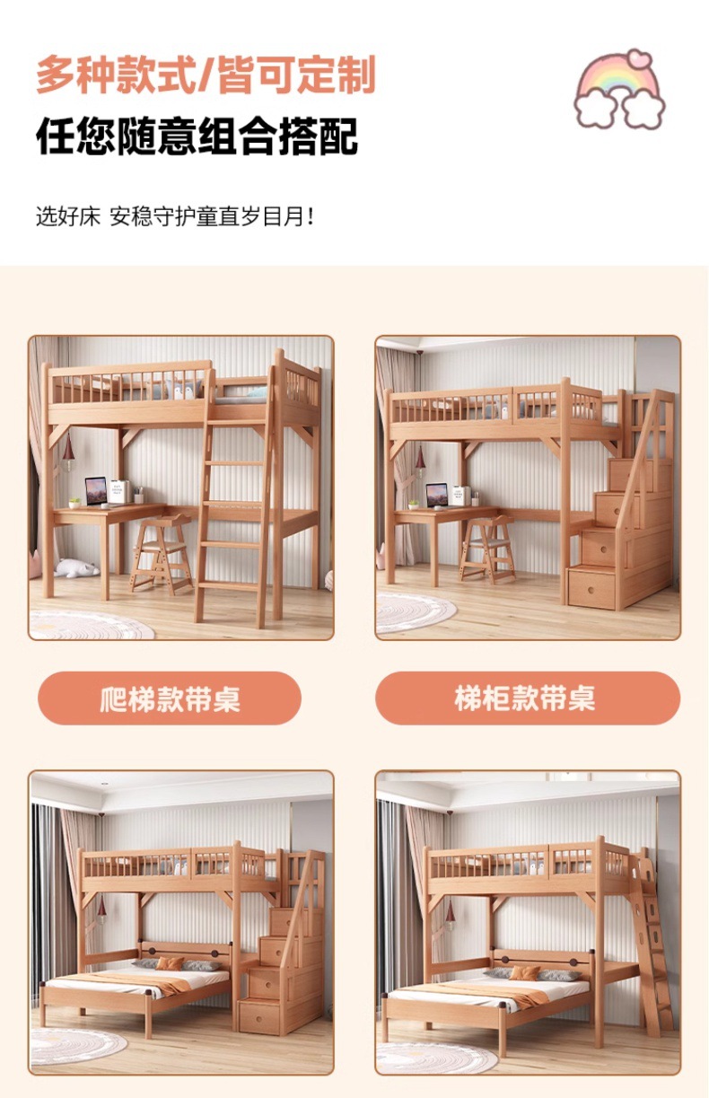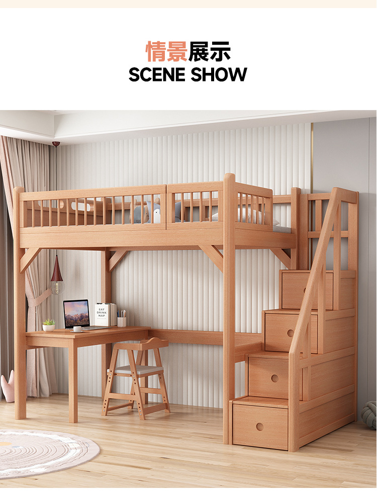 너도밤 나무 엇갈린 침대 전체 단단한 나무 작은 아파트 상부 침대 하부 책상 엇갈린 어린이 침대 높이 E18스토어 가기