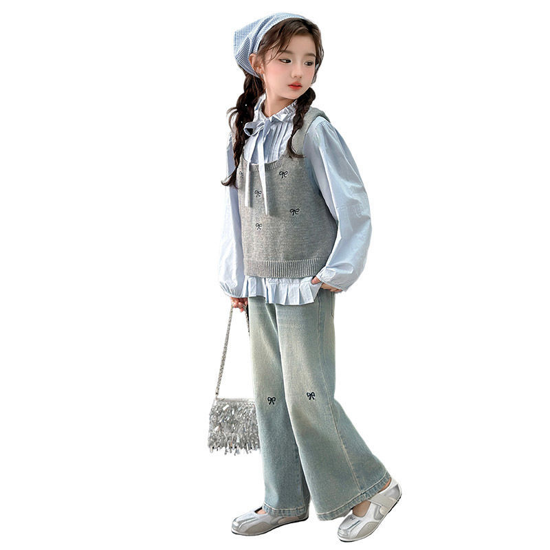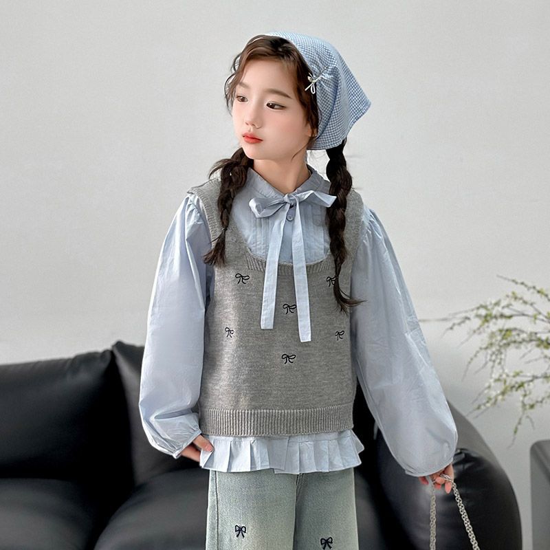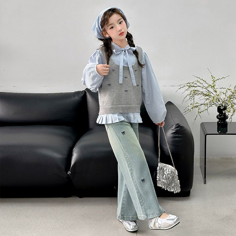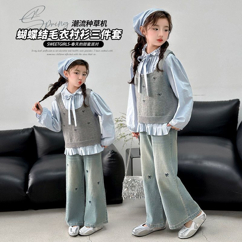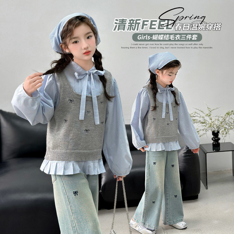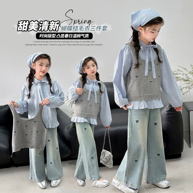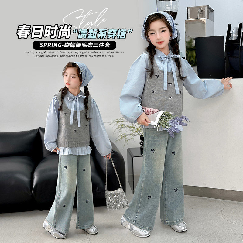 소녀의 봄 옷 세트 2025 새로운 유행 봄과 가을 중년 어린이 큰 서양식 봄 탑 소녀의 봄 옷