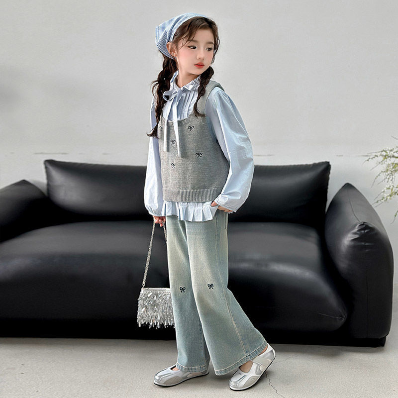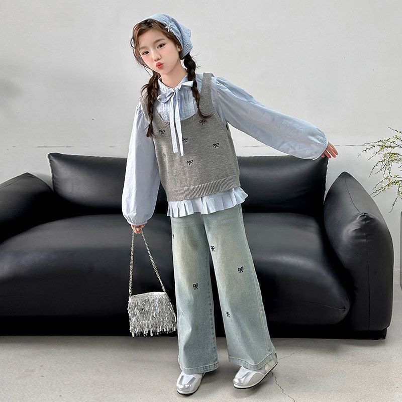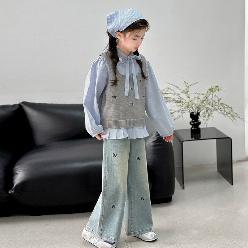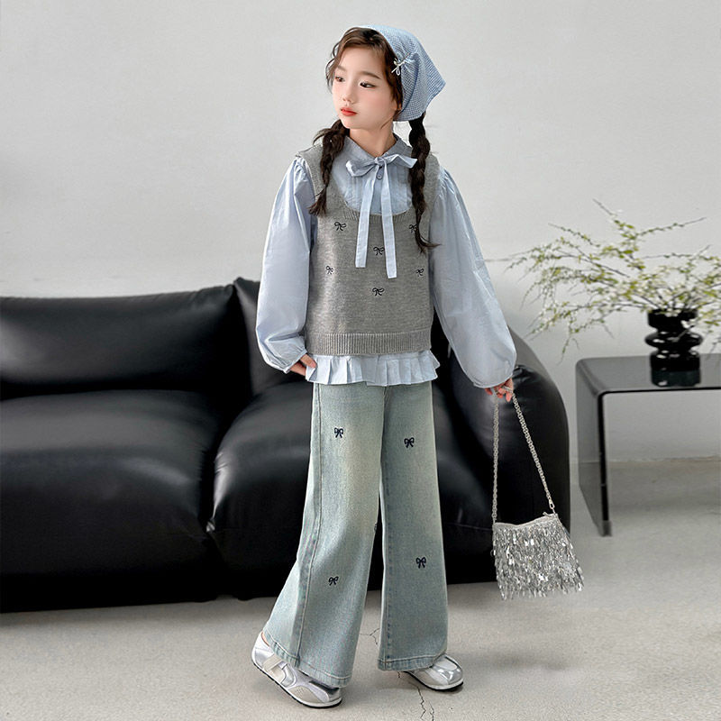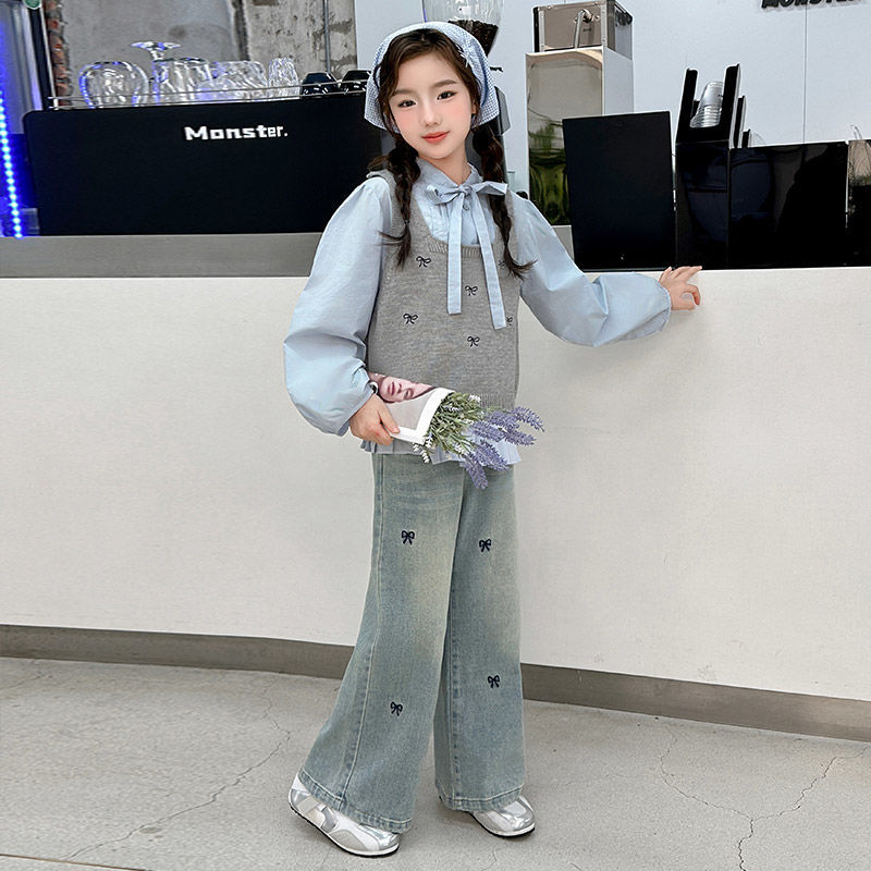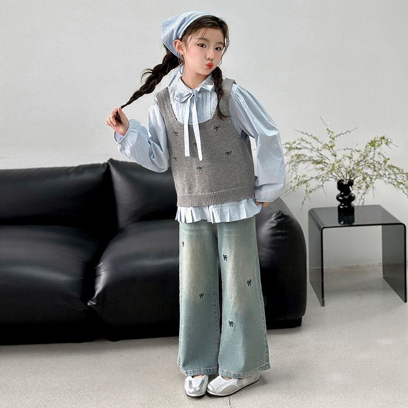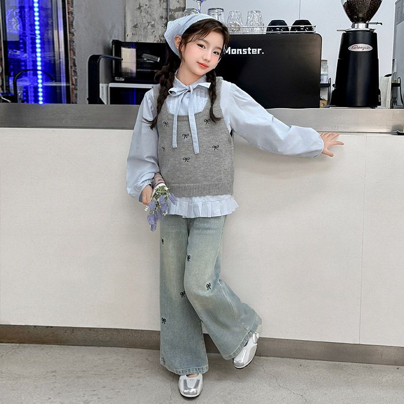 소녀의 봄 옷 세트 2025 새로운 유행 봄과 가을 중년 어린이 큰 서양식 봄 탑 소녀의 봄 옷
