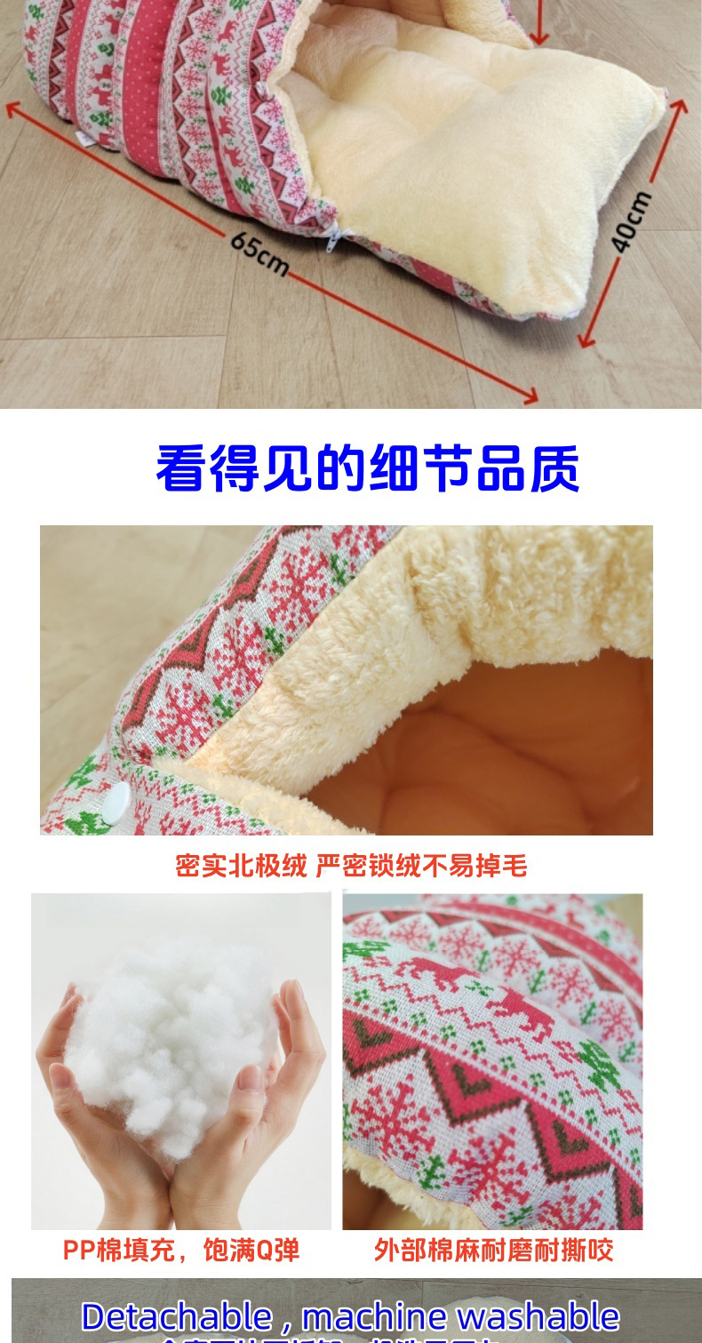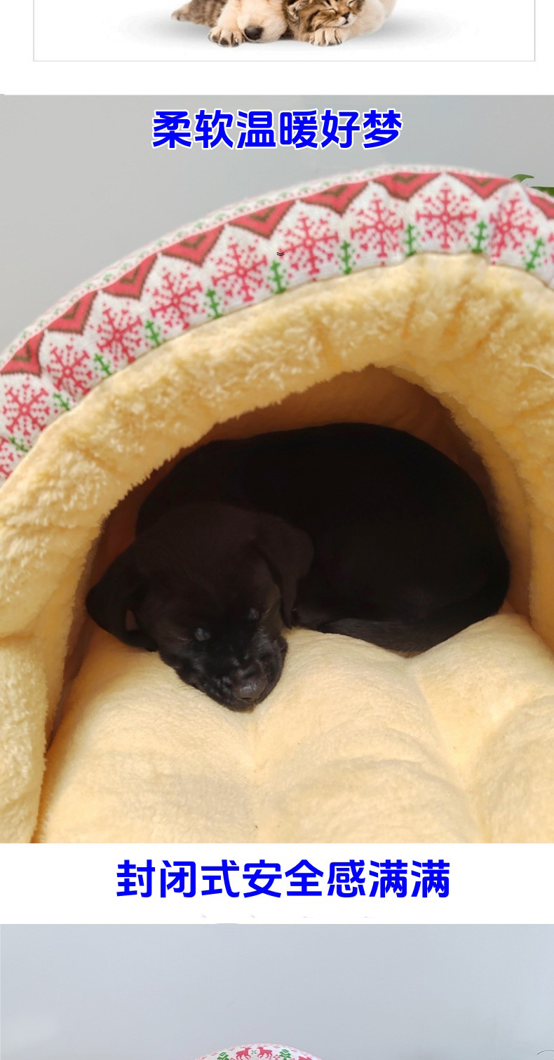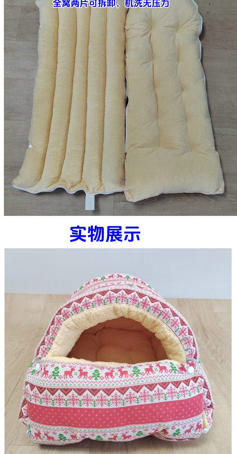 국경 간 새해 애완 동물 개집, 밀폐형 겨울 플러시 따뜻한 고양이 개집, 탈착식 세탁기로 세탁 가능한 개 개집 애완 동물 매트