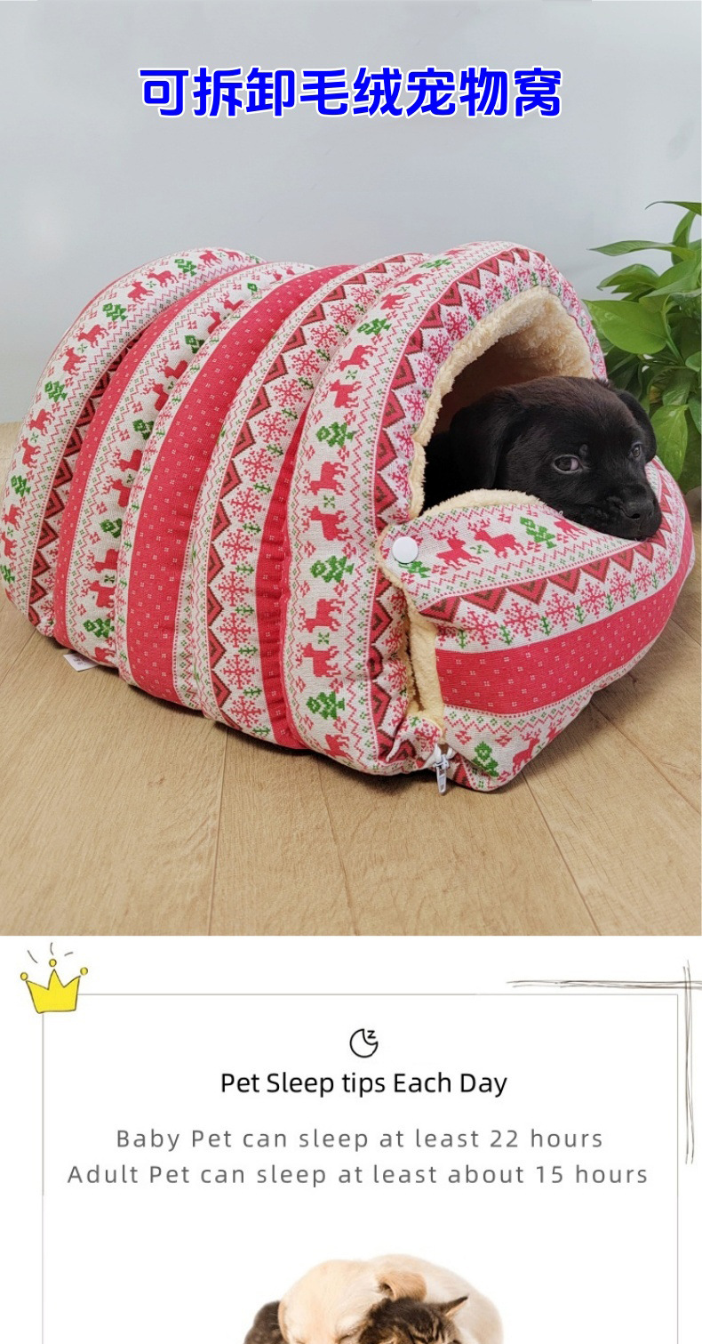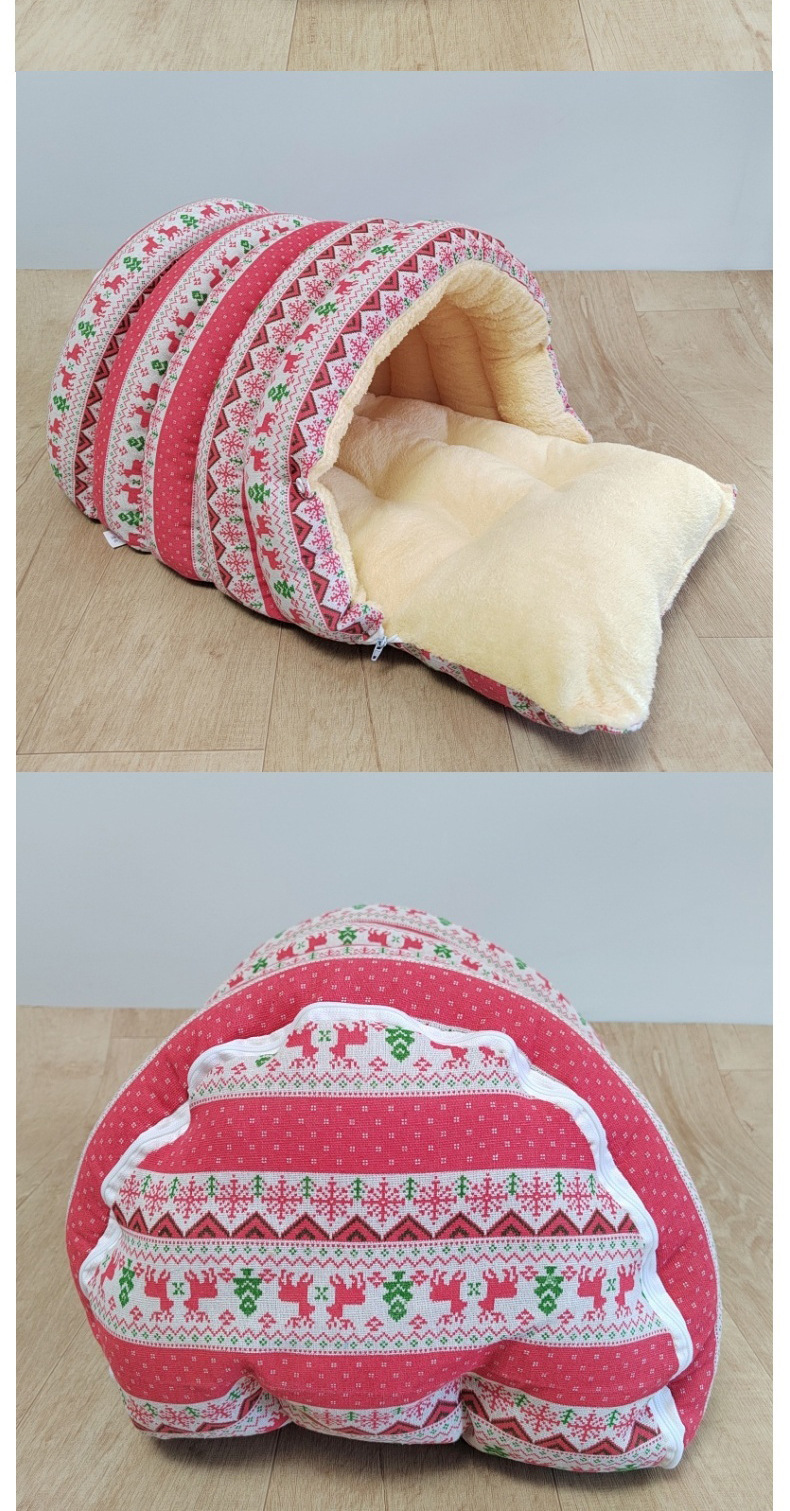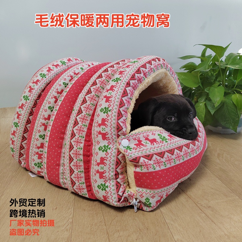 국경 간 새해 애완 동물 개집, 밀폐형 겨울 플러시 따뜻한 고양이 개집, 탈착식 세탁기로 세탁 가능한 개 개집 애완 동물 매트