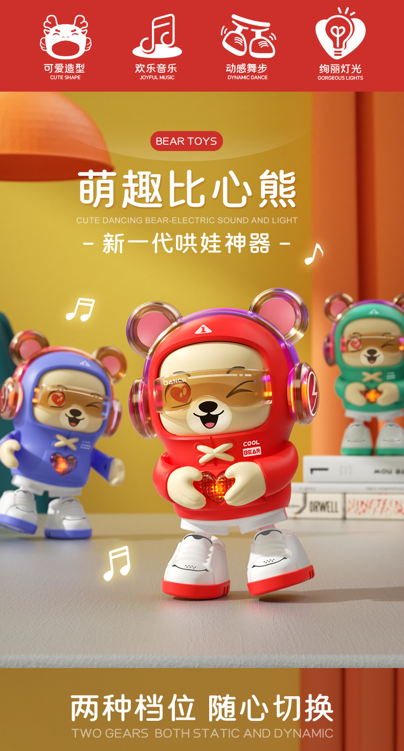 어린이 용의 해 전기 장난감 귀여운 용 보물 인형 빛 음악 춤 심장 곰 전기 로봇 모델스토어 가기