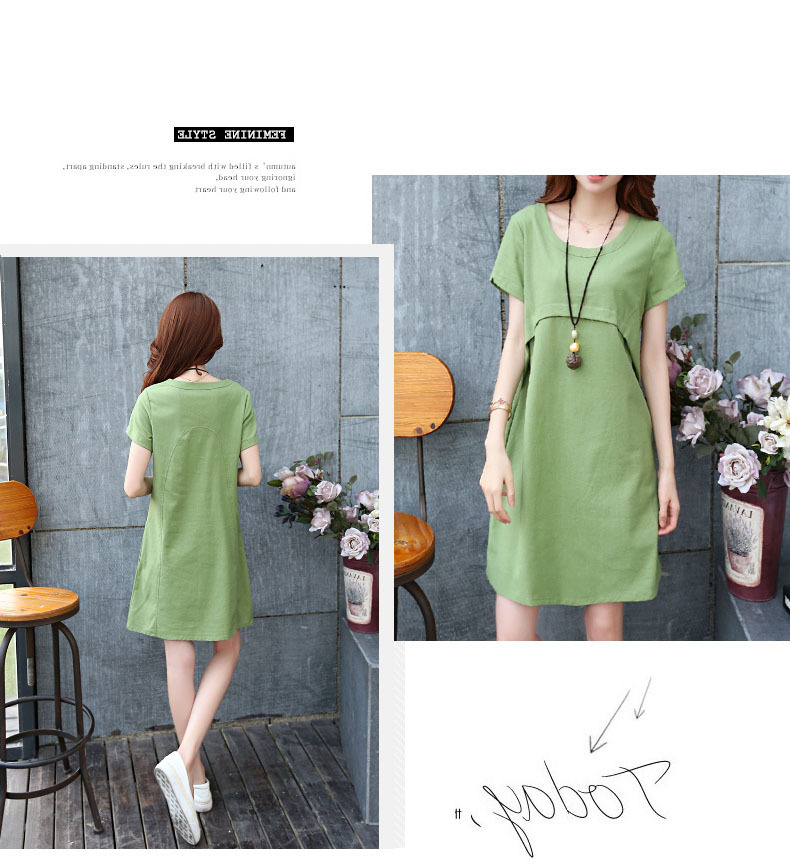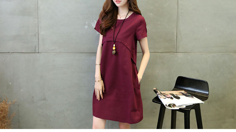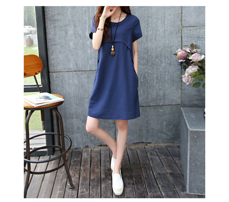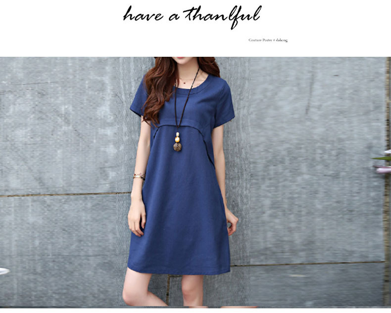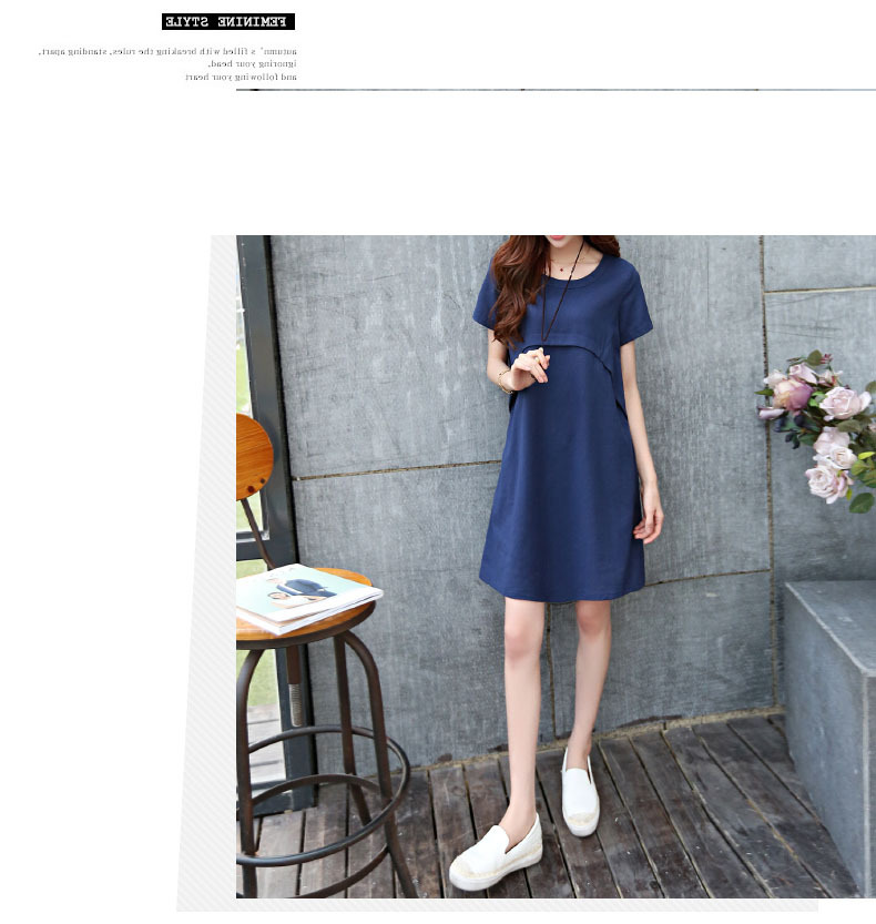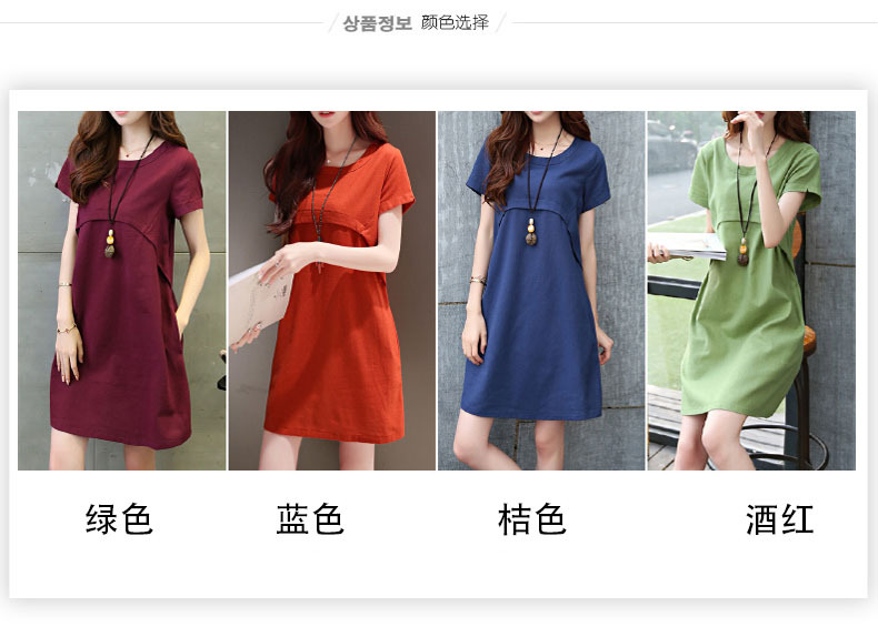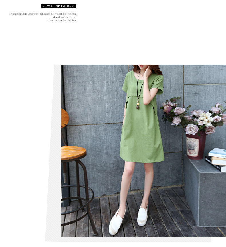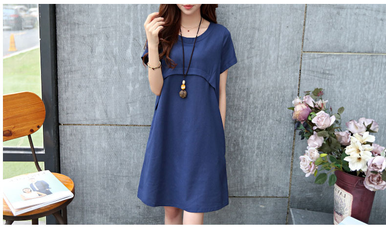 국경 간 대외 무역 여성 면 및 린넨 드레스 여성 여름 얇은 반팔 느슨한 허리 스커트 모리 스타일 스플 라이스 A 라인 스커트