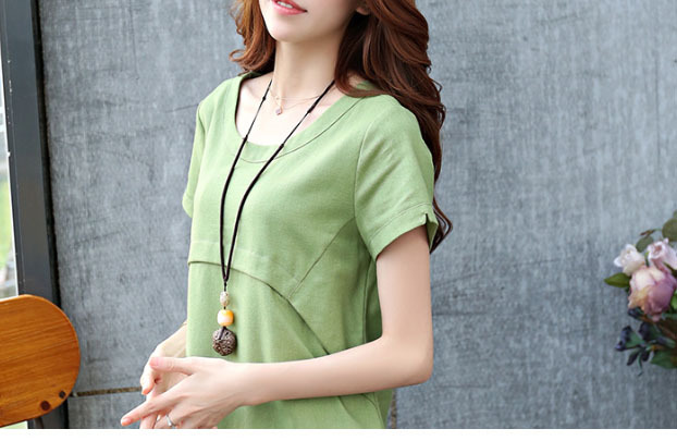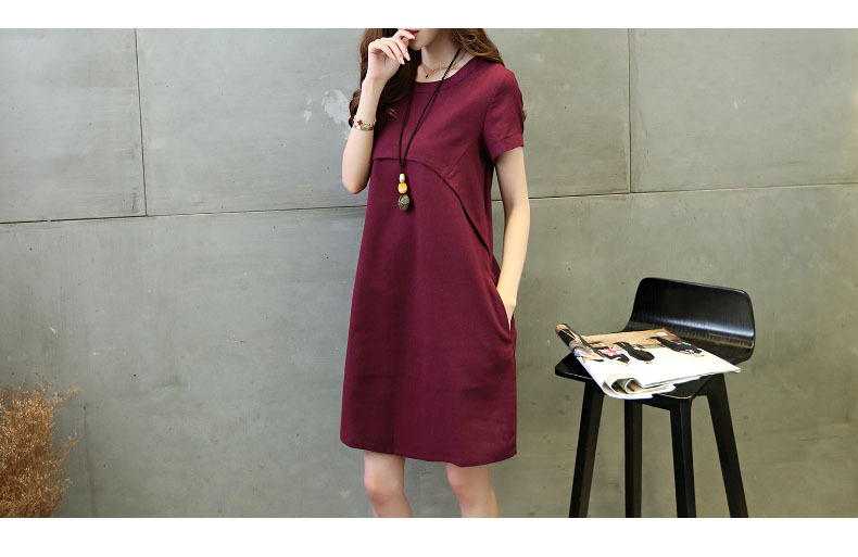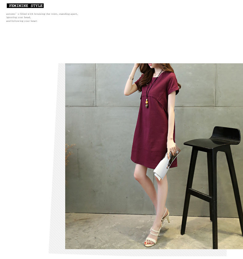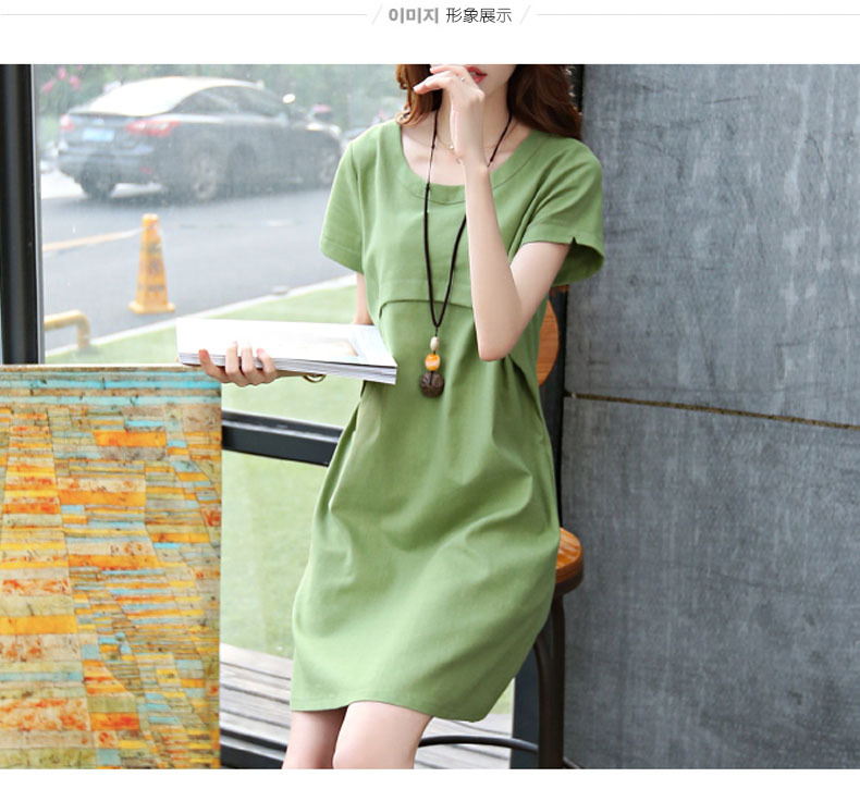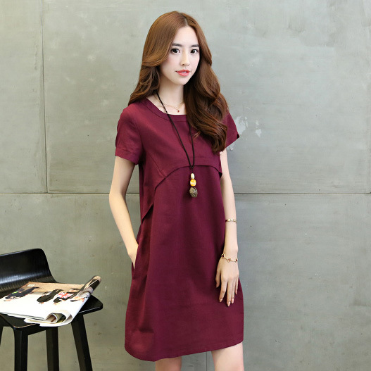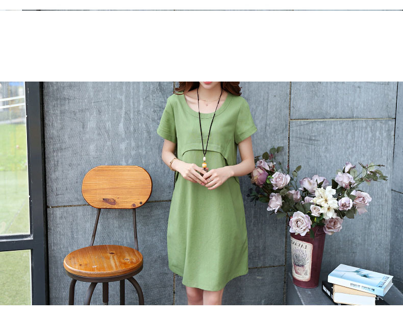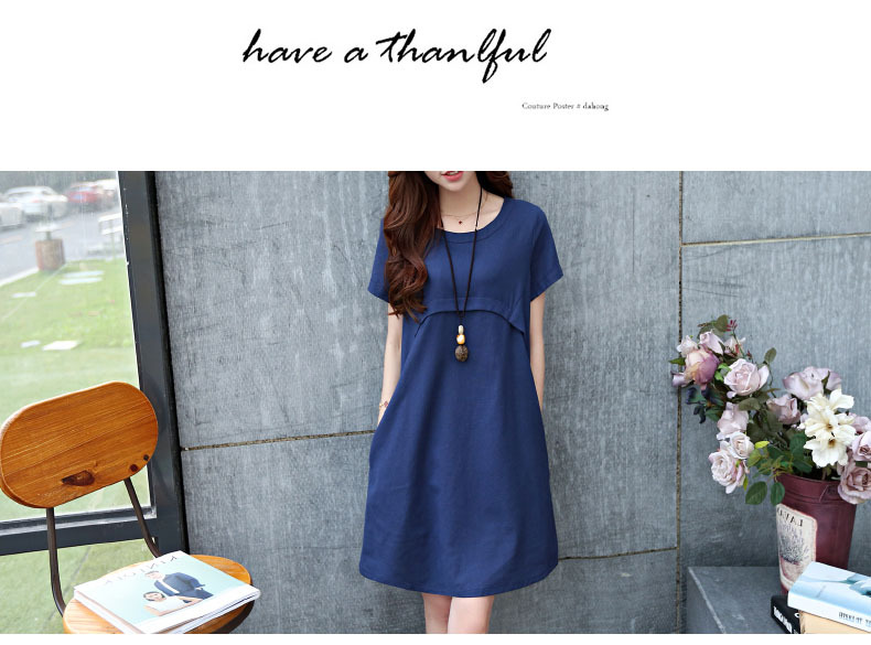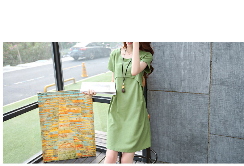 국경 간 대외 무역 여성 면 및 린넨 드레스 여성 여름 얇은 반팔 느슨한 허리 스커트 모리 스타일 스플 라이스 A 라인 스커트
