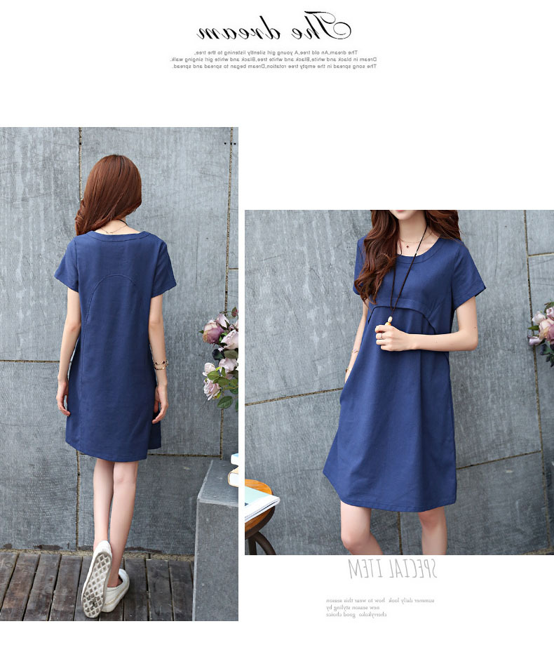 국경 간 대외 무역 여성 면 및 린넨 드레스 여성 여름 얇은 반팔 느슨한 허리 스커트 모리 스타일 스플 라이스 A 라인 스커트스토어 가기