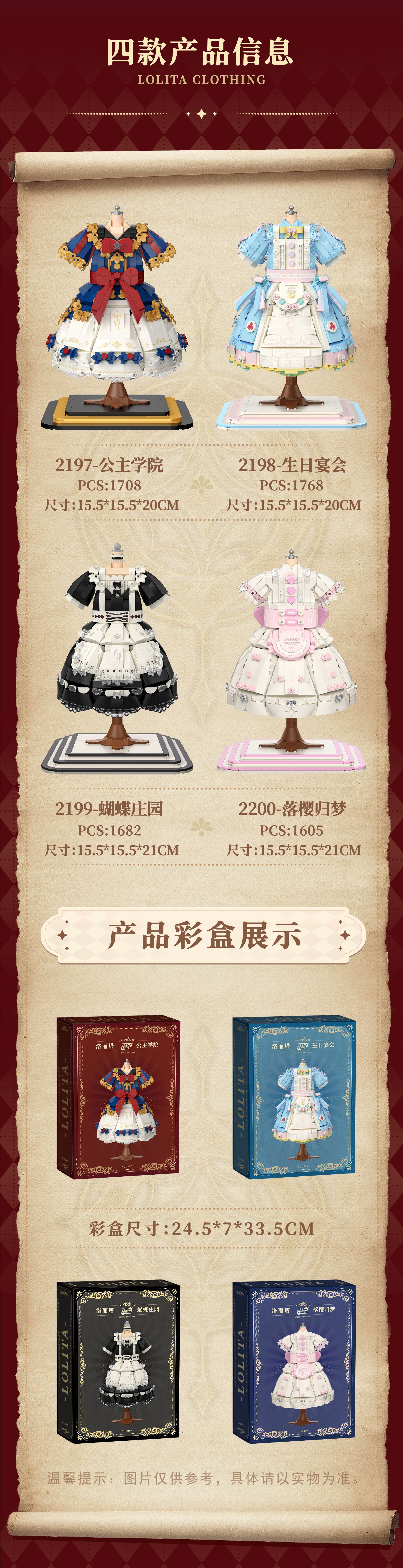 벽돌 또한 시리즈 2 차원 로리타 스커트 원피스 조립 장난감 장식품 소녀 새해 수제 선물스토어 가기