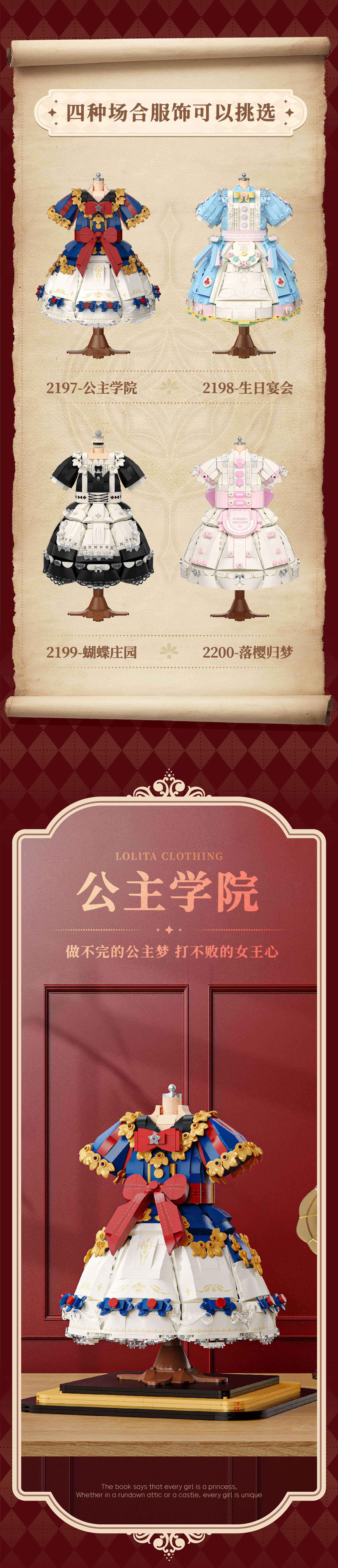 벽돌 또한 시리즈 2 차원 로리타 스커트 원피스 조립 장난감 장식품 소녀 새해 수제 선물