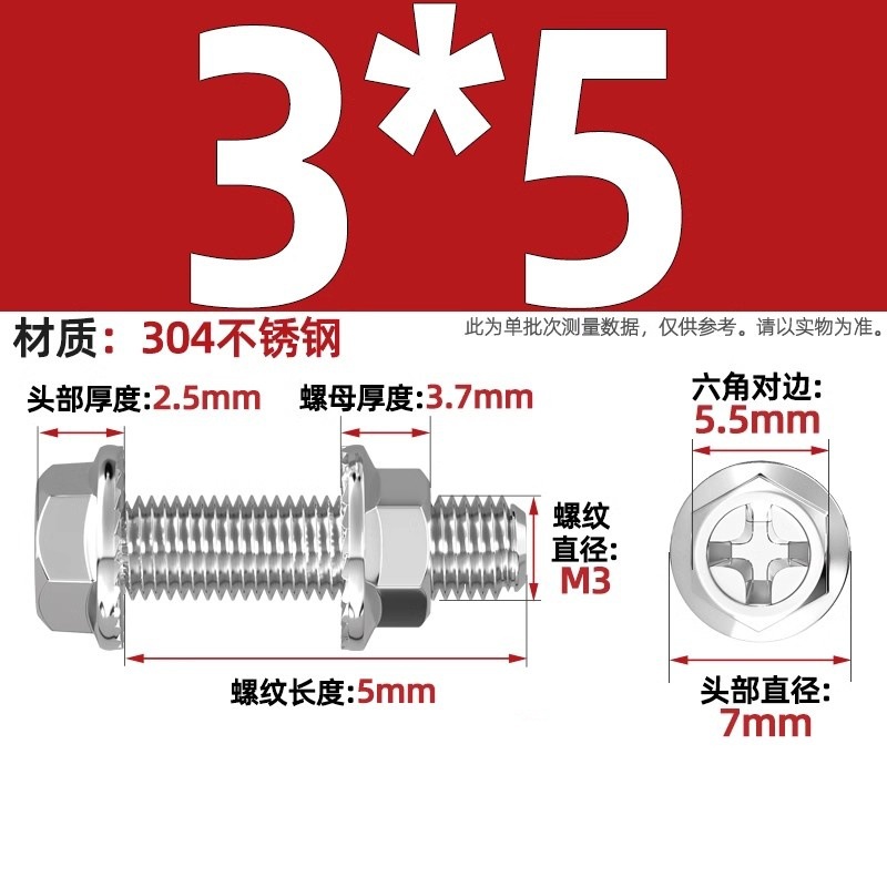 304 스테인레스 스틸 크로스 플랜지 스크류 너트 Daquan 콤비네이션 세트 외부 육각형 치약 볼트 패드 나사스토어 가기