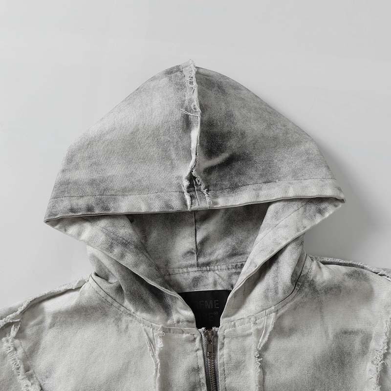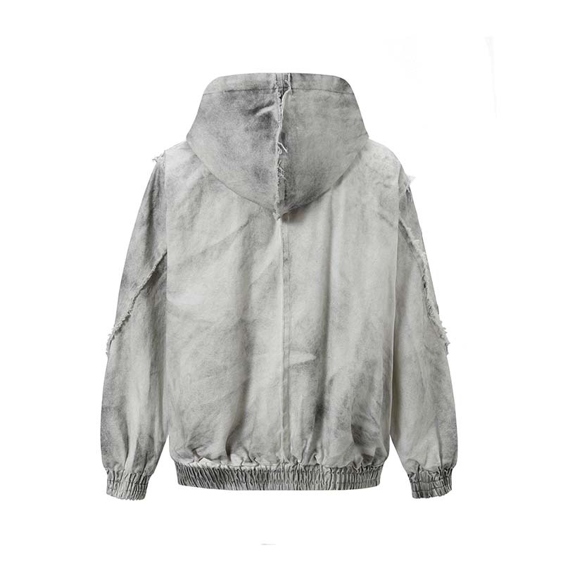 2025 새로운 해체 된 스티칭 랩 스프레이 페인팅 더티 카디건 후드 스웨트 남성용 아메리칸 스타일 레트로 루즈 재킷