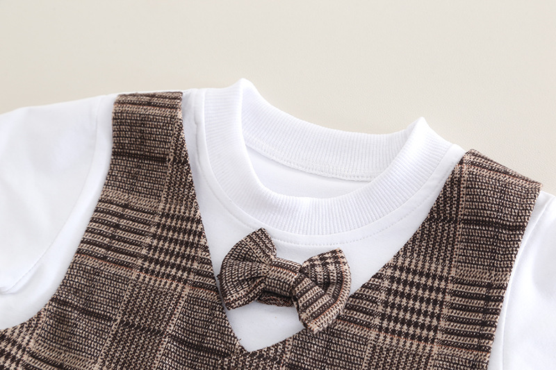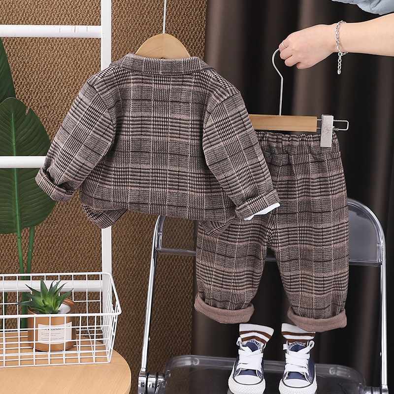어린 소년 잘 생긴 체크 무늬 세트 양복 조끼 3 피스 세트 2025 봄과 가을 새로운 소년 패션 신사 가을 세트스토어 가기