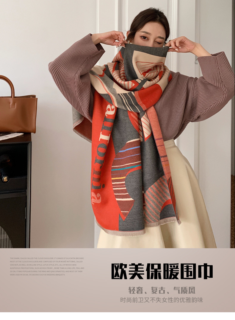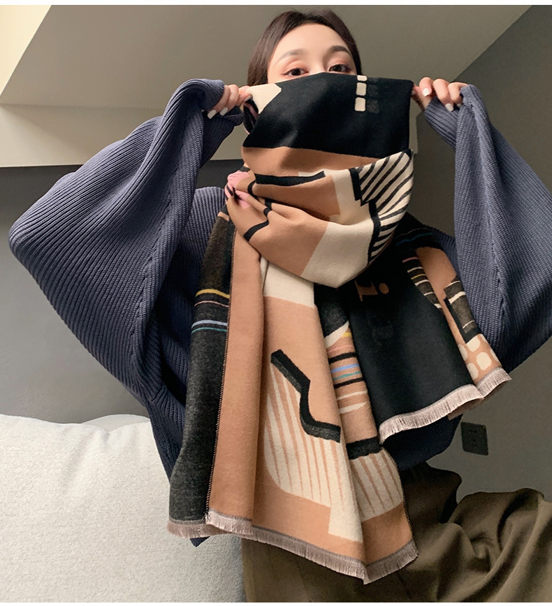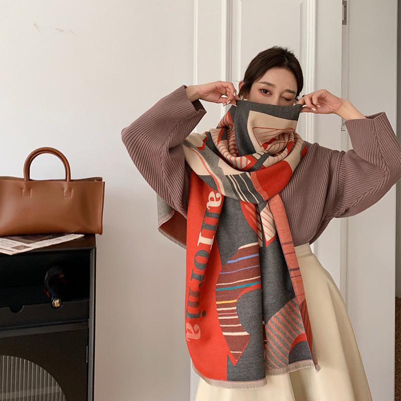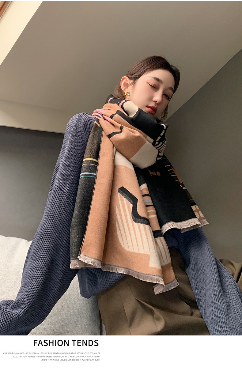 2024 가을과 겨울 새로운 따뜻한 스카프 여성의 3D 글자 양면 캐시미어 패션 긴 에어컨 목도리 스카프스토어 가기