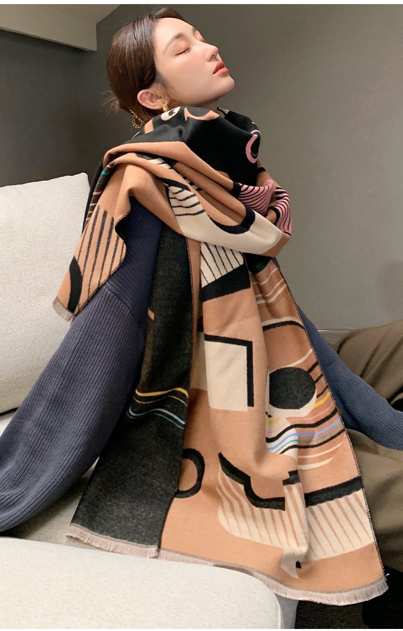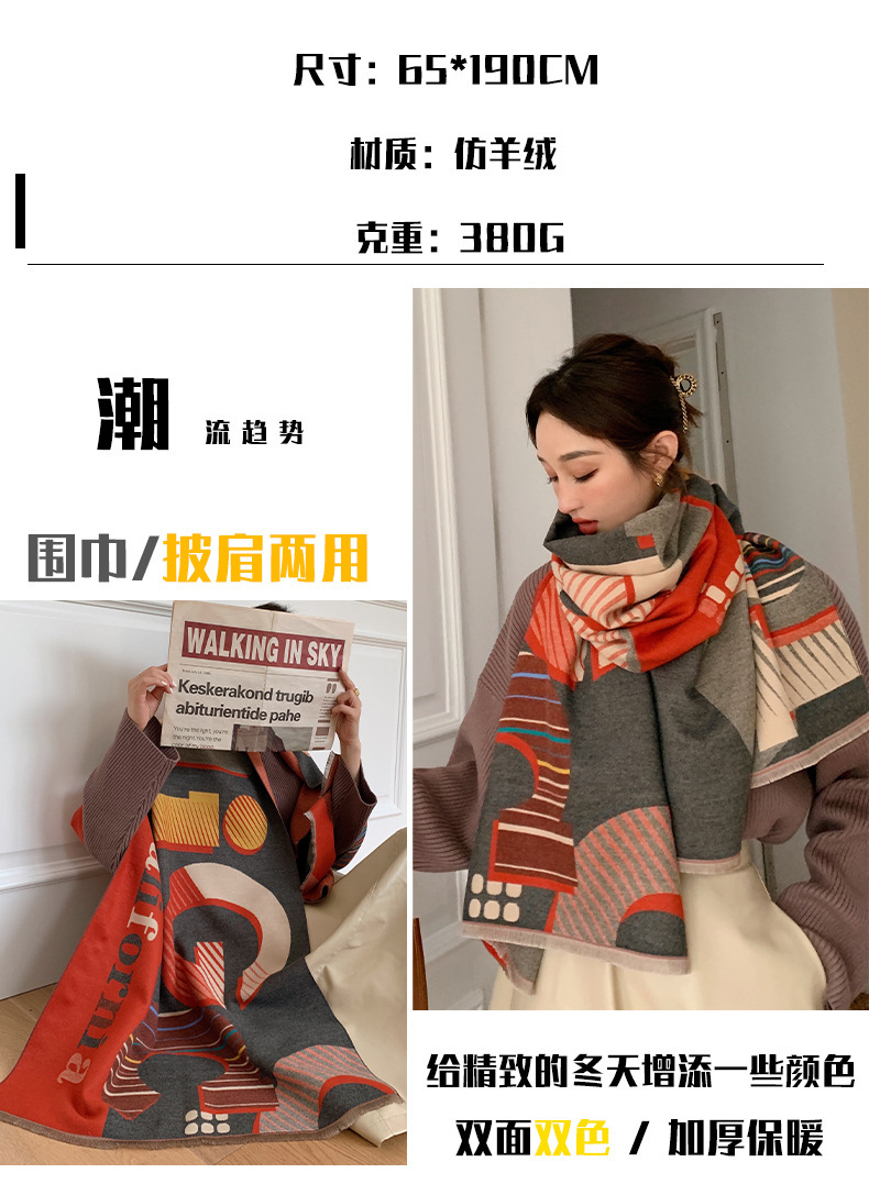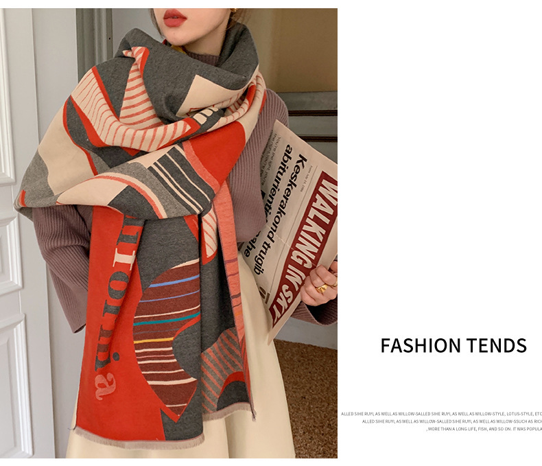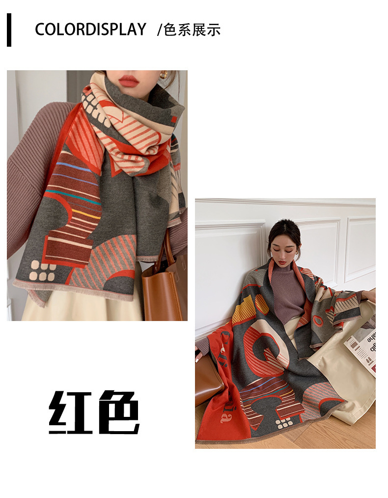 2024 가을과 겨울 새로운 따뜻한 스카프 여성의 3D 글자 양면 캐시미어 패션 긴 에어컨 목도리 스카프스토어 가기