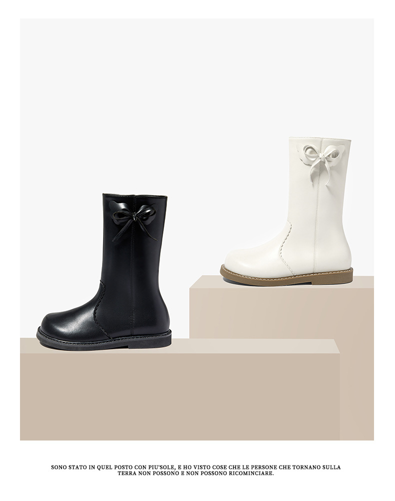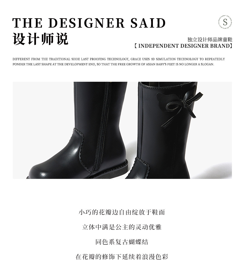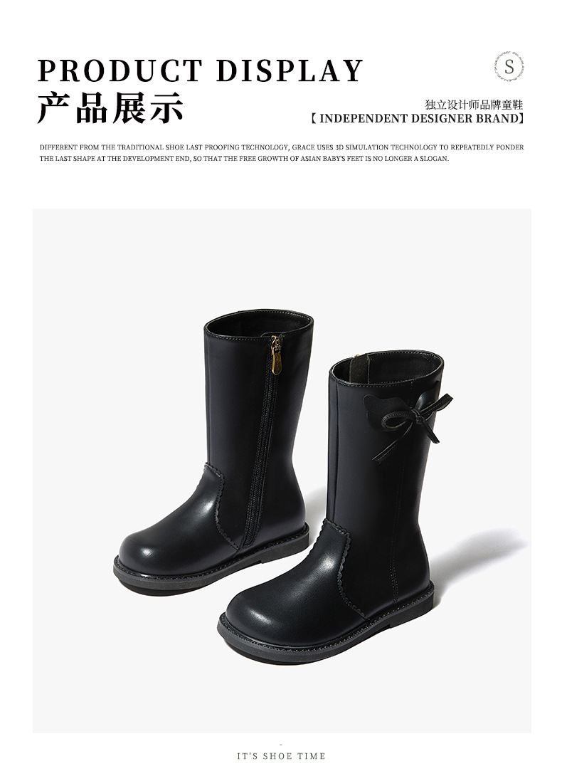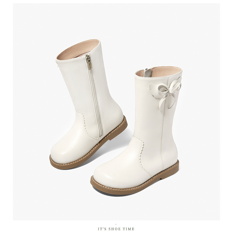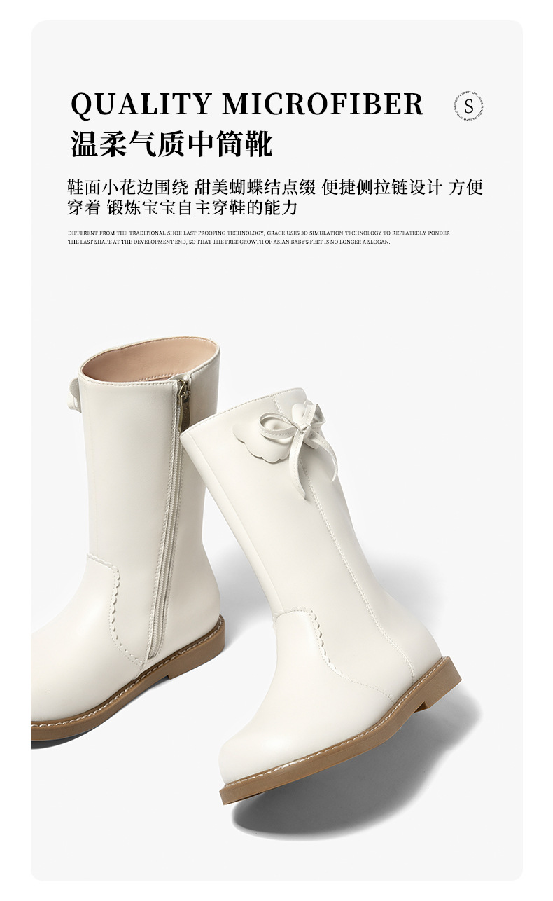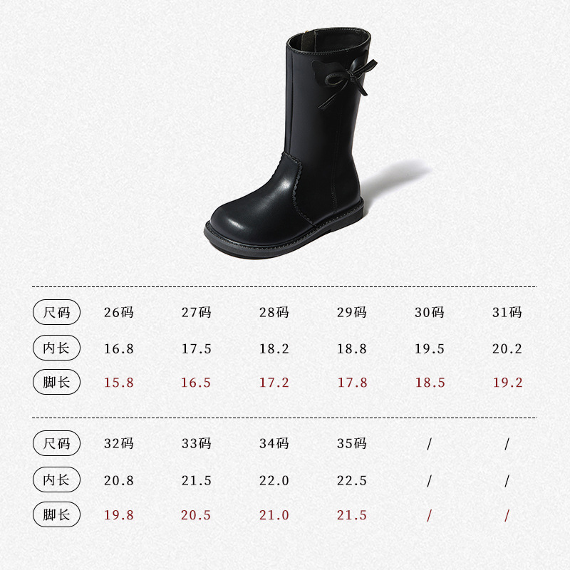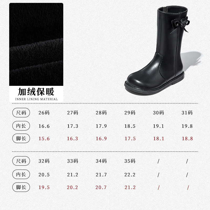 Snoffy斯纳菲女童中筒靴儿童靴子2023秋冬新款小公主时尚加绒皮靴