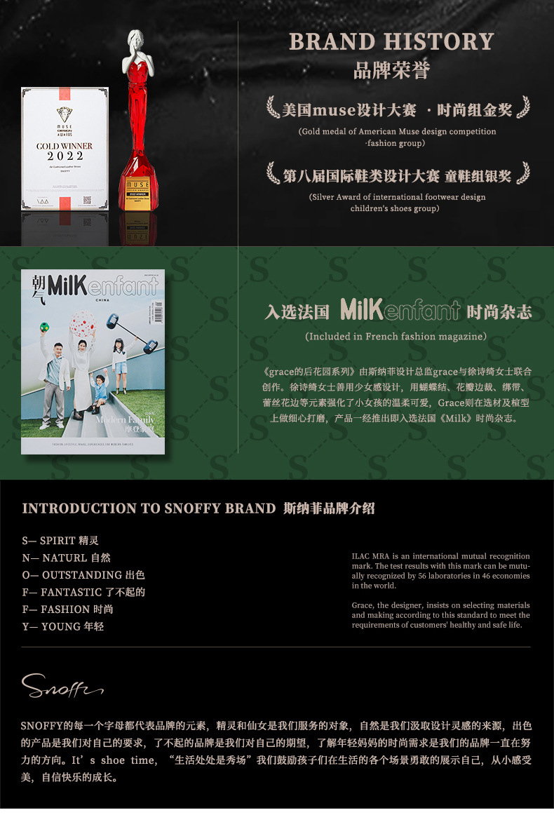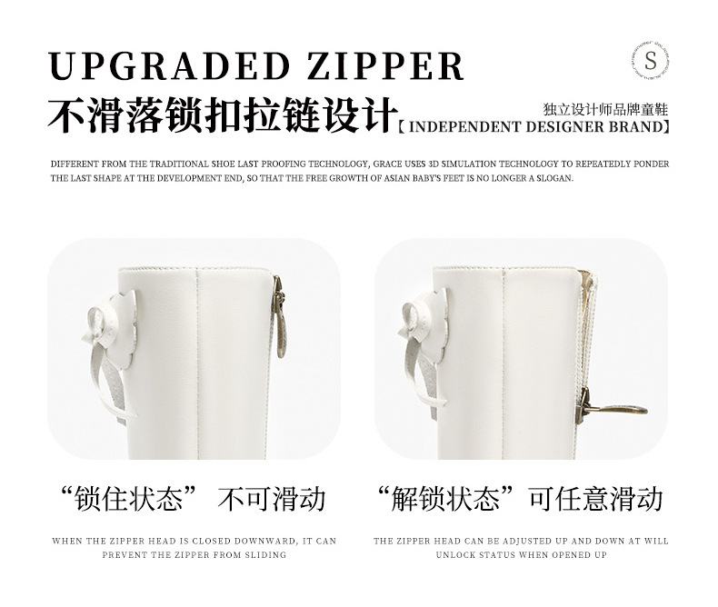 Snoffy斯纳菲儿童靴子女童袜靴2023秋冬新款小公主洛丽塔加绒皮靴