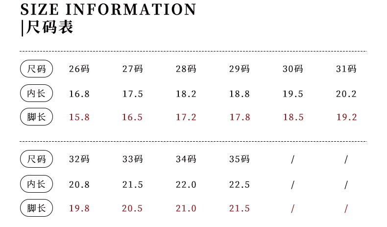 • 26码内长16.8cm