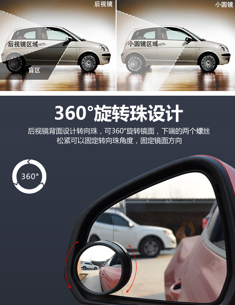 四轮汽车改装盲点辅助镜小圆镜电动三轮车盲区反光倒车后视镜通用