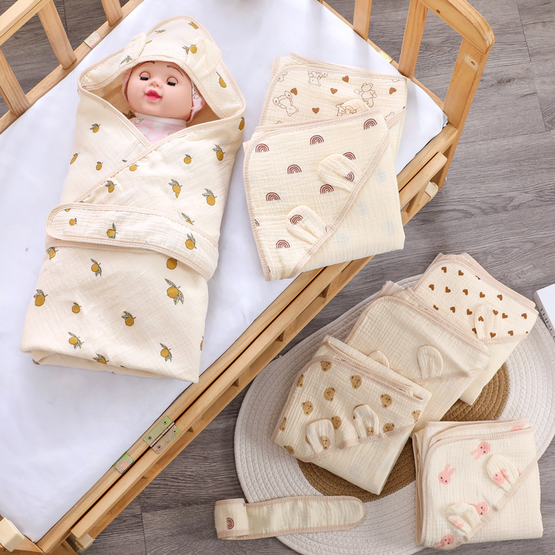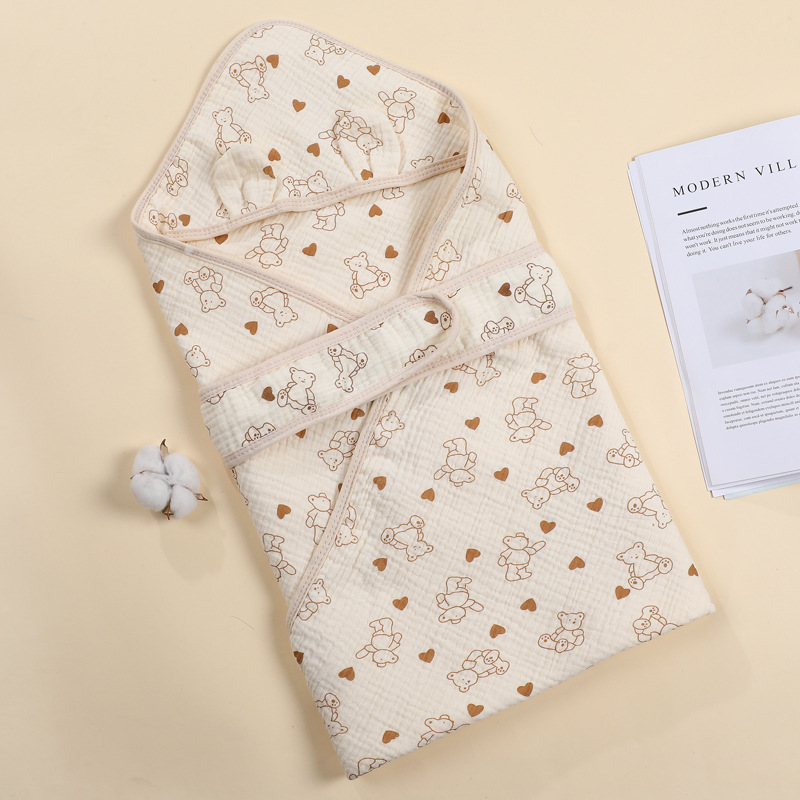 신생아 이불, 4겹 면 거즈 포장 이불, 신생아 방풍 담요, 만화 이불, 침낭 도매