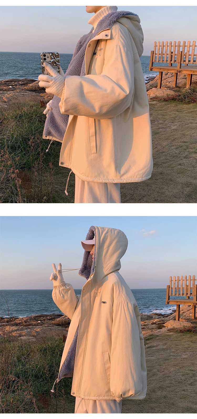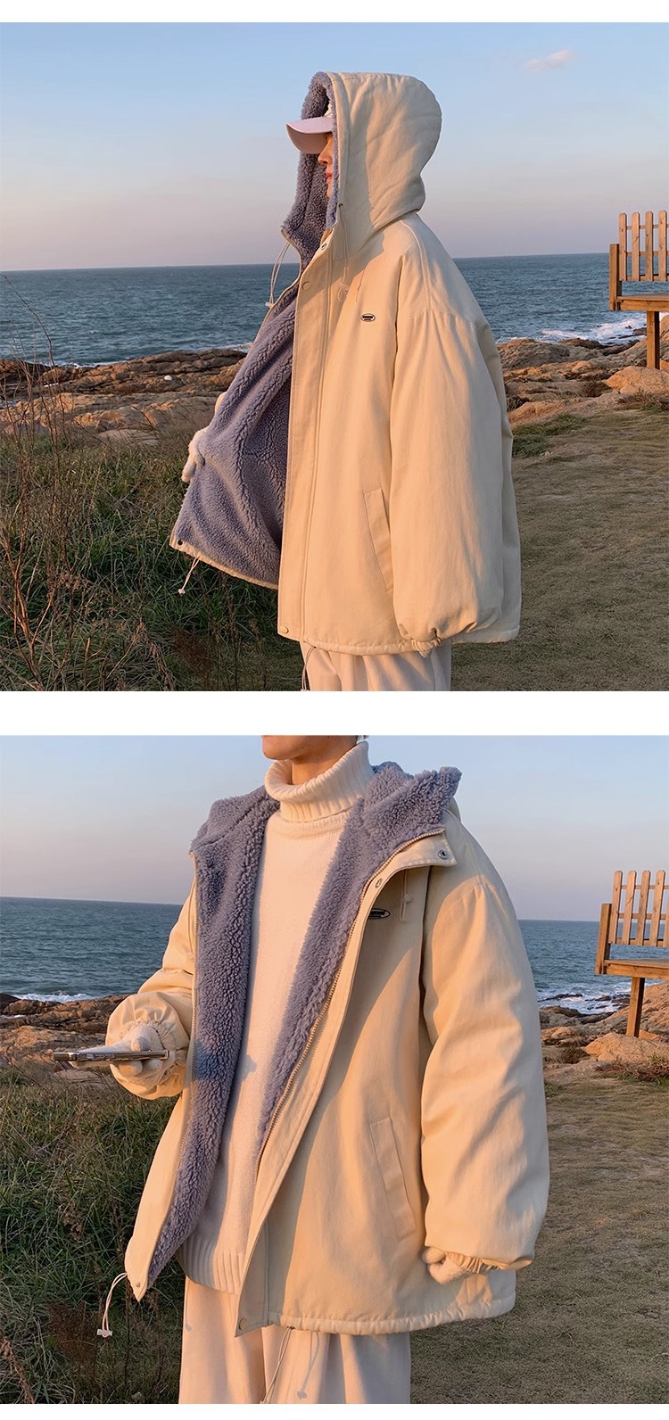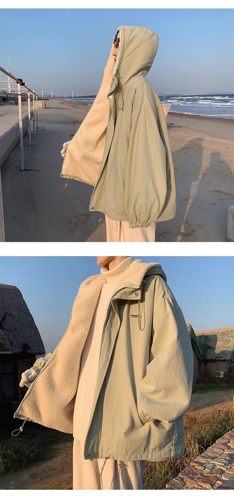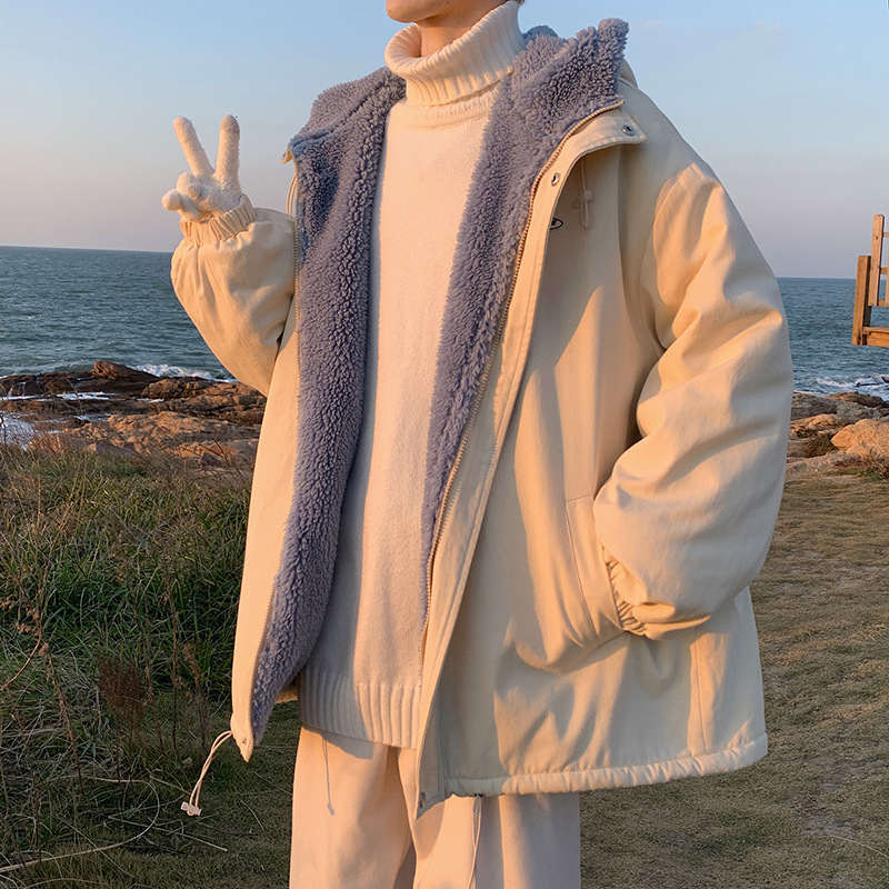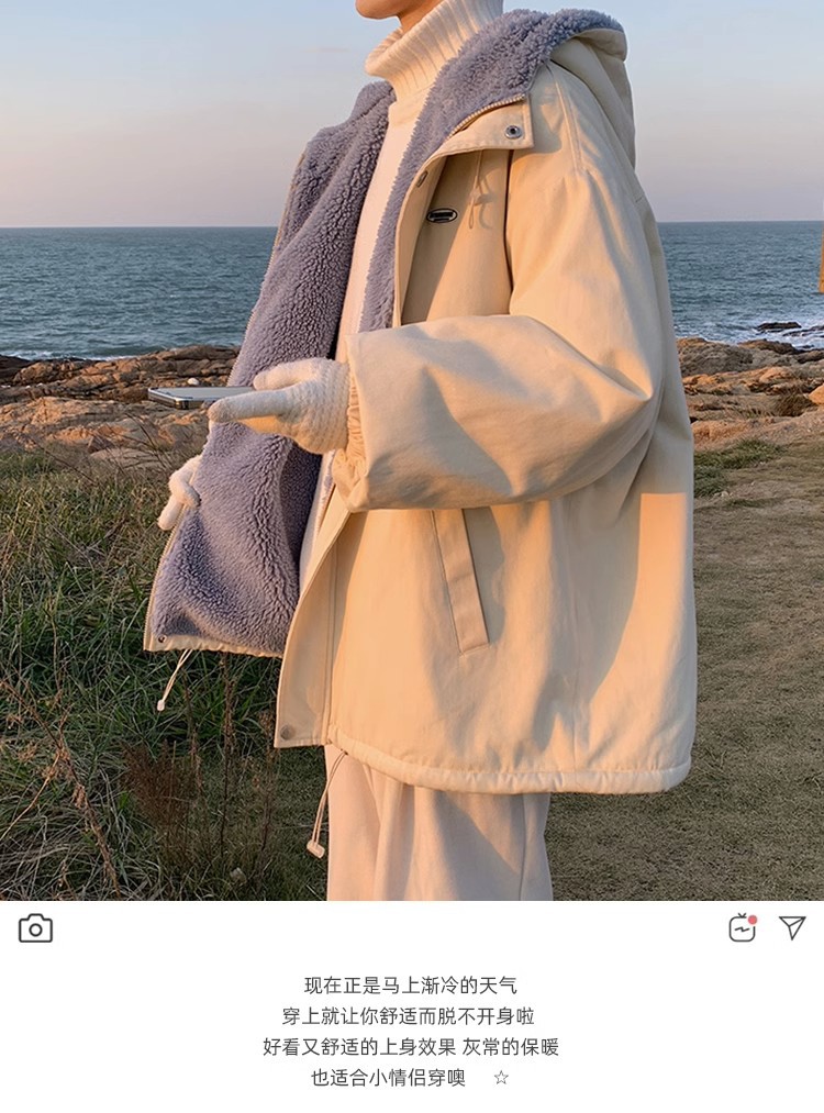 가을 겨울 후드 셰르파 코튼 코트 루즈한 한국 스타일 트렌디 다재다능한 캐주얼 핸섬 학생 bf 홍콩 스타일 패션 트렌드