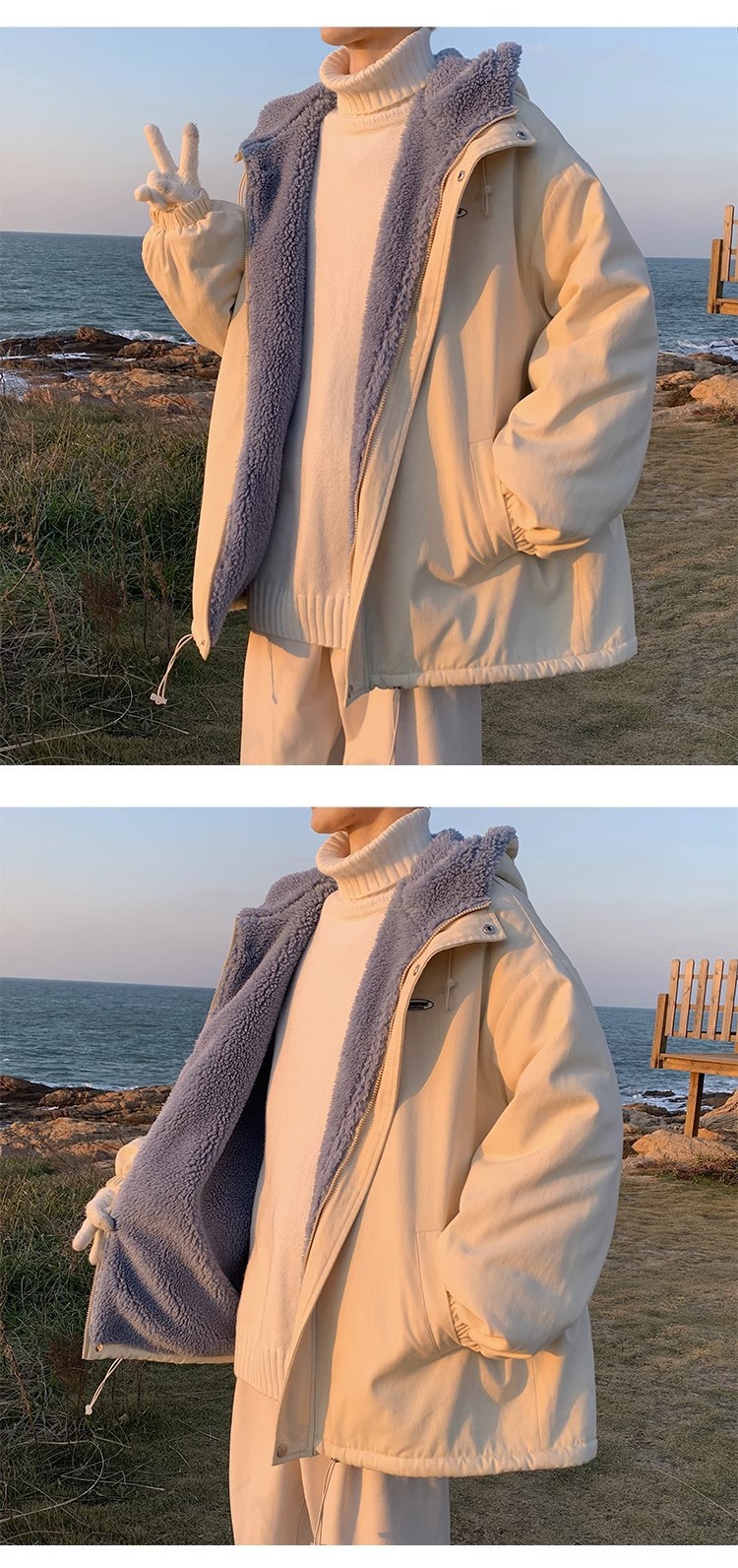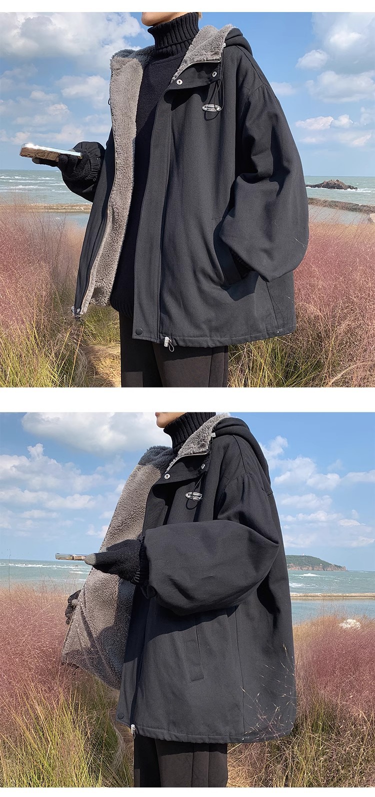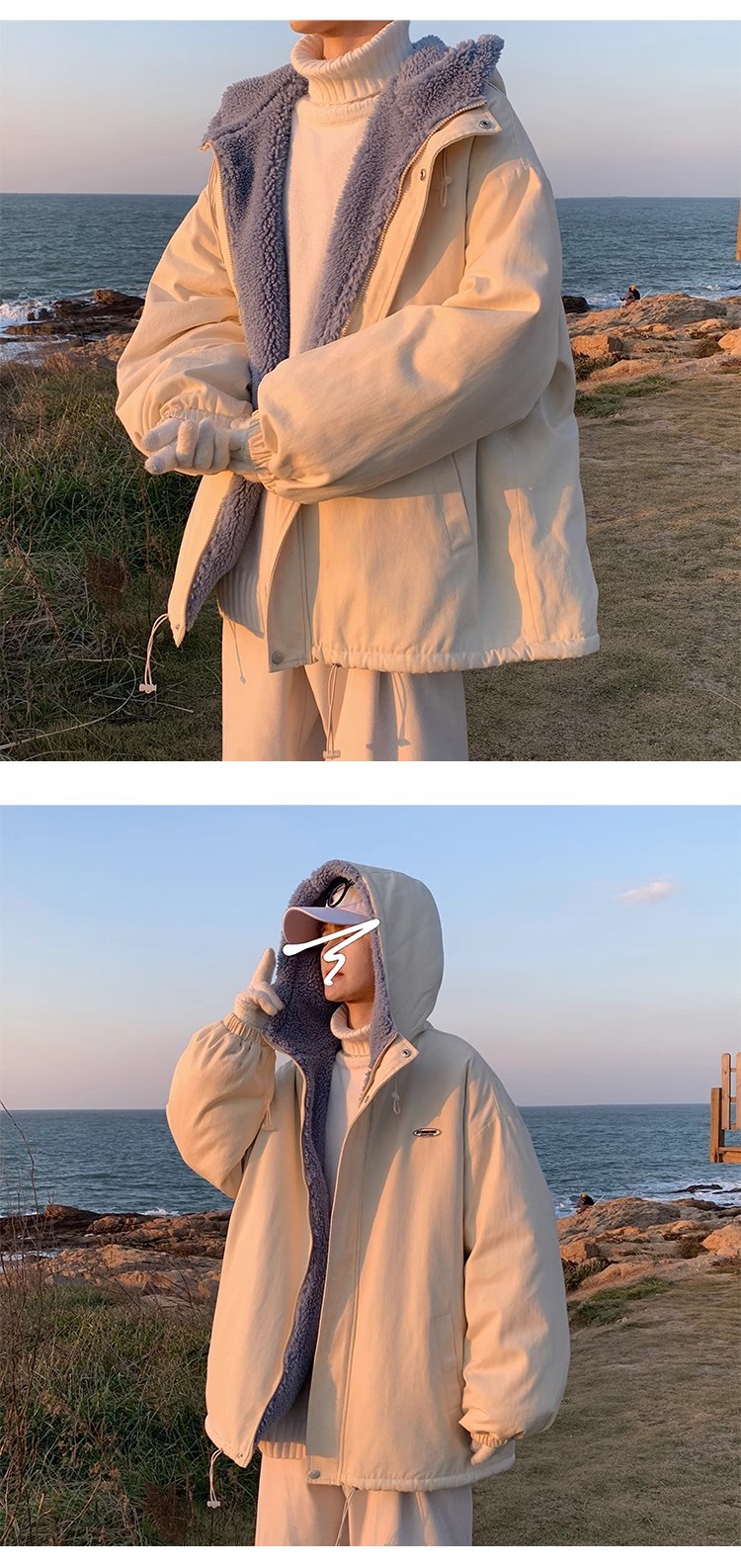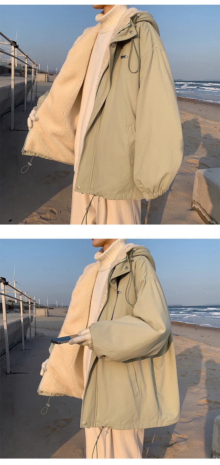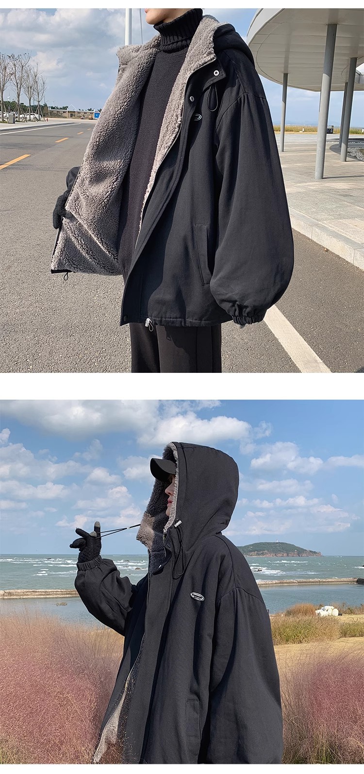 가을 겨울 후드 셰르파 코튼 코트 루즈한 한국 스타일 트렌디 다재다능한 캐주얼 핸섬 학생 bf 홍콩 스타일 패션 트렌드