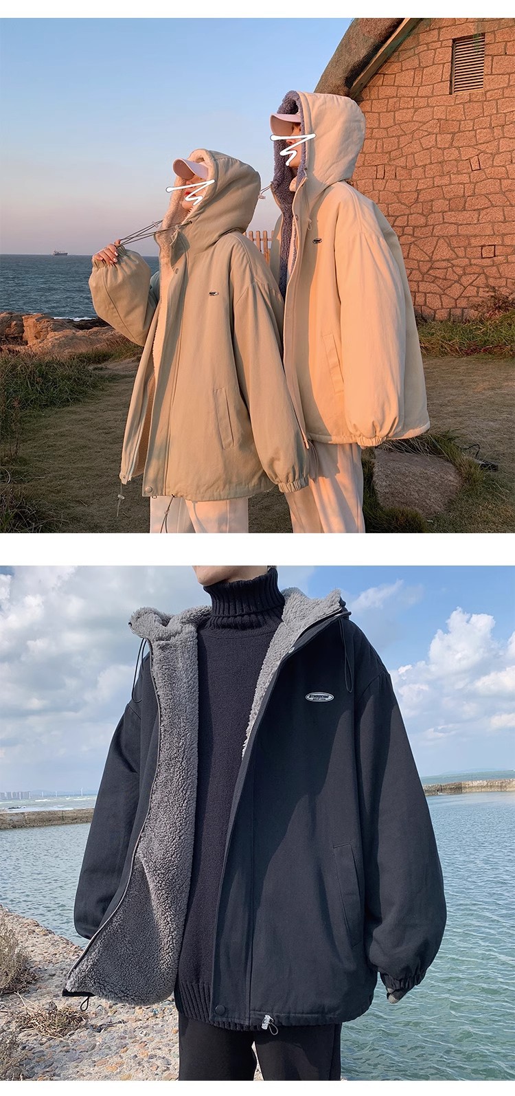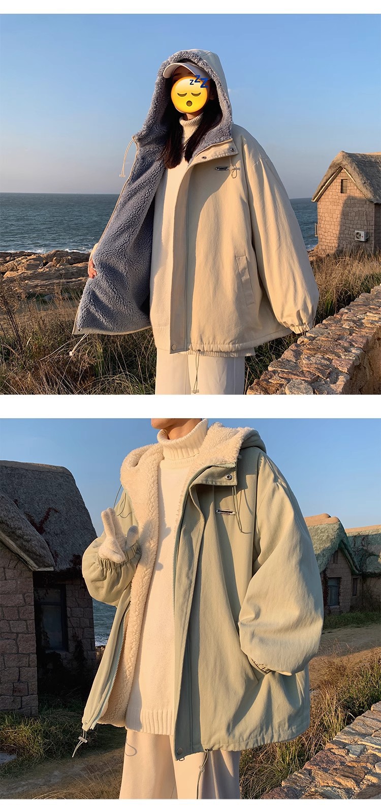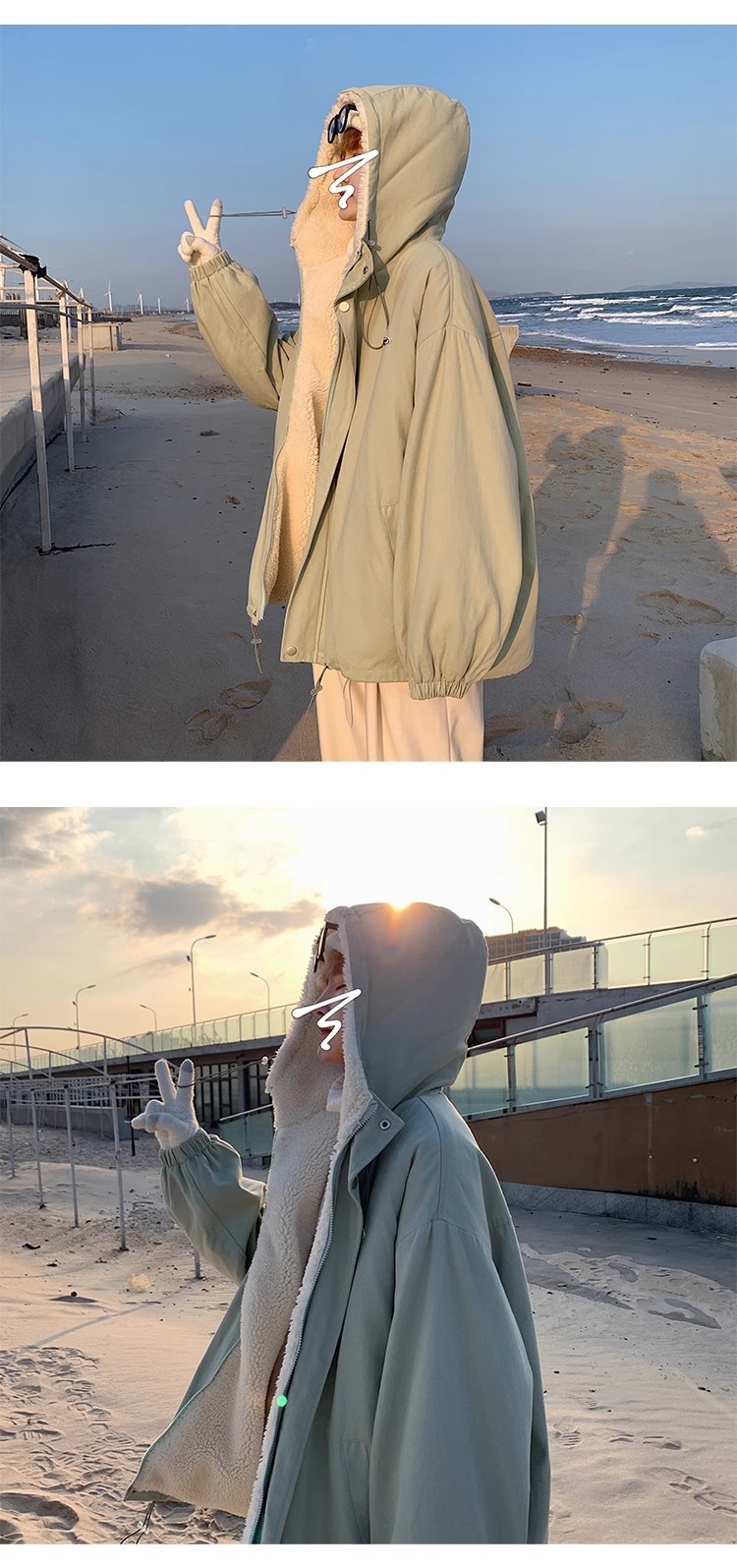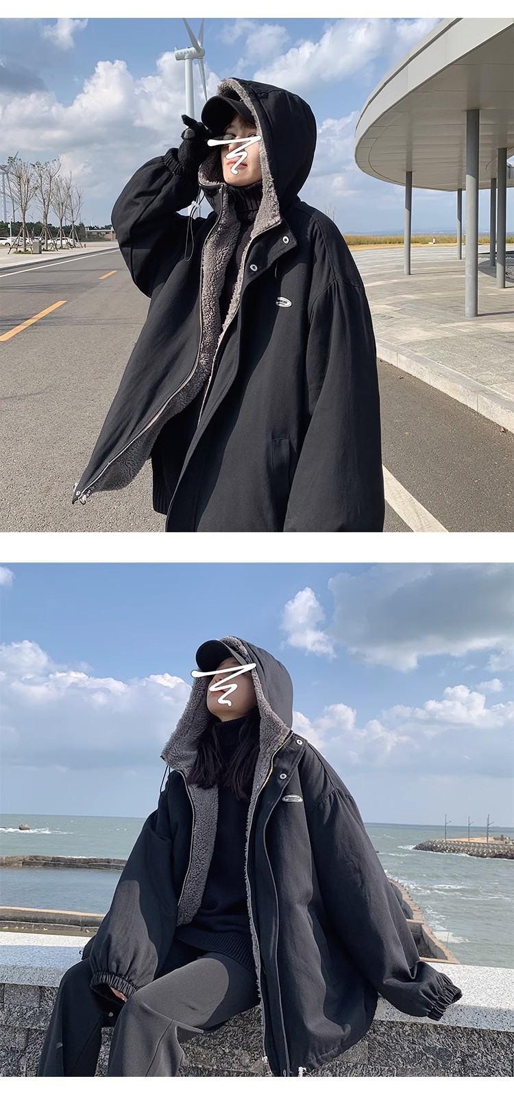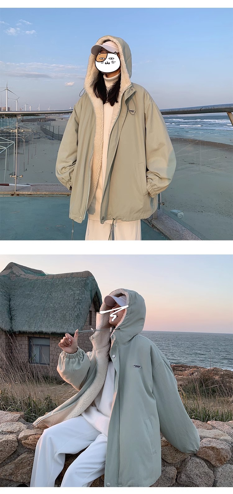가을 겨울 후드 셰르파 코튼 코트 루즈한 한국 스타일 트렌디 다재다능한 캐주얼 핸섬 학생 bf 홍콩 스타일 패션 트렌드스토어 가기
