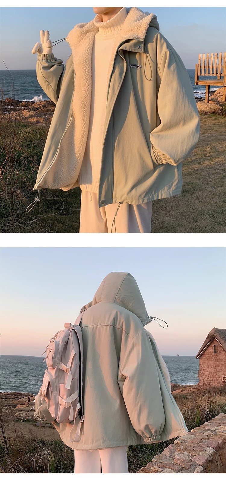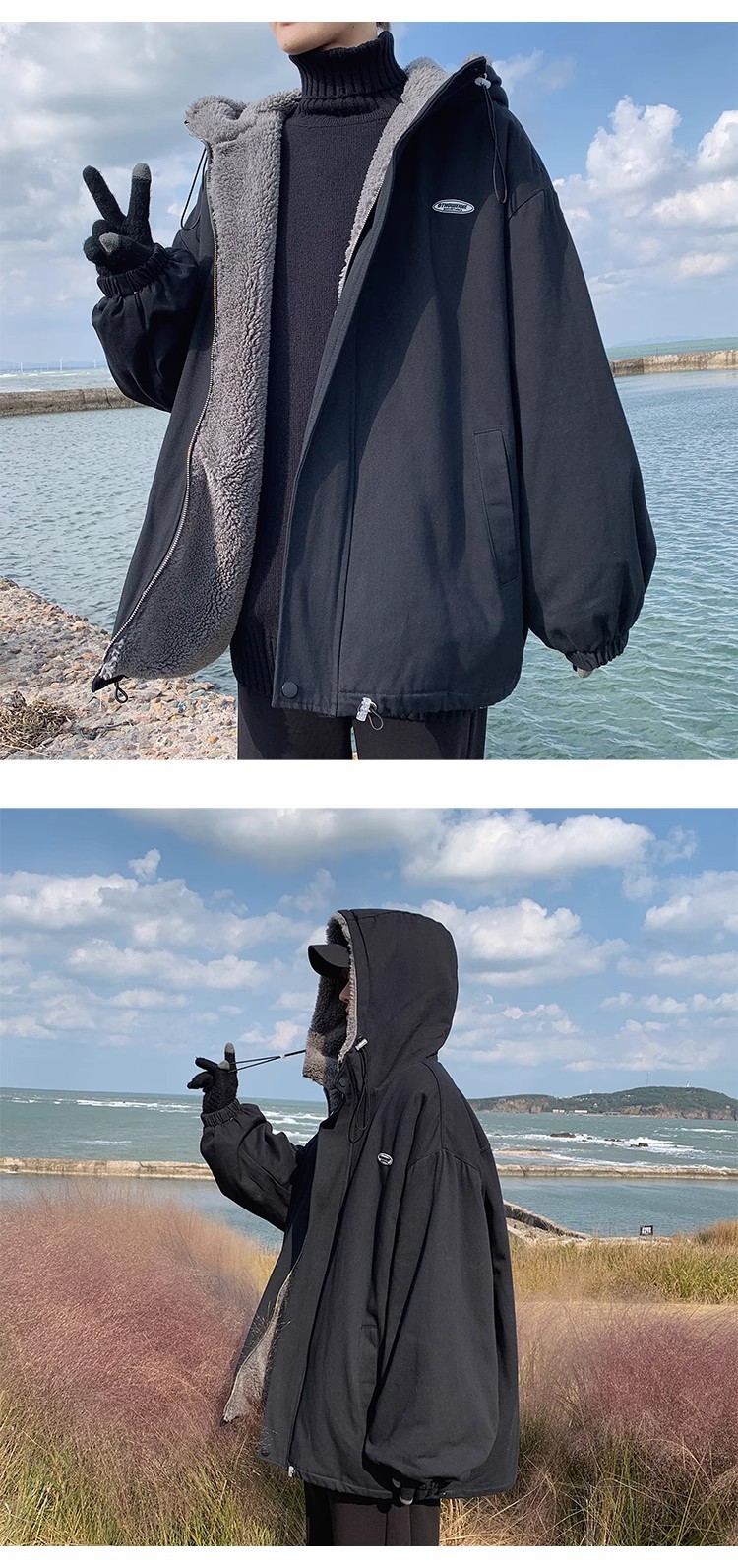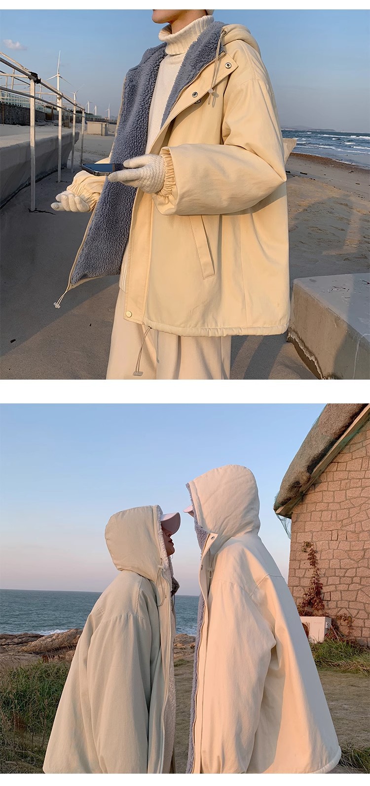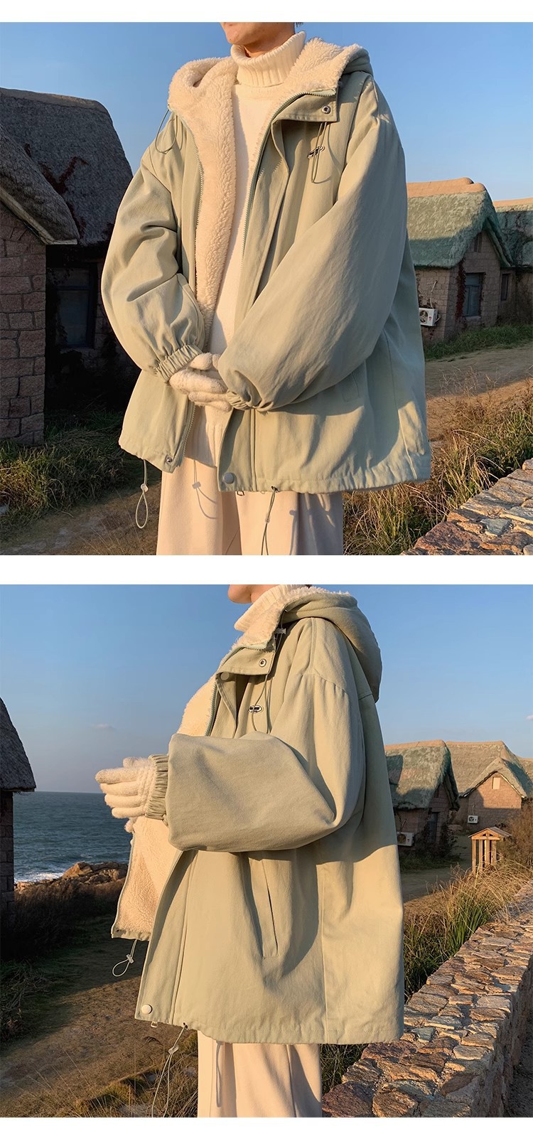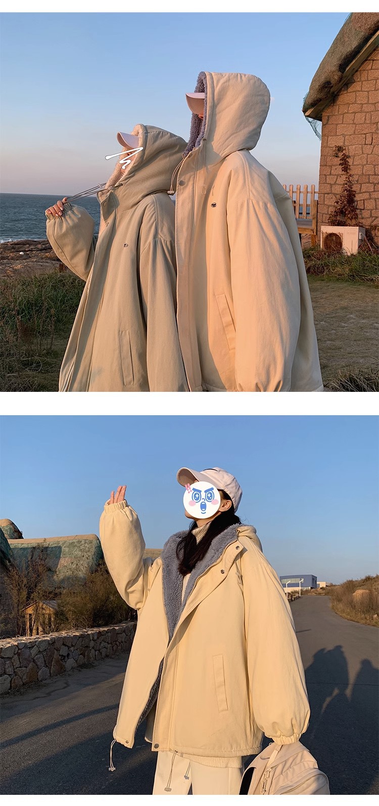 가을 겨울 후드 셰르파 코튼 코트 루즈한 한국 스타일 트렌디 다재다능한 캐주얼 핸섬 학생 bf 홍콩 스타일 패션 트렌드스토어 가기